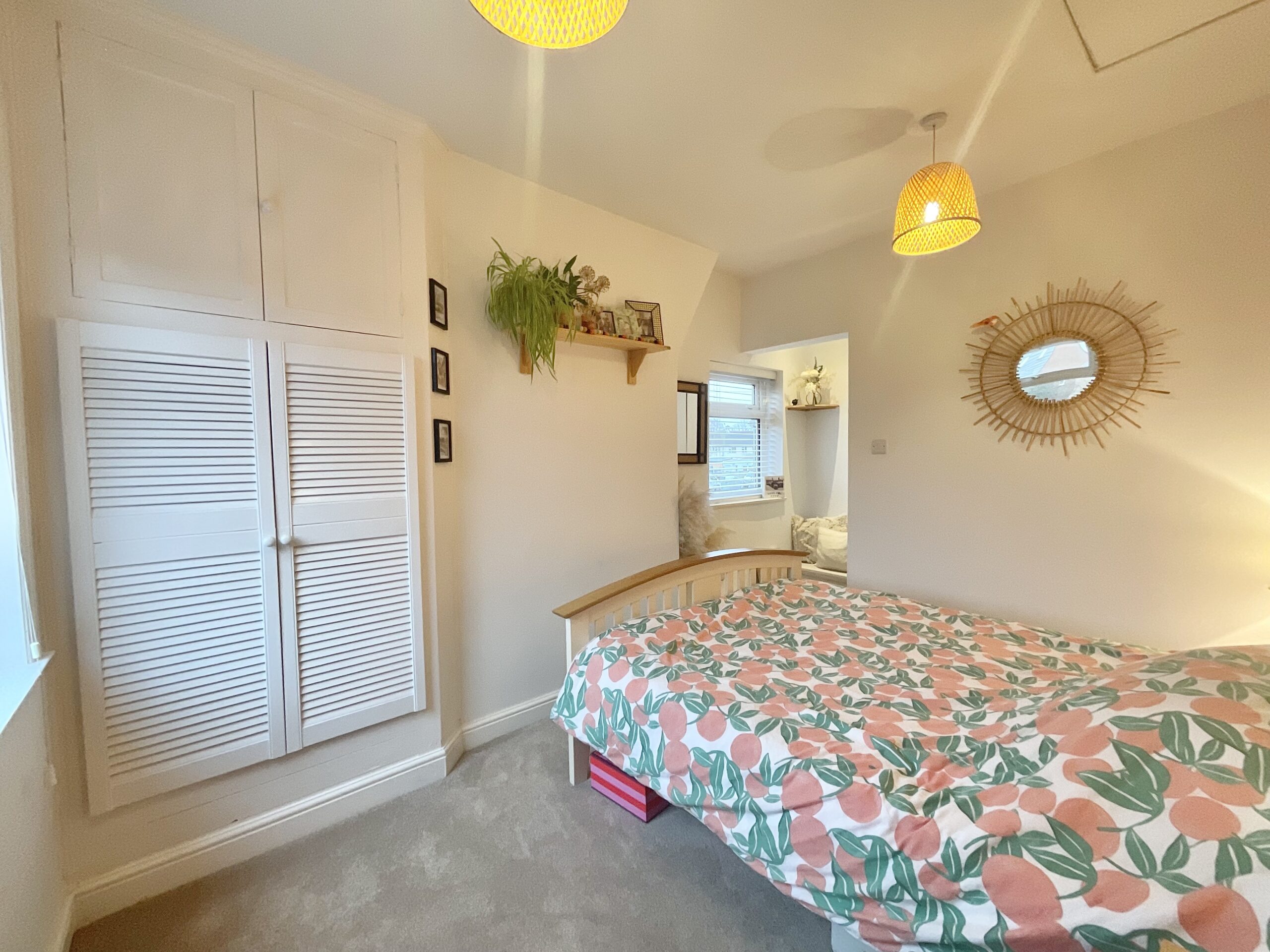 Upstairs, bedroom one is a spacious double with plenty of room for freestanding furniture. Bedroom two is another comfortable double, benefiting from a built-in wardrobe, a boiler cupboard, and dual-aspect windows that fill the room with light.