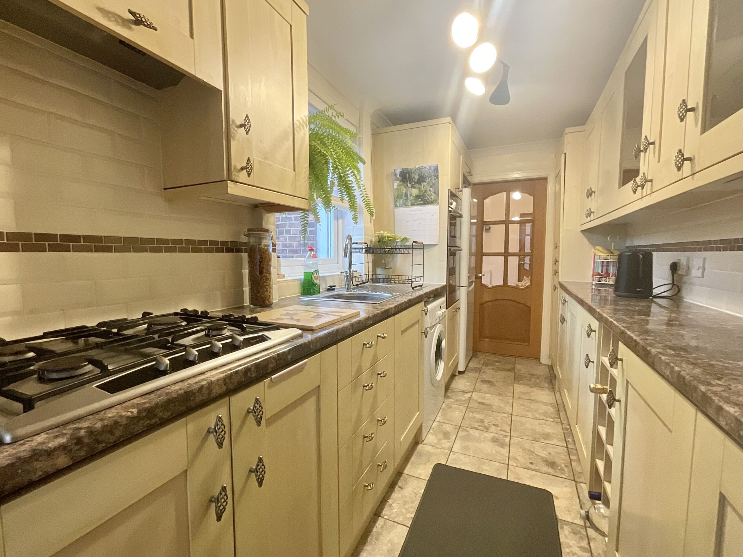 The kitchen offers ample worktop and cupboard space and is well equipped with an integrated oven. There is also space for a fridge/freezer and a washing machine, making it both practical and functional. The conservatory provides an additional bright and airy living area, with French doors opening out into the garden, further enhancing the flow between indoor and outdoor spaces.
