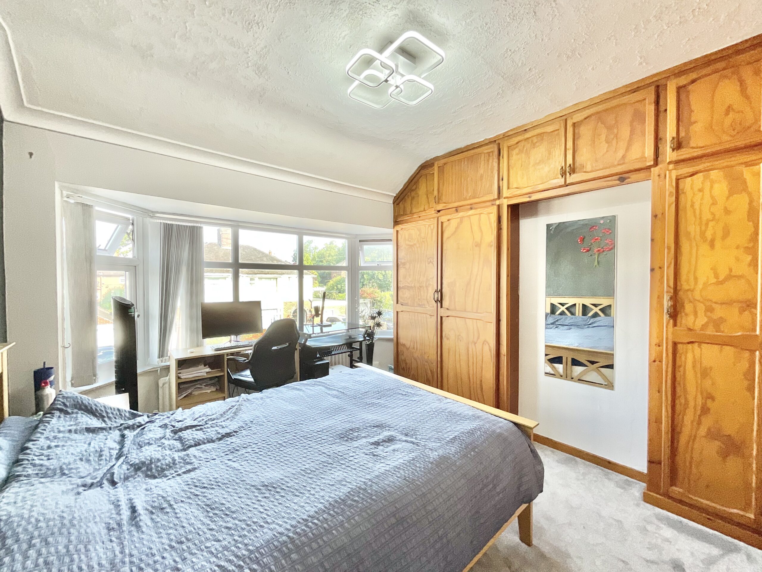 - A second spacious sitting room for ease and comfort with a large bay window and feature fire surround, plus a galley kitchen with ample cabinetry space for cooking.
