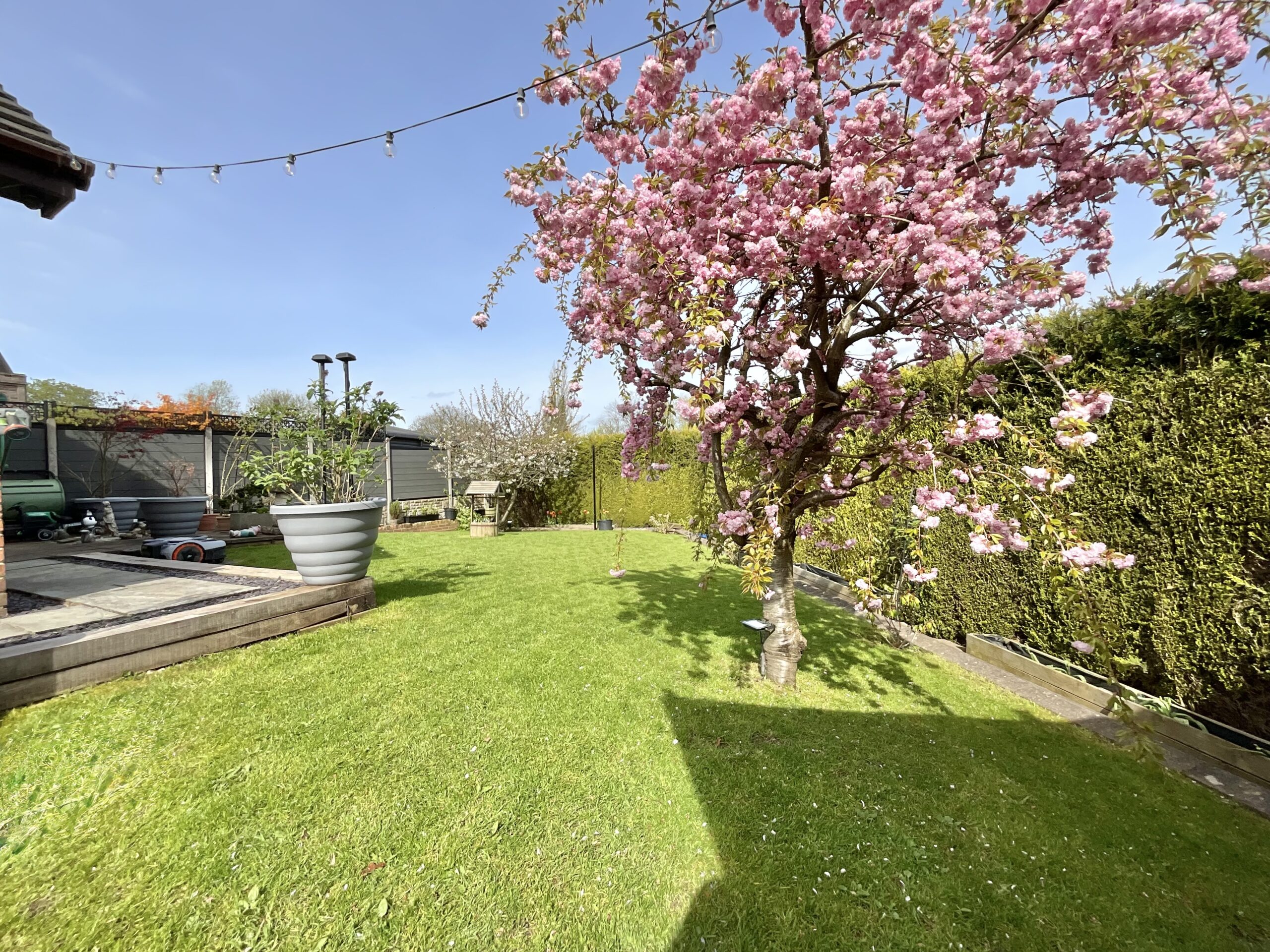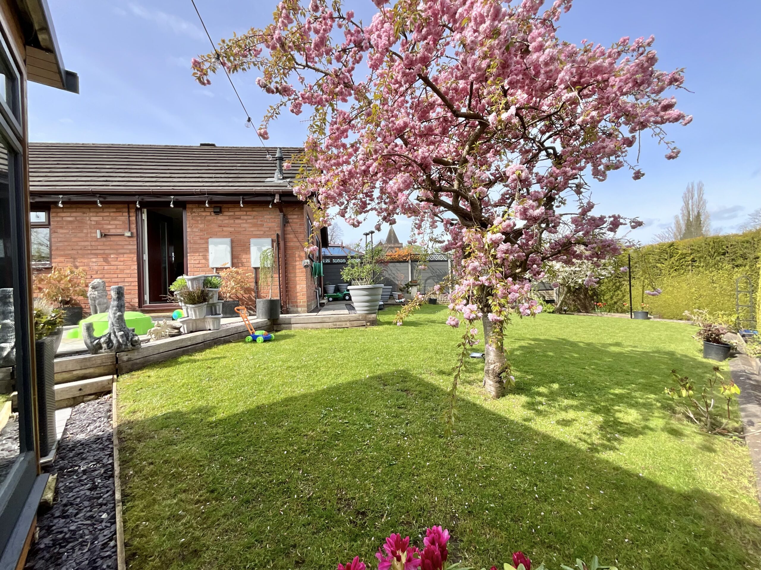 “Oh Mickey, you’re so fine. You’re so fine. You blow my mind.” Well, I don’t know about Mickey, whoever he is, but 2 Runnymede is gorgeous! Located at the edge of a quiet cul-de-sac, sits a beautiful two bedroom detached bungalow, modern and bright, just waiting for its next inhabitants. As you step through the door, enter into an open plan kitchen, lounge, and diner. The lounge section sports an electric fireplace as a great secondary heating source, as well as glazed sliding doors onto the garden beyond. The kitchen an abundance of grey cabinets topped with a wood-effect worktop. A nifty space to cook up those firm favourites whilst not missing out on time with guests and family. With room for a large dining table, eat and entertain in style. For sleeping arrangements, you have two bedrooms, a very generous single, and a double-size master with a front box bay window and fitted sliding wardrobes. The family shower room serves the home, featuring a walk-in shower and sparkly quartz-effect tiles. The home is complete with a guest WC. For extra living space, you have an exterior garden cabin insulated with double glazed windows that let in lots of natural light, along with a multi-fuel log burner for extra heat in the colder months. An all year round haven. A storage shed adjoins this for extra storage. To the rear, you have a beautiful garden, lush green grass trimmed with flowers and two blossom trees, blooming lovely in season. A patio seating area allows for an outside tipple or barbecue in style. To the front you have a driveway for your parking needs as well as a large double garage, whether that be for storage or cars, it’s an additional space that benefits the home. And all this is located in Bucknall, just moments away from the city centre, for modern convenience, great local schools, hustle and bustle and shops. A quiet cul-de-sac location makes it feel like you live in the countryside, secluded and peaceful. For transport you have bus stops all along Werrington Road down in to Stoke-on-Trent, whilst for travel by car you have strong access to the A50, A500 and Stoke Railway Station to get further afield. Think this property could blow your mind? Book your viewing today and be pleasantly surprised by the space. You won’t be disappointed.
