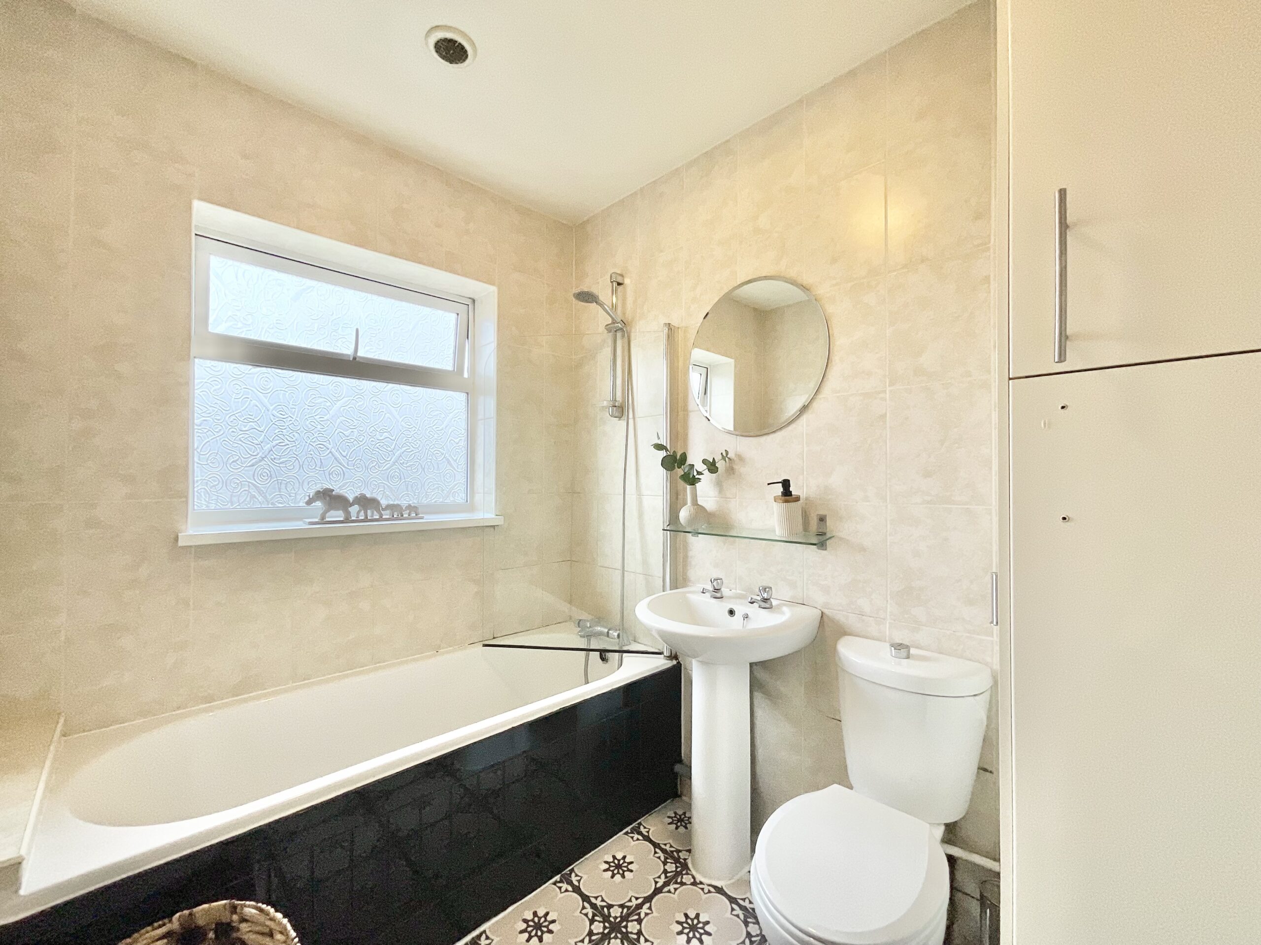 3. Upstairs offers three well-proportioned bedrooms and a family bathroom complete with bath and shower combination, pedestal wash hand basin and WC.