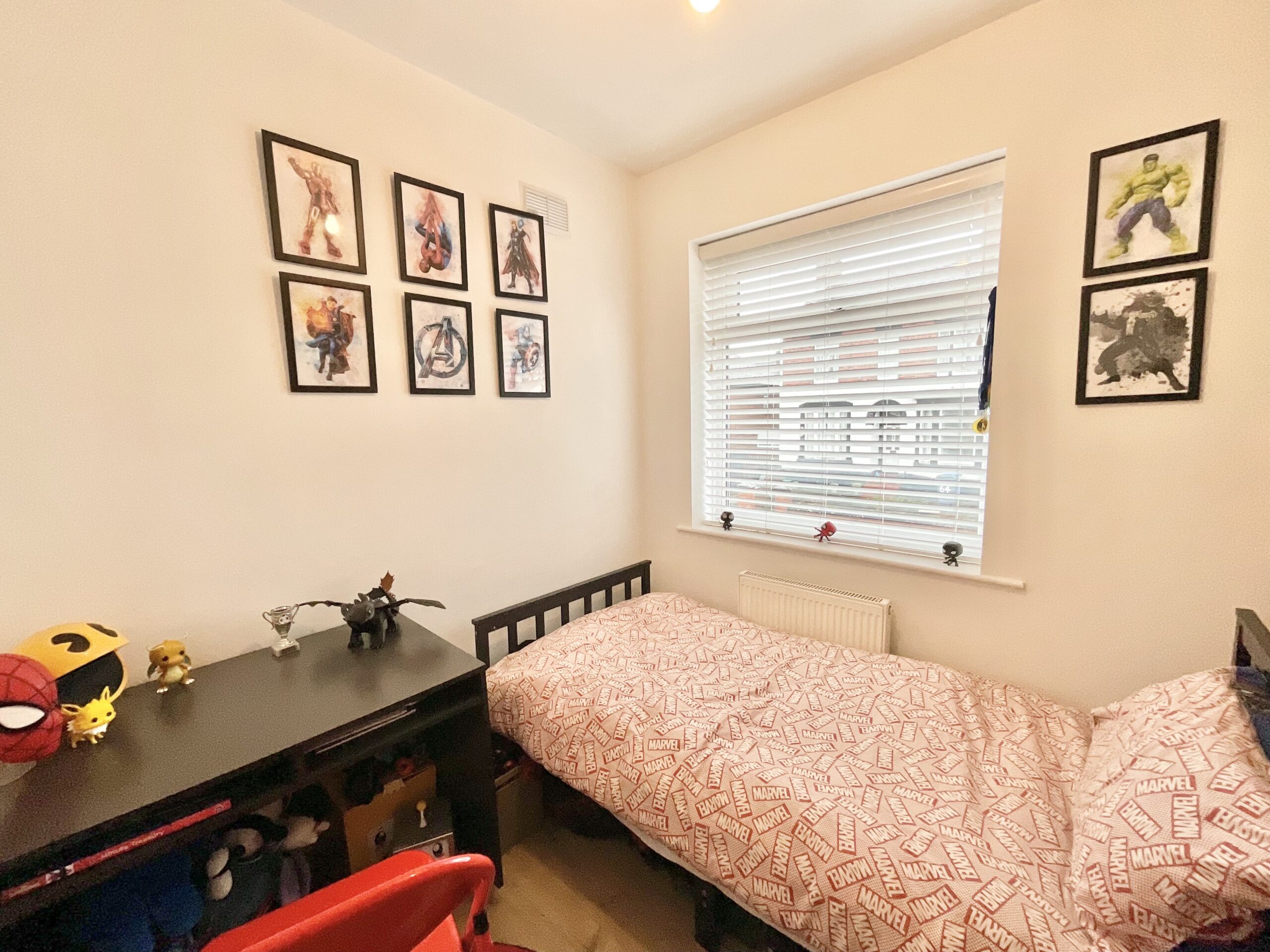 Upstairs, there are three well-proportioned bedrooms, each adaptable to suit changing needs, whether for family living, home working, or guest accommodation. The bathroom completes the floor with a bath and shower combination, pedestal wash basin, and WC, providing a clean and functional space. Outside, the rear garden features a lawn and patio area, perfect for outdoor dining, relaxing, or hosting friends and family.