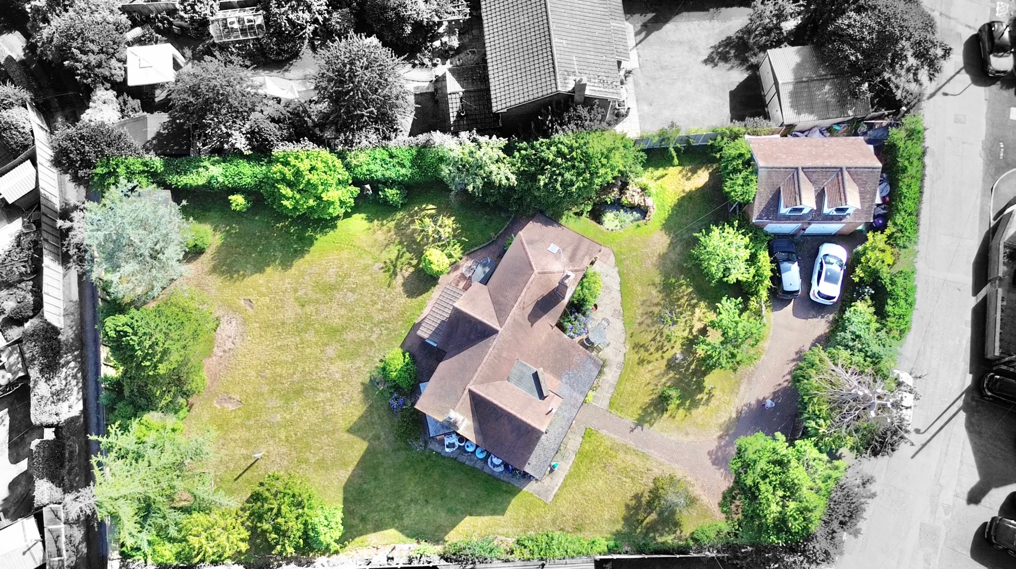 Outside, the tale takes a lush turn. The landscaped garden stretches wide on 1/3 of an acre, framed by 13 mature fruit trees, rolling lawns, and a sparkling pond, a true enchanted escape. Hidden seating nooks invite quiet reflection, while patio areas set the stage for laughter, storytelling and al fresco dining. A paved driveway and two-story double garage provide both practicality and promise, with the upper floor currently serving as a home office, though its potential is as limitless as your imagination. Set in the heart of Market Drayton, this home keeps you close to everything, from a range of schools and amenities to scenic countryside walks that could fill countless story pages.