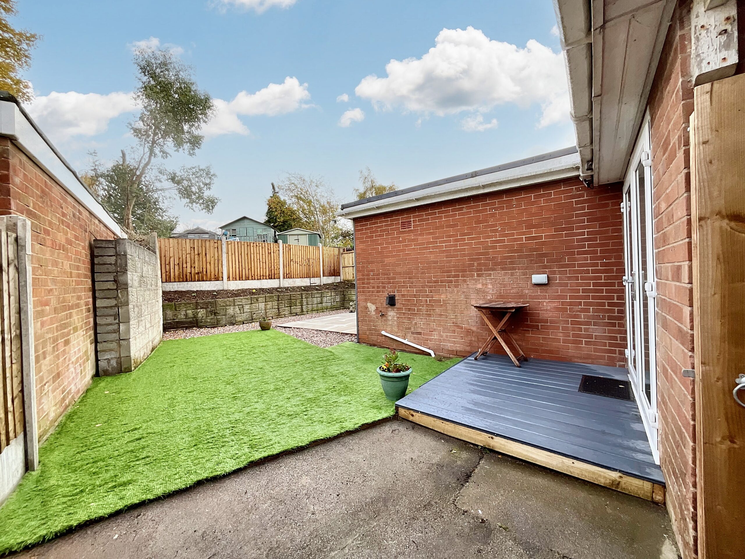 Signed, sealed, delivered, it’s yours! Set proudly on an elevated plot, the home is approached via a long driveway leading to a carport and ample parking. Step through the side entrance into a welcoming porch, perfect for leaving shoes before entering the bright, fresh interior. The spacious hallway leads to the heart of the home, a light-filled living room featuring a gas fireplace with an elegant surround, ideal for cosy evenings in. Continue through to the kitchen diner, recently refitted with sleek cream cabinetry, marble-effect worktops, and luxurious gold accents. This modern space offers integrated appliances including an oven, induction hob, and washing machine. Bifold doors open seamlessly to the porcelain-tiled patio, creating the perfect setting for hosting friends and family or simply relaxing in peace while enjoying the garden. A handy storage cupboard keeps everyday essentials neatly tucked away. The principal bedroom, positioned at the front of the house, enjoys fresh neutral décor and soft new carpets. The modern bathroom has been beautifully finished as a contemporary wet room for ease and practicality, complete with a built-in linen cupboard. To the rear, the second bedroom features French doors opening onto composite decking; perfect spot for a morning coffee, while the third bedroom enjoys private views over the garden. Outside, you’ll find two seating areas, allowing you to follow the sun throughout the day, along with artificial lawn and gravelled sections for low-maintenance enjoyment all year round. The front garden is adorned with mature shrubs, adding colour and charm, with plenty of potential to create your own garden oasis. Situated in the popular village of Forsbrook, this home offers beautiful countryside walks, well-regarded schools, and handy local amenities, all while remaining well connected to nearby towns and cities. It’s already written; your next chapter begins at none other than Scarratt Drive.
