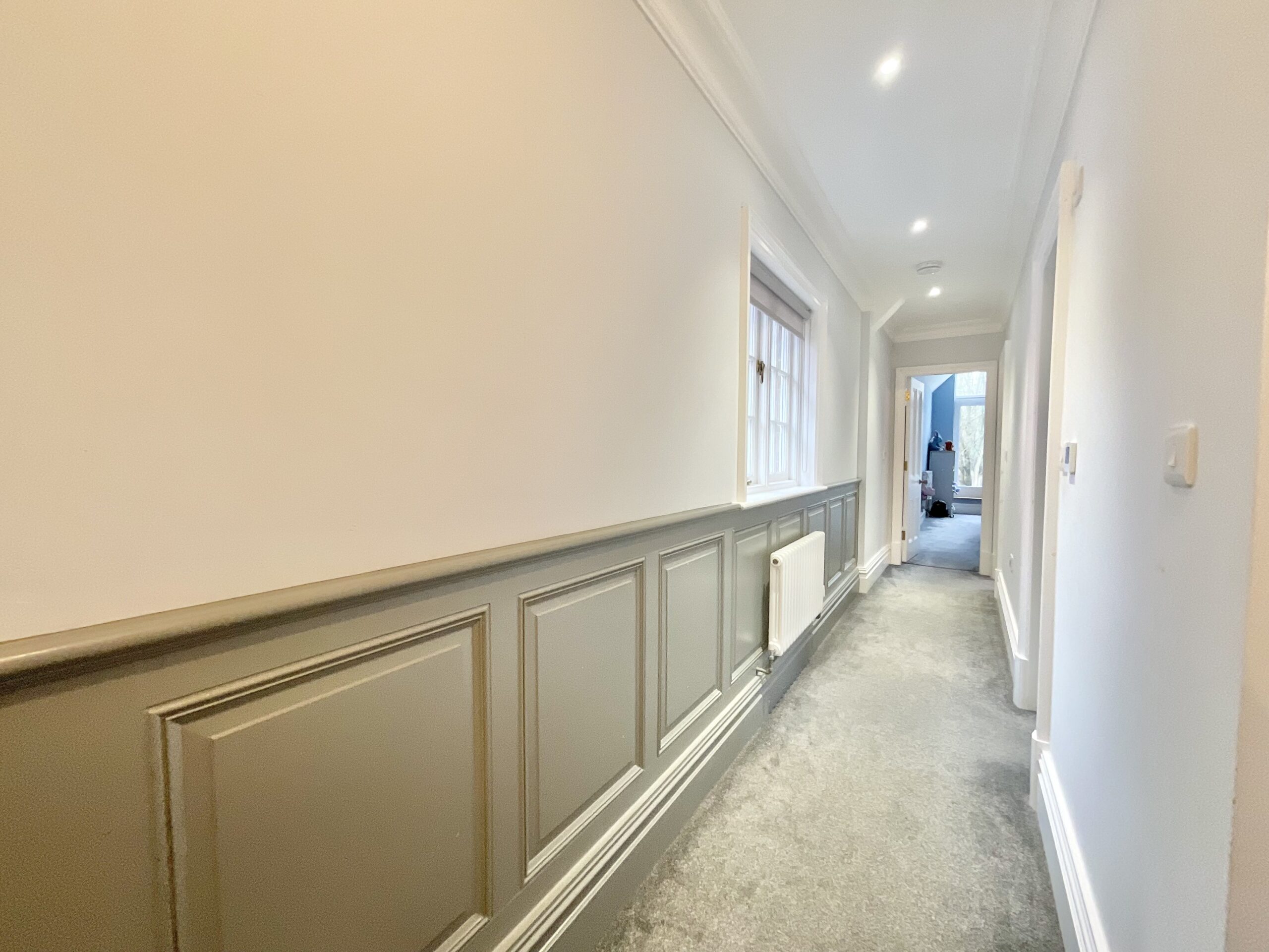 The refurbishment includes bespoke wooden double-glazed windows with stained glass, all individually made and benefitting from a 50-year transferable guarantee. Underfloor heating runs throughout the entire ground floor, and all upstairs bathrooms are also fitted with underfloor heating, providing comfort throughout the home.