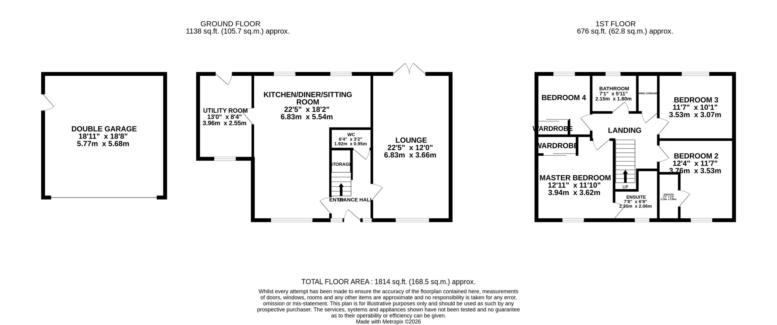 To the front, the home boasts excellent kerb appeal, with lawned gardens, mature planting, and a spacious driveway leading to the double garage.