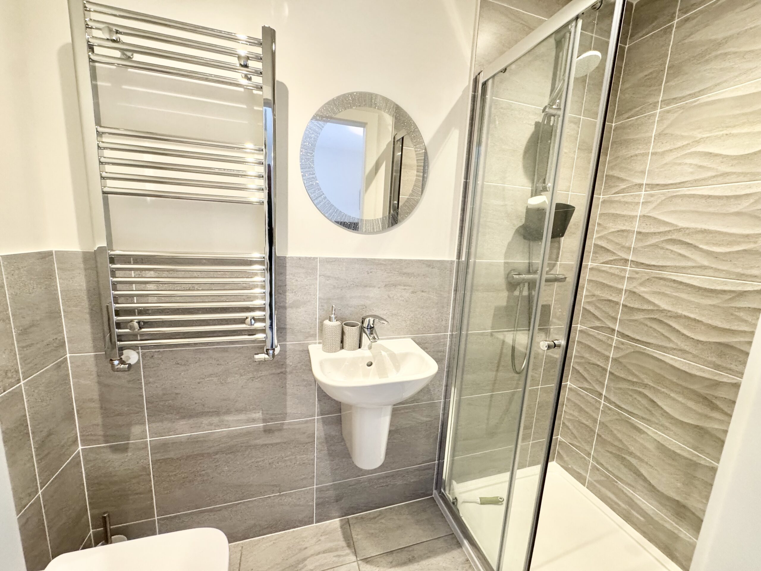 Upstairs, the first-floor landing leads to four well-proportioned bedrooms and also provides access, via a pull-down ladder, to a professionally boarded loft, offering excellent additional storage. The principal bedroom is a spacious and calming retreat, complete with fitted mirrored wardrobes and a stylish ensuite shower room. Bedroom two also benefits from its own ensuite, making it ideal for guests or older family members. Two further bedrooms overlook the rear garden, one of which is currently used as a home office, offering flexibility for modern living. A well-appointed family bathroom completes the accommodation.