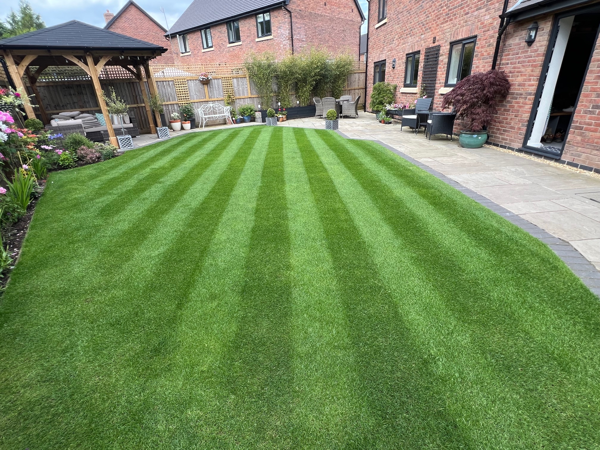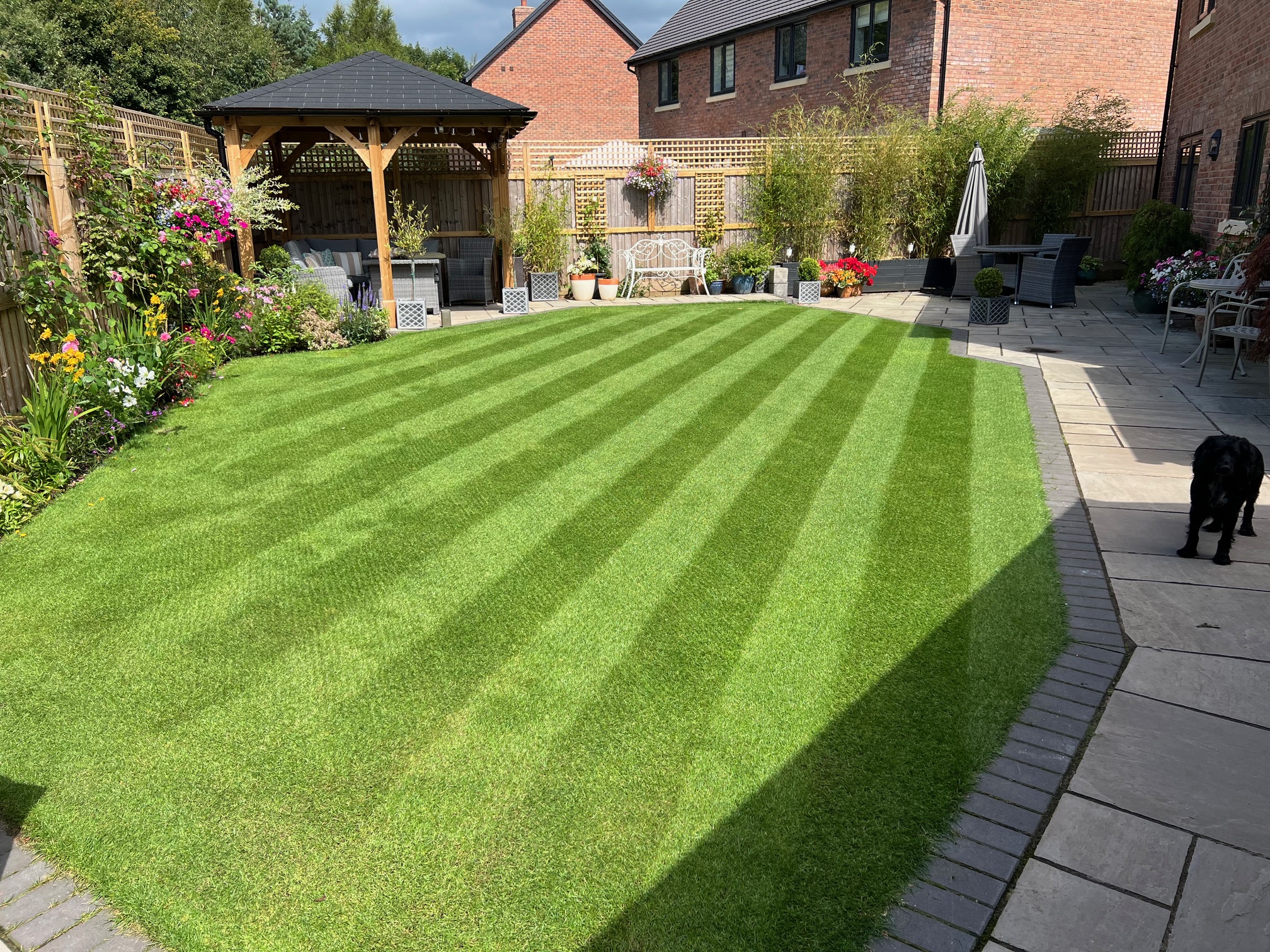 - Beautifully landscaped rear garden featuring an Indian stone patio and a fully enclosed gazebo seating area, complemented by a detached double garage.