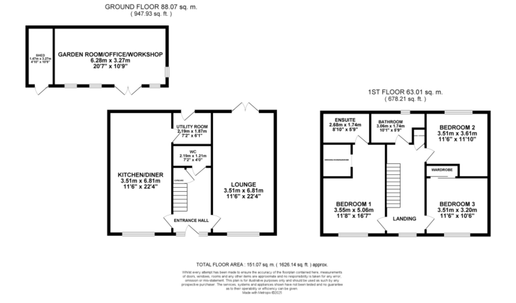 - Outside you'll find a driveway and a magnificent garden with a patio area, large lawn area and a very generous garden room/office/workshop and shed.
