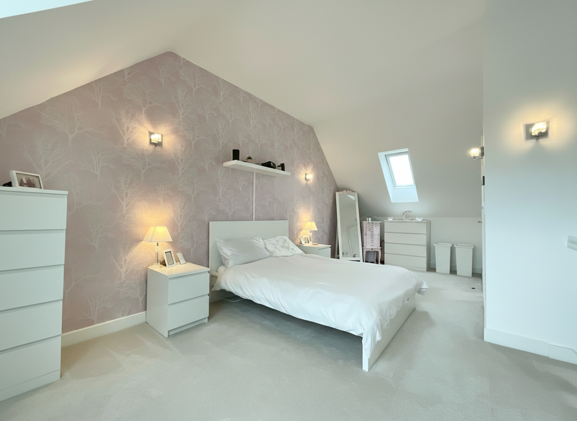 Occupying the entire top floor, the impressive master suite provides a private retreat. There is ample space for a double bed, wardrobes, and even a dressing table. The suite is further enhanced by a modern ensuite with a walk-in shower.