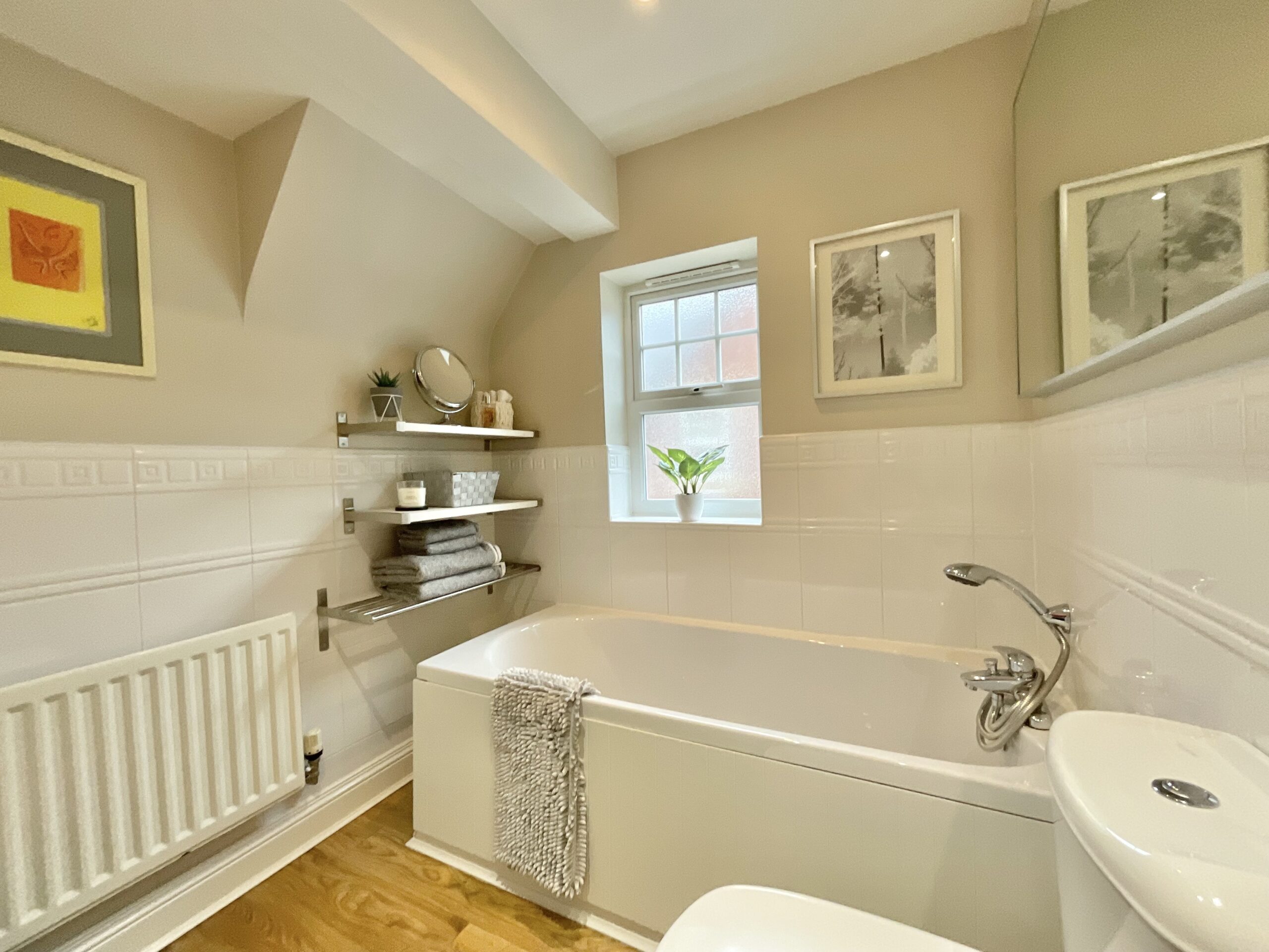 Externally, the mature rear garden provides a peaceful and private setting, attracting a variety of wildlife including birds and hedgehogs, making it a delightful spot to enjoy a quiet Sunday morning. The garden offers a patio area for entertaining, a well-maintained lawn, and composite decking which houses a hot tub (not included in the sale).
