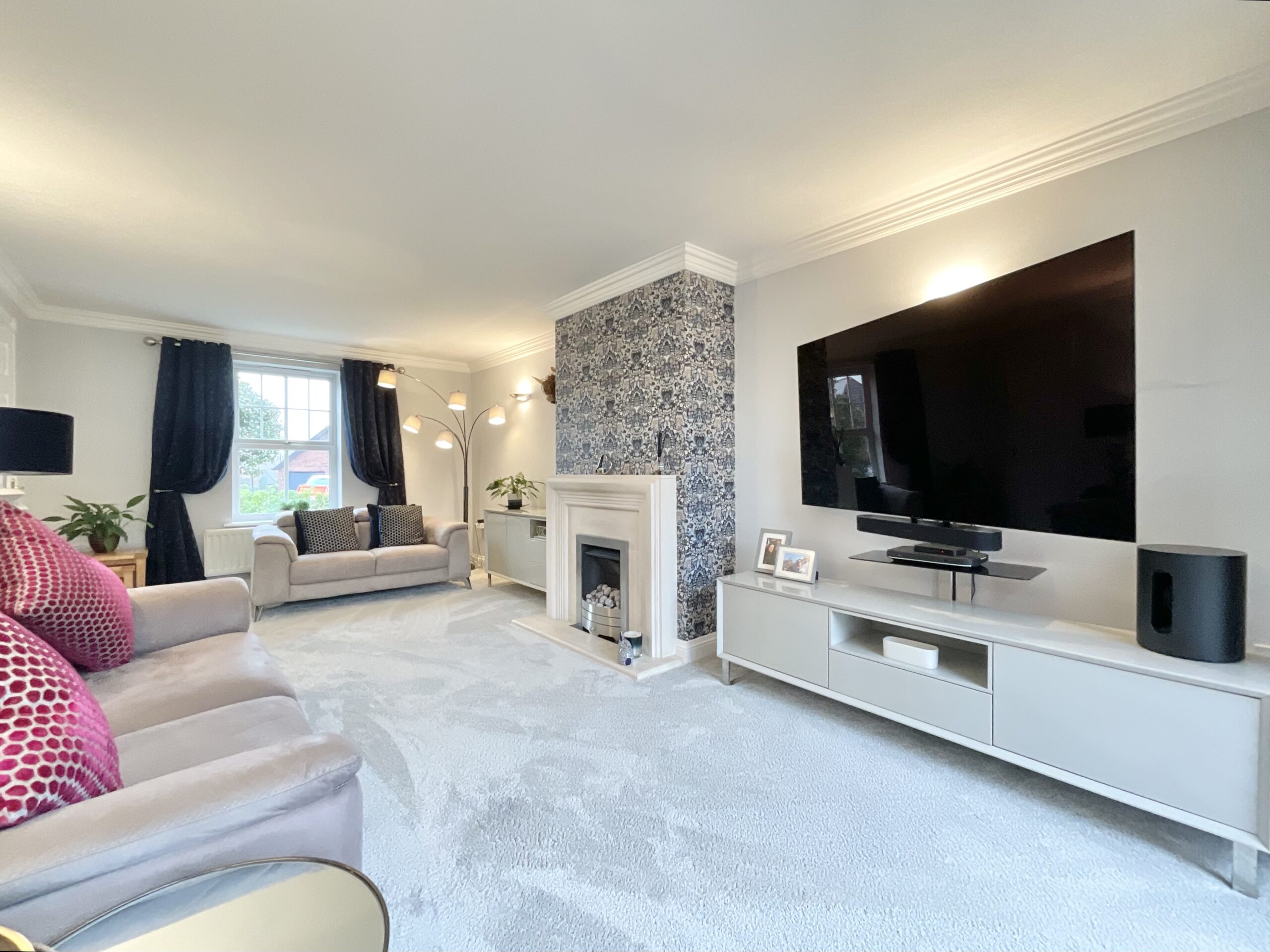 - Stunning 20-foot lounge with bi-fold doors, patio access and contemporary stone-surround gas fire