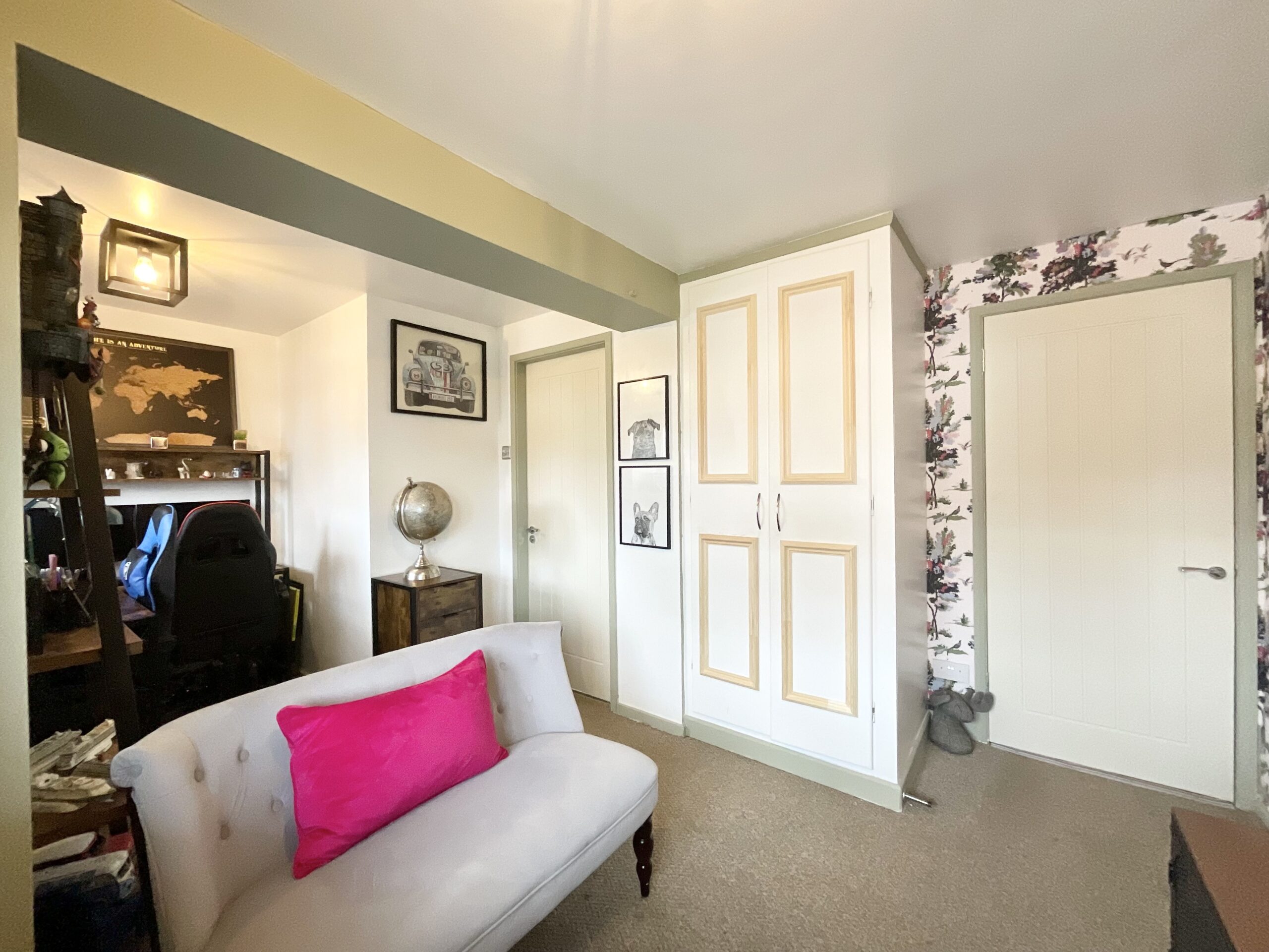 Outside, the South-East facing garden offers the perfect victory lap, ideally positioned to catch the morning sun and enjoy light well into the afternoon. A decked seating area provides an ideal space for alfresco dining and entertaining, leading onto a lawn bordered by mature planting. At the bottom of the garden, a barked play area creates a dedicated zone for younger family members to burn off energy. To the front of the property, there is ample off-road parking on a tidy block paved driveway. For those looking to add even more space, we understand the property has lapsed planning permission for a further room to be added to the loft, offering exciting scope to further enhance and personalise the home.