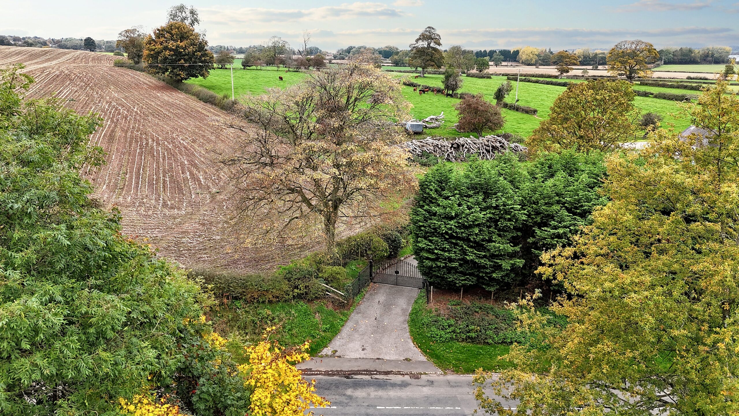 - Sitting on a sizeable 0.47-acre plot accessed via electric gates, offering ample off-road parking, sweeping lawns, mature hedging, housing for a hot tub, and workshop and coal/wood store
