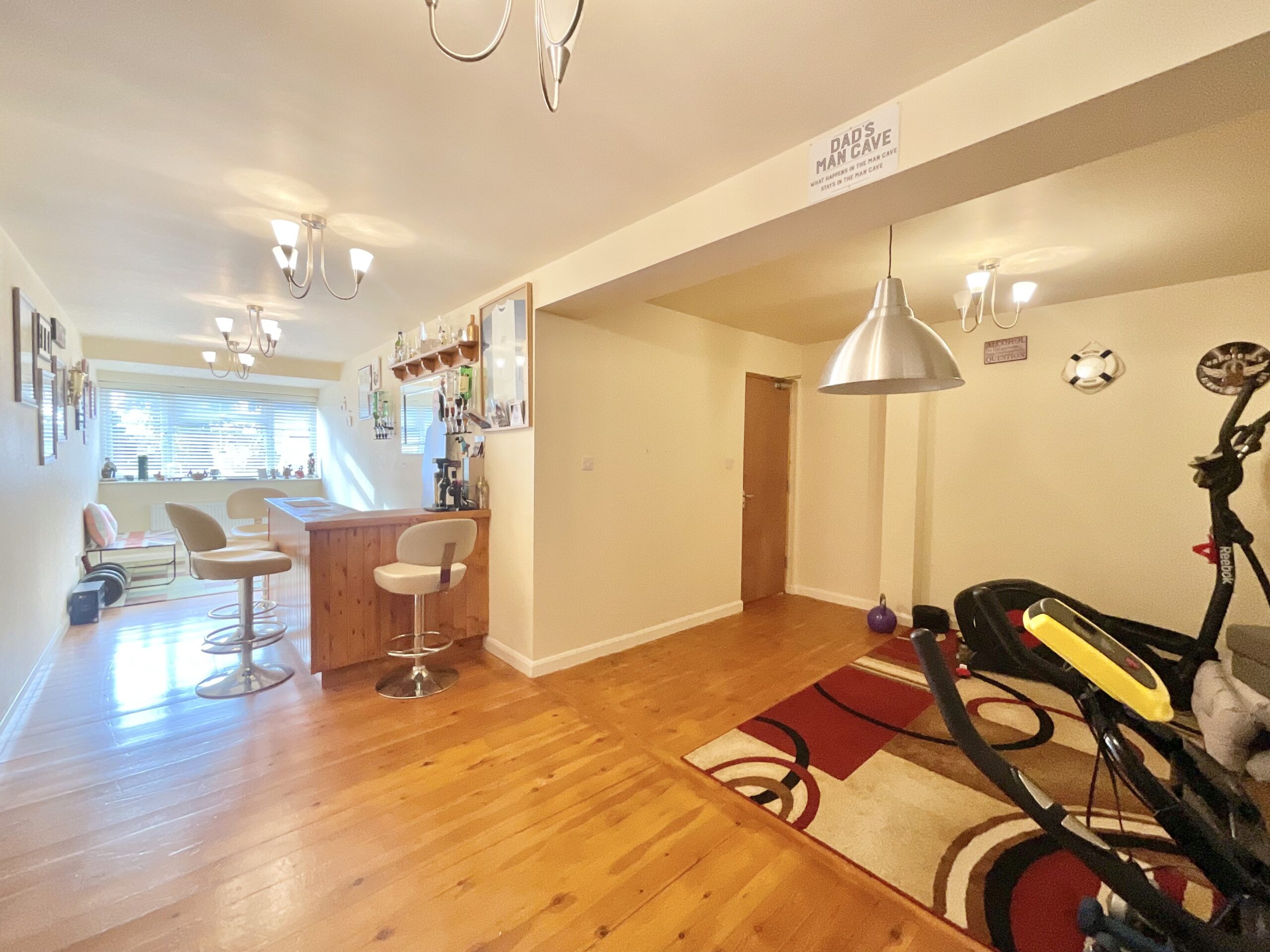 Touch down on the ground floor in a bright and spacious entrance hall opening up to a generous living and entertaining space, currently set up with a bar, but the possibilities are endless. Whether you’re dreaming of a lively games room, a playroom for little ones, or the potential to adapt into an annex-style space for guests or extended family. You’ll also find a study, ideal for working from home. Prefer another bedroom? You can do that too, plus there’s a separate W/C for added convenience.