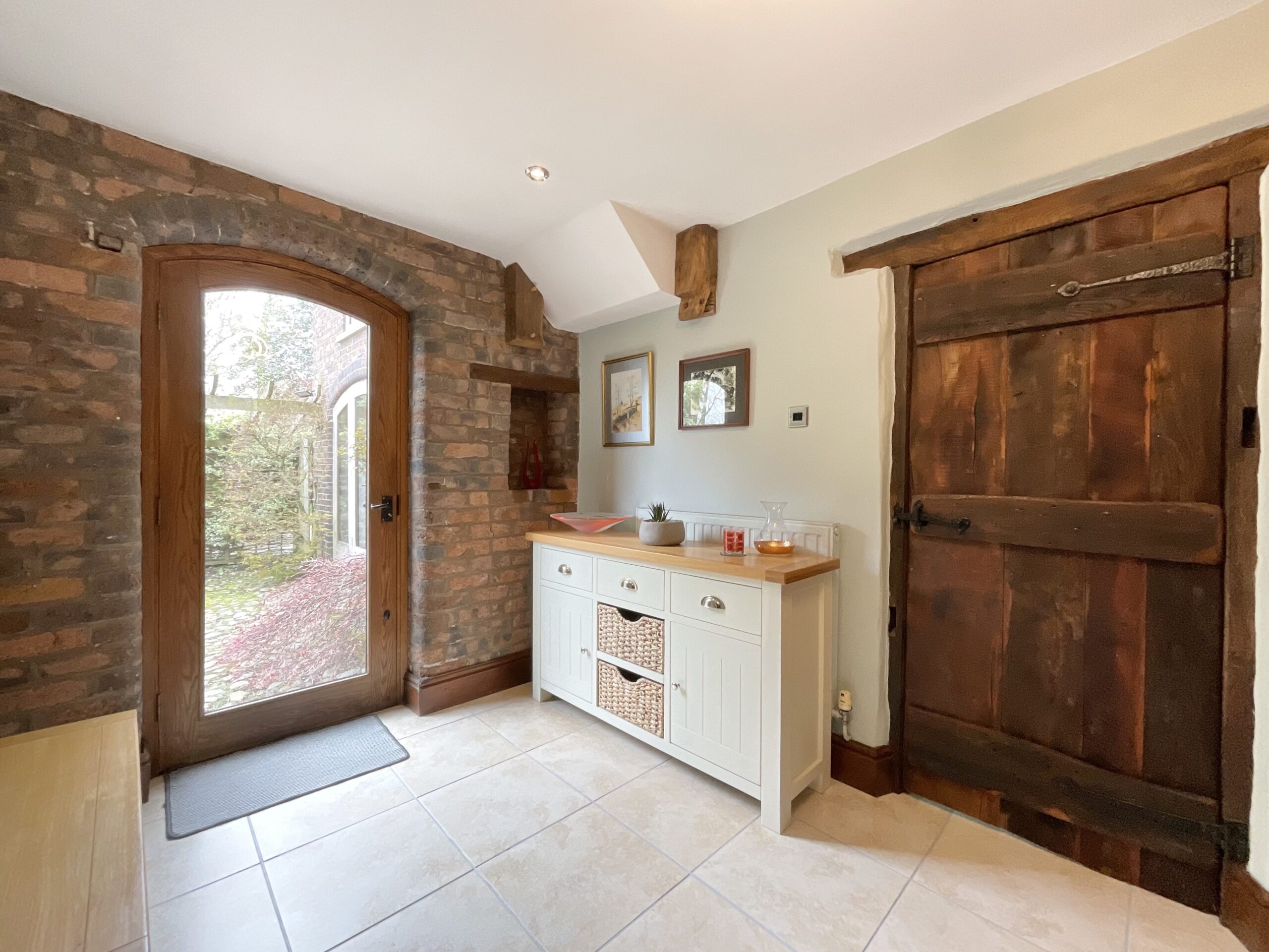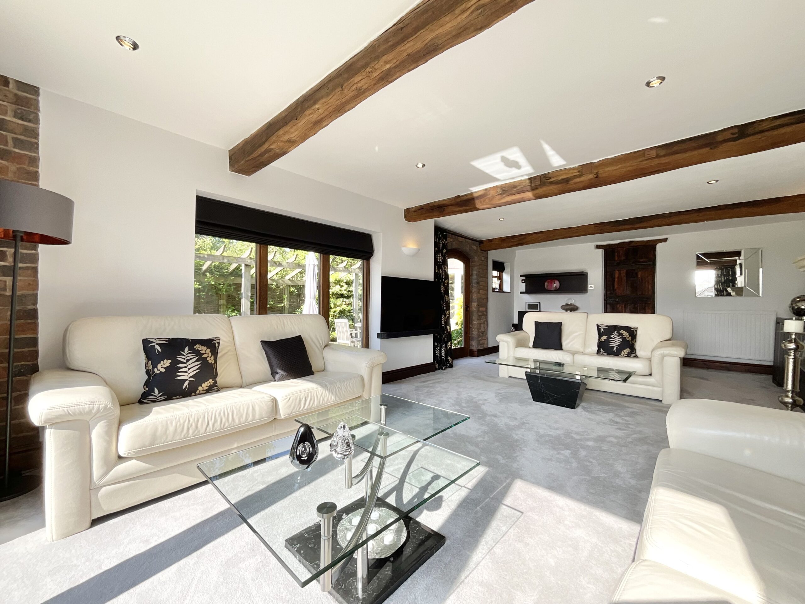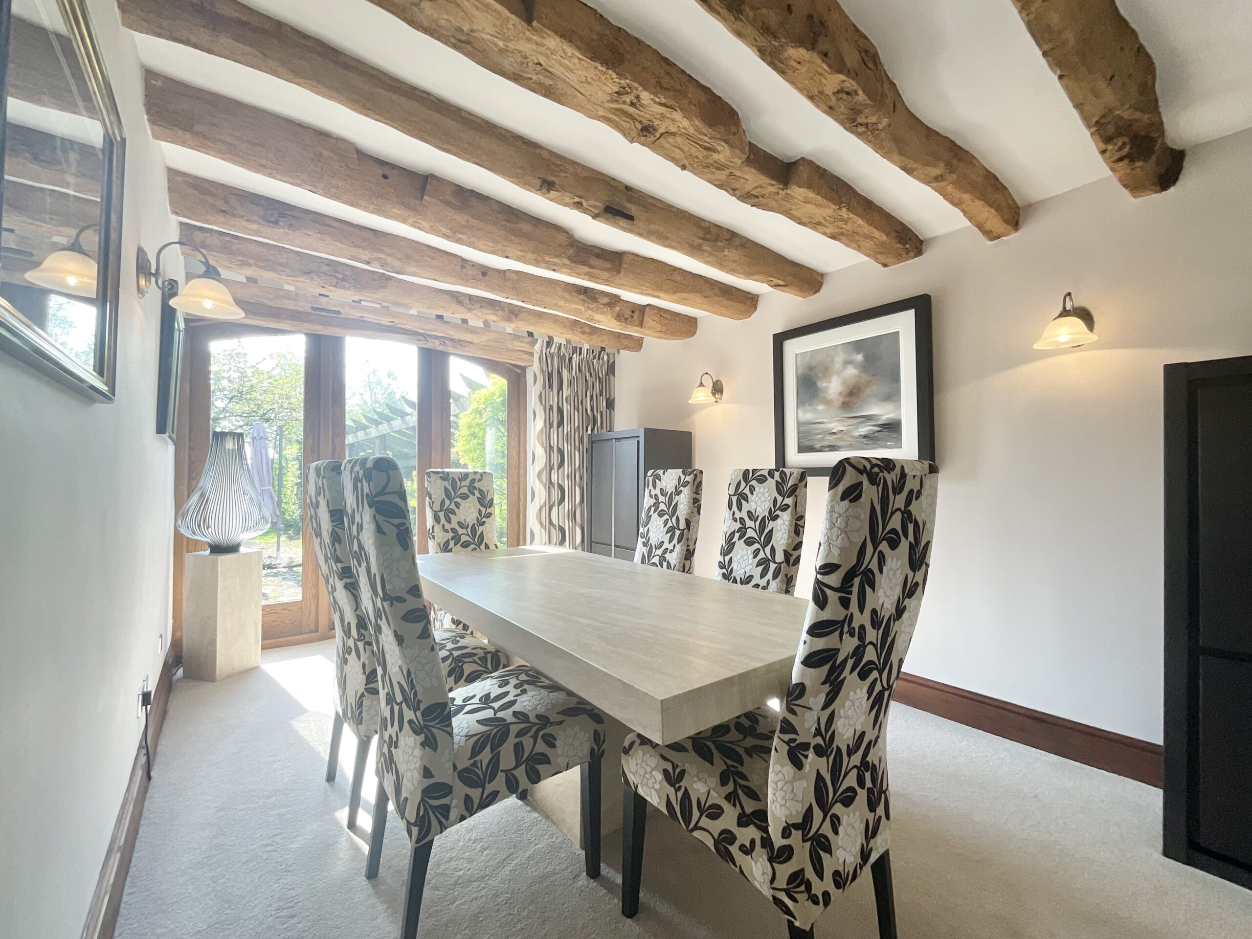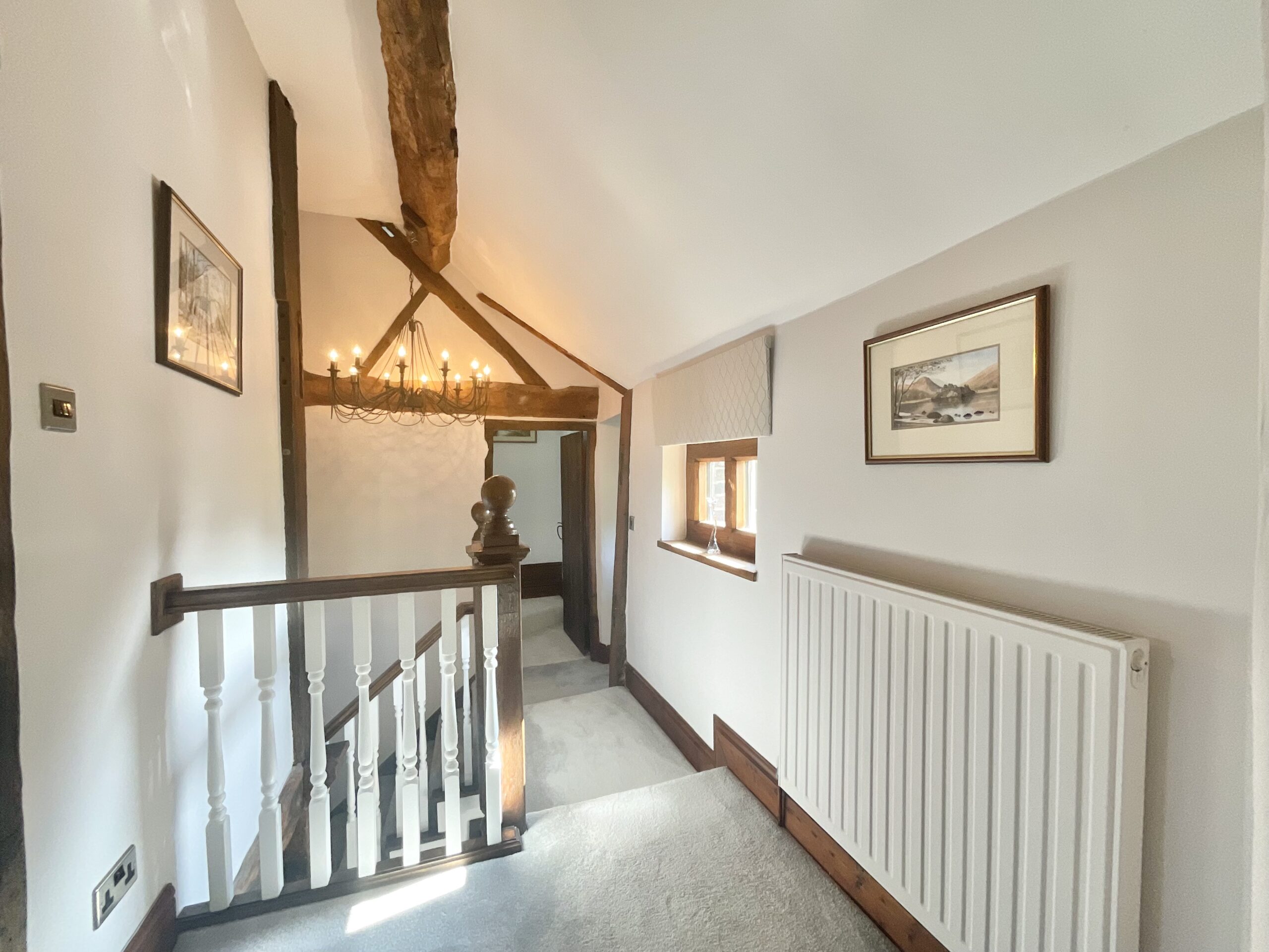 - A characterful barn conversion dating to 1863, featuring original elm doors, oak windows, and striking exposed structural beams throughout.