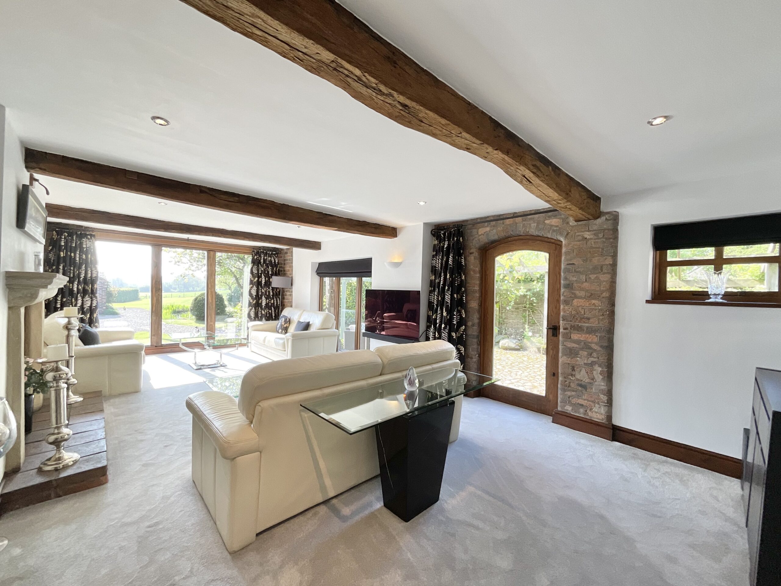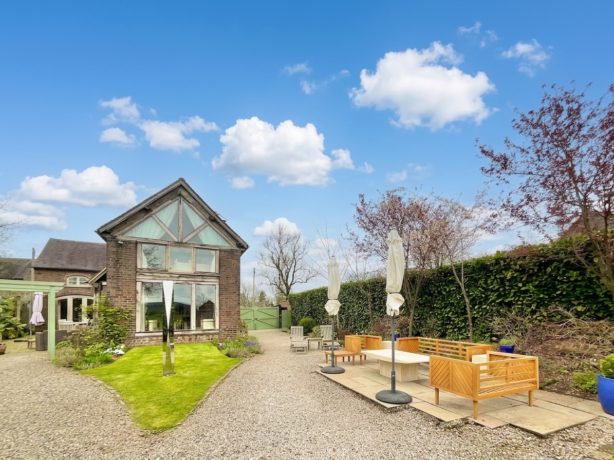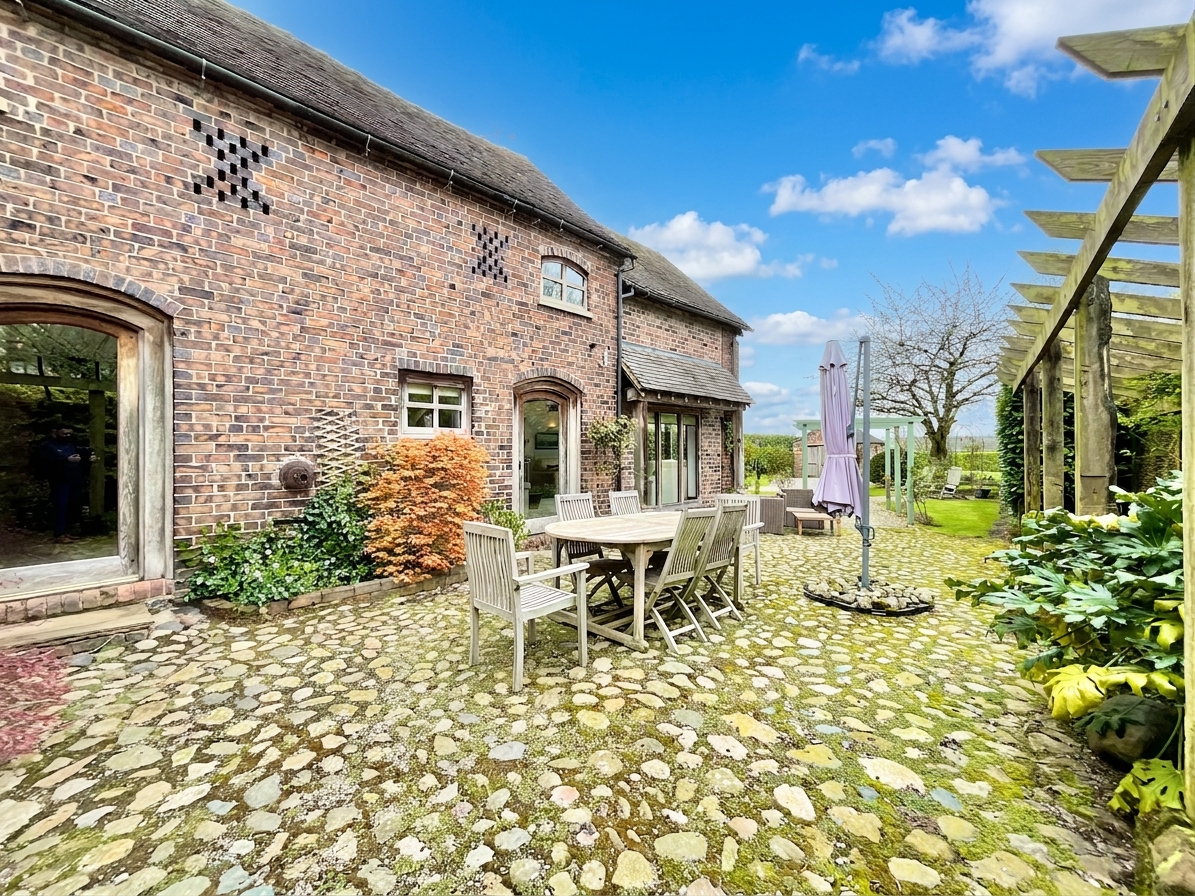 This exceptional four-bedroom detached barn conversion is a striking fusion of historic character and refined contemporary living, extending to over 2,000 sq. ft. and set within a generous plot with far-reaching countryside views.