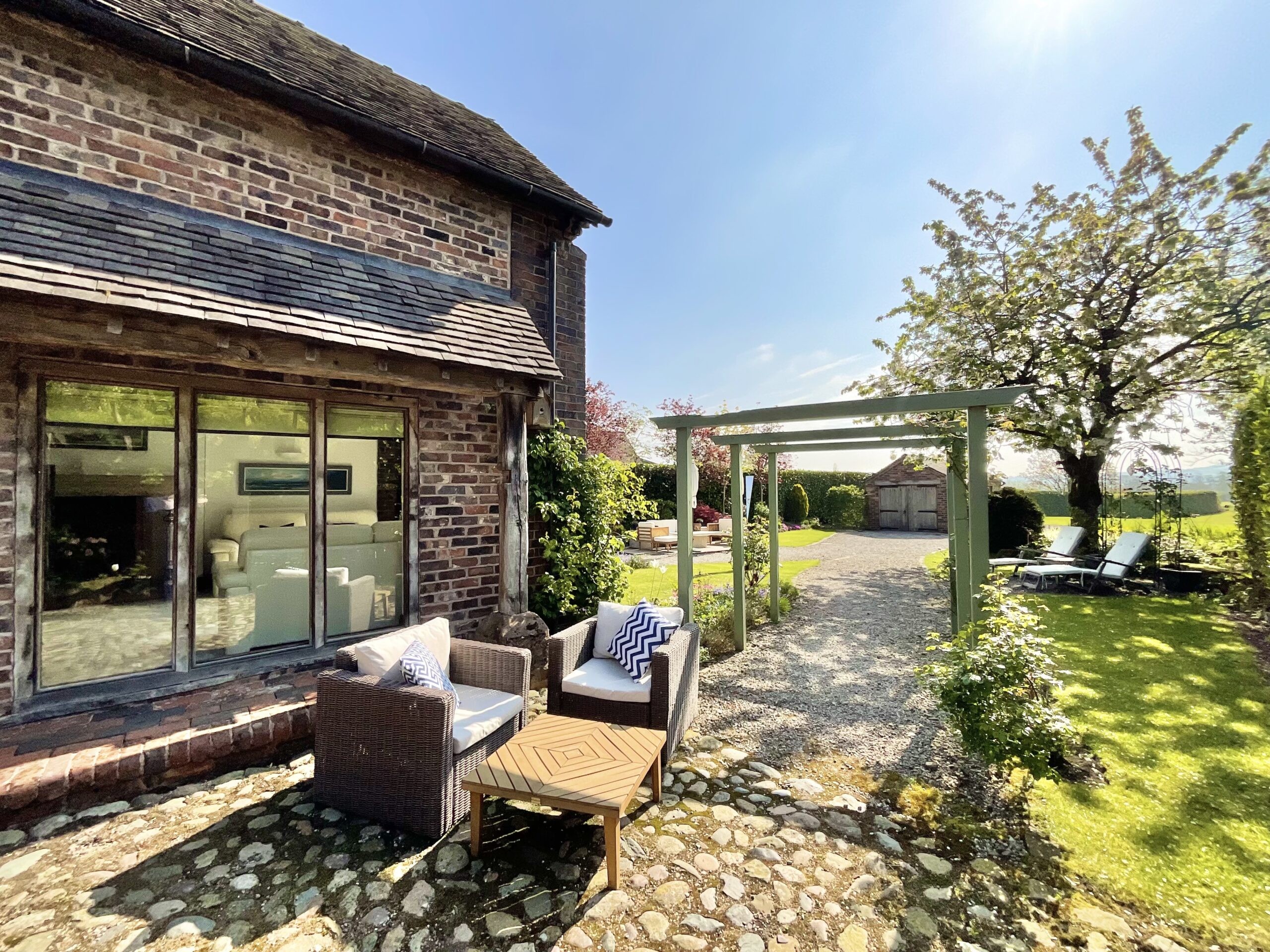 - Set within more than 0.6 of an acre, the property offers expansive gardens, a charming cobbled courtyard, two seating areas, a pond, and stunning views across rolling countryside.