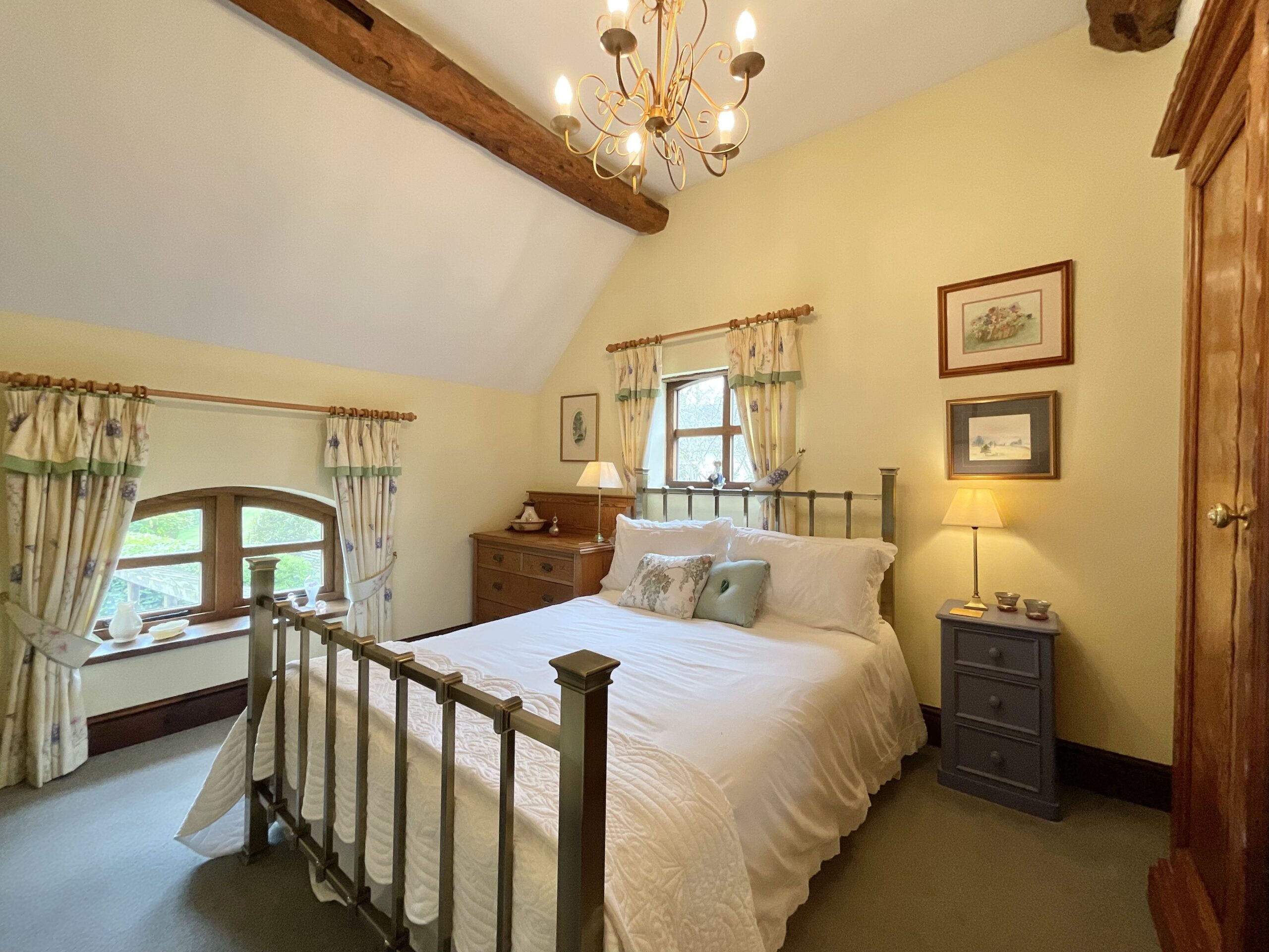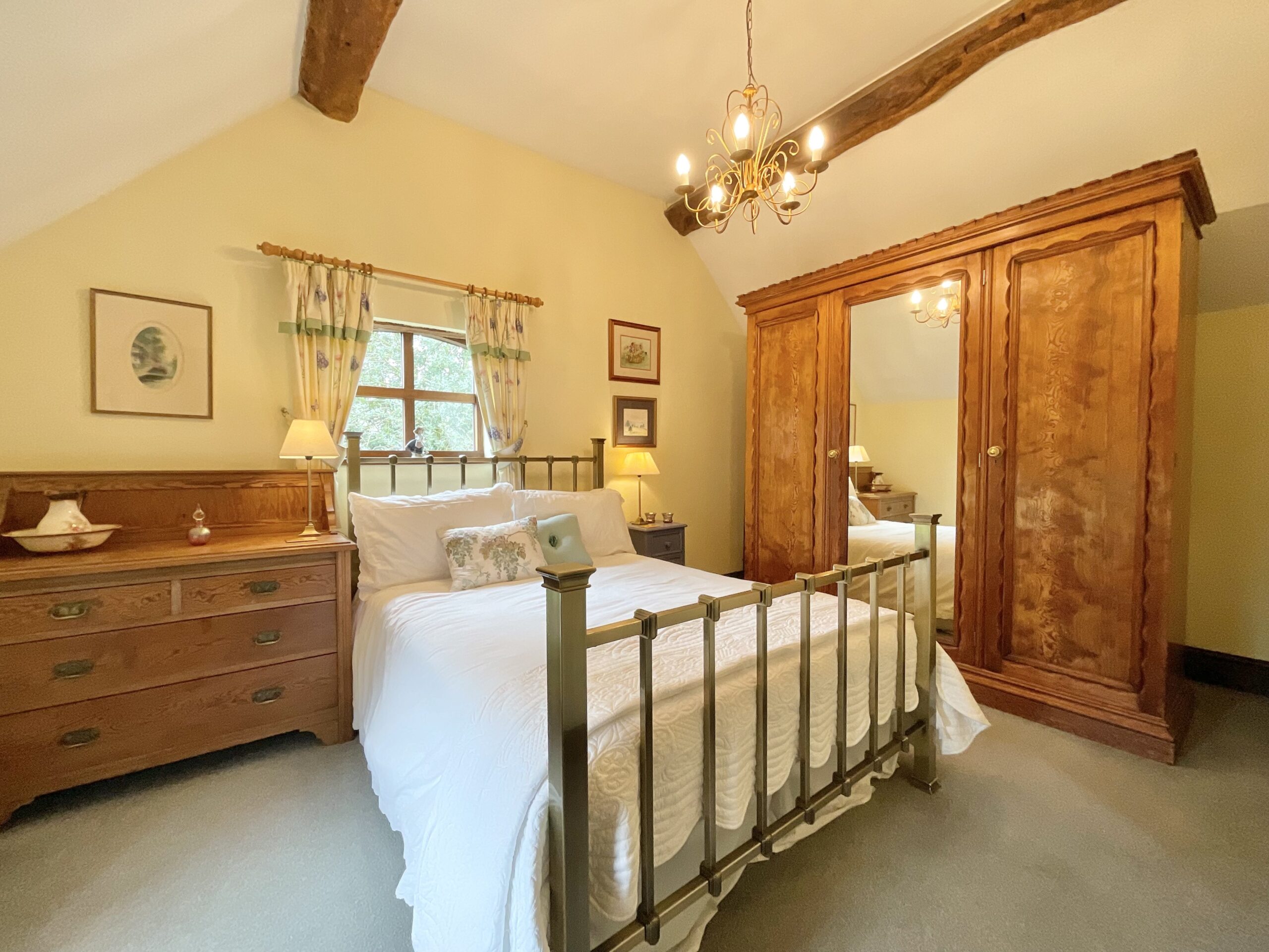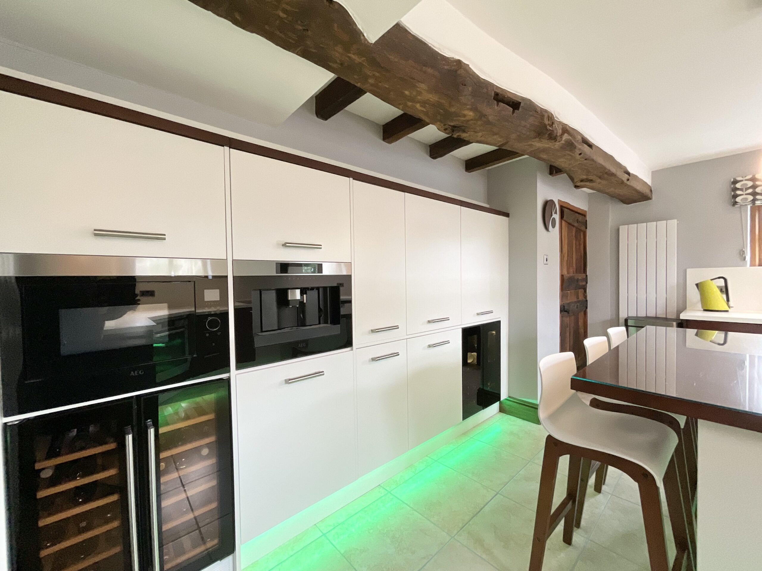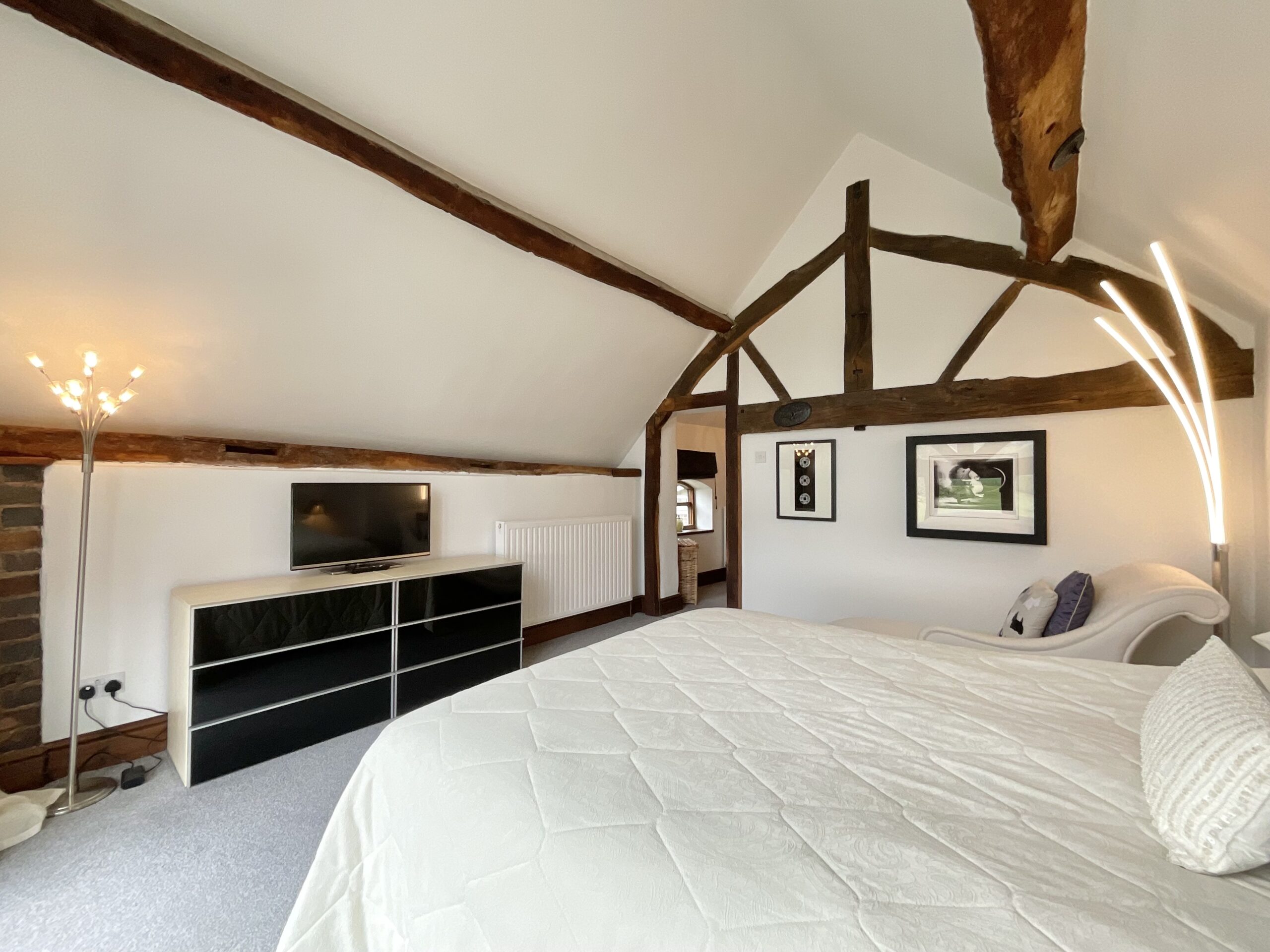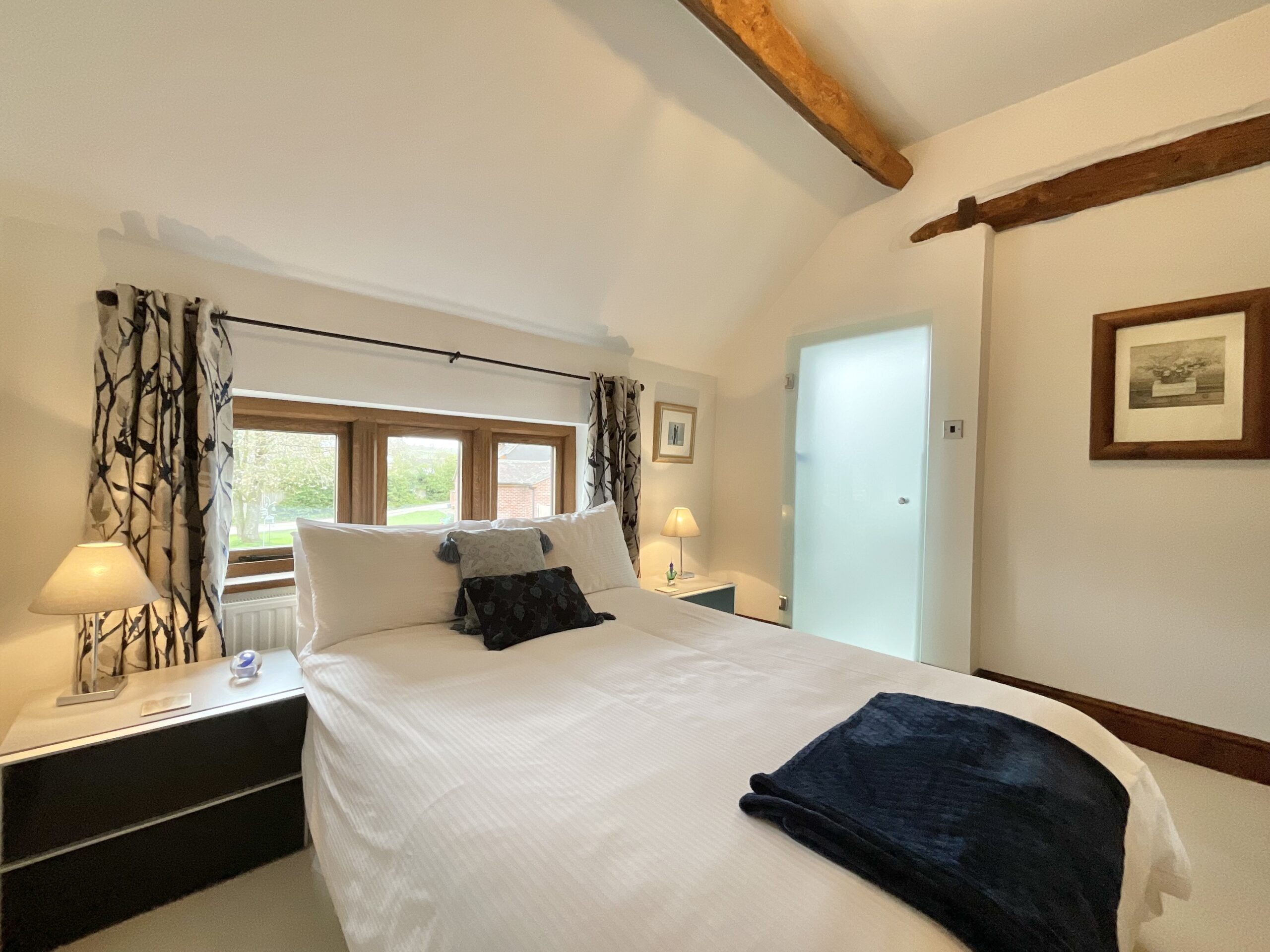 From the moment you step inside, the home’s heritage is immediately apparent. Beautifully preserved, over 100-year-old elm wood doors run throughout, complemented by solid oak-framed, double-glazed windows and glazed doors that enhance both warmth, energy efficiency, and authenticity. Exposed beams feature prominently across the property—almost all of which are structural—creating a sense of integrity and craftsmanship, with only one non-structural beam located in the master bedroom.