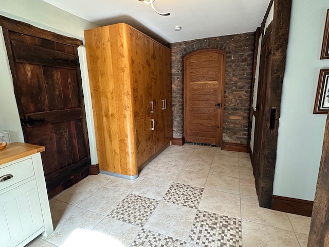 Originally converted into a residential dwelling in 1999, the property has been thoughtfully designed to preserve its heritage while offering the comfort and practicality of modern living. From the moment you step inside, the home’s history is immediately apparent. Beautifully preserved, over 100-year-old elm wood doors run throughout, complemented by solid oak-framed, double-glazed windows and glazed doors that enhance warmth, energy efficiency, and authenticity. Generous ceiling heights further amplify the sense of space and light, while exposed beams feature prominently across the property—almost all of which are structural—showcasing true craftsmanship, with only one non-structural beam located in the principal bedroom.