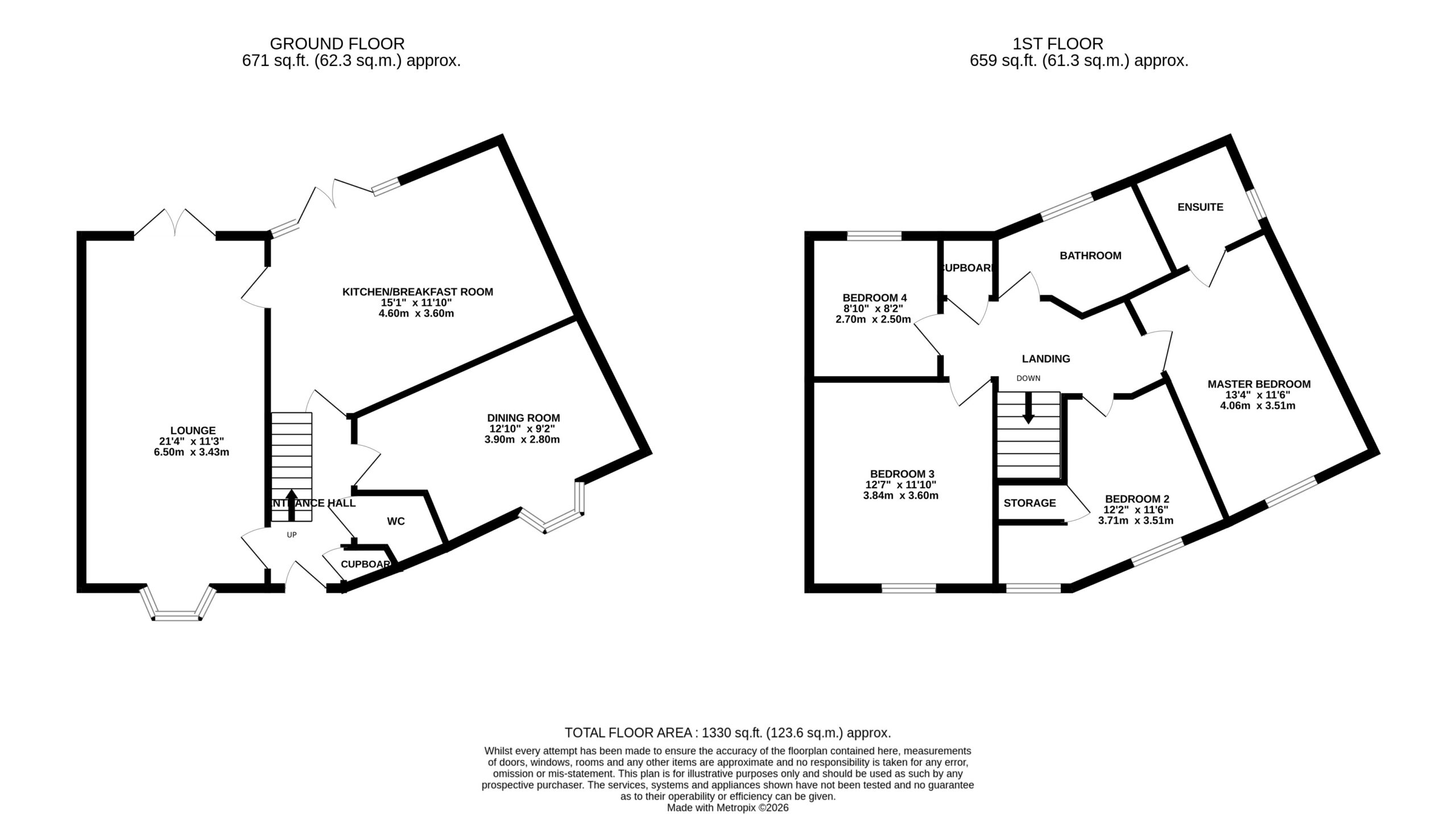 - Four well-proportioned bedrooms including a principal bedroom with en-suite shower room, along with a family bathroom and useful storage, providing comfortable space for growing families.