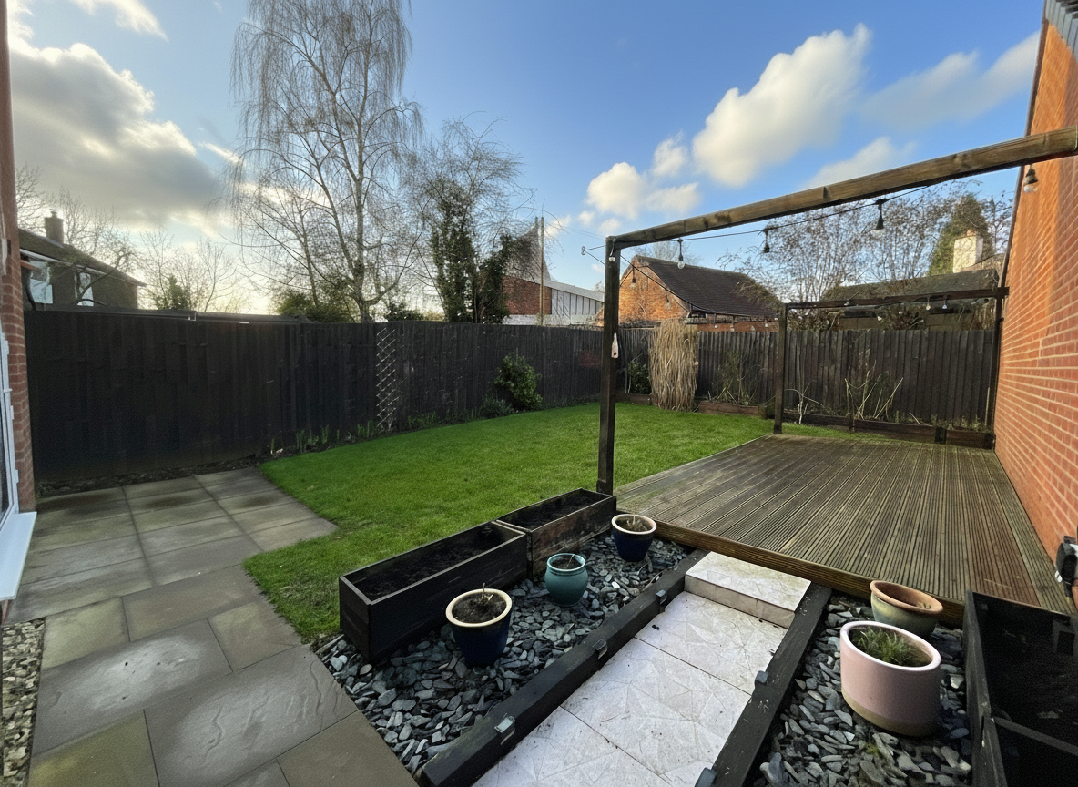 - Well-maintained rear garden with decked seating space and a lush grass lawn, perfect for the whole family to enjoy.