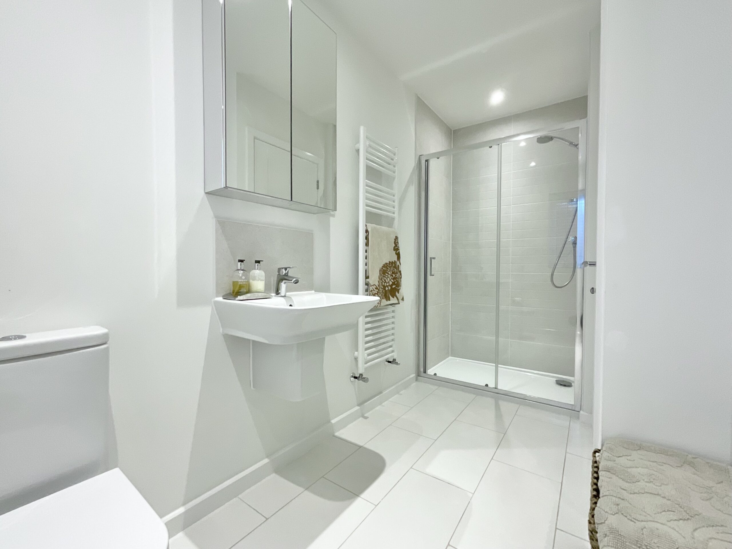 Upstairs, the master bedroom is a spacious and well-proportioned room with ample space for furniture and benefits from a modern en-suite. Bedroom two is similar in size and features built-in wardrobes along with dual-aspect windows, creating a bright and airy atmosphere. Bedroom three is another sizeable double bedroom, while bedroom four, currently used as a dressing room, would be equally well suited as a nursery, home office, or guest bedroom. The main family bathroom is stylishly appointed with both a separate bath and walk-in shower, offering flexibility for family living.