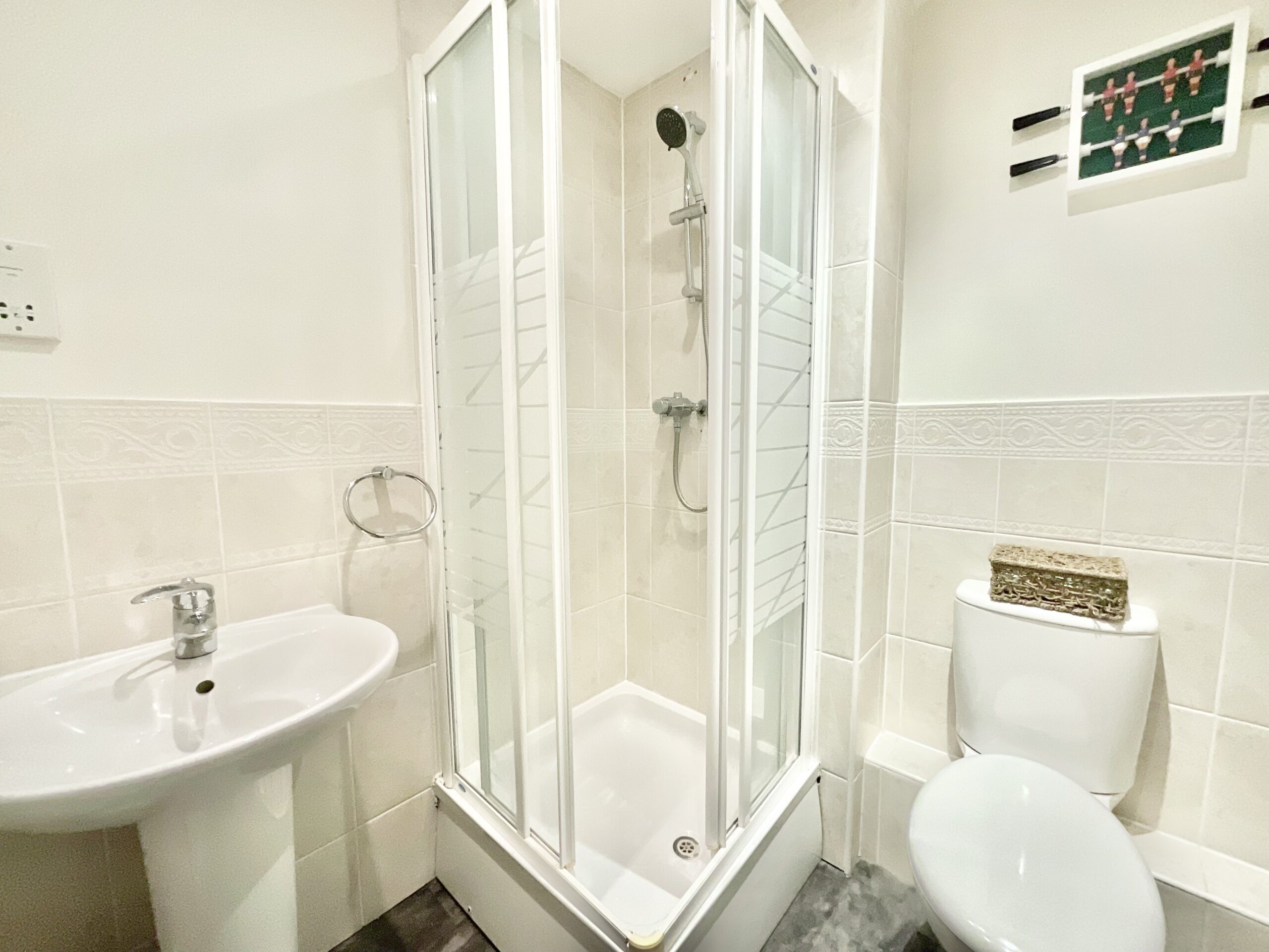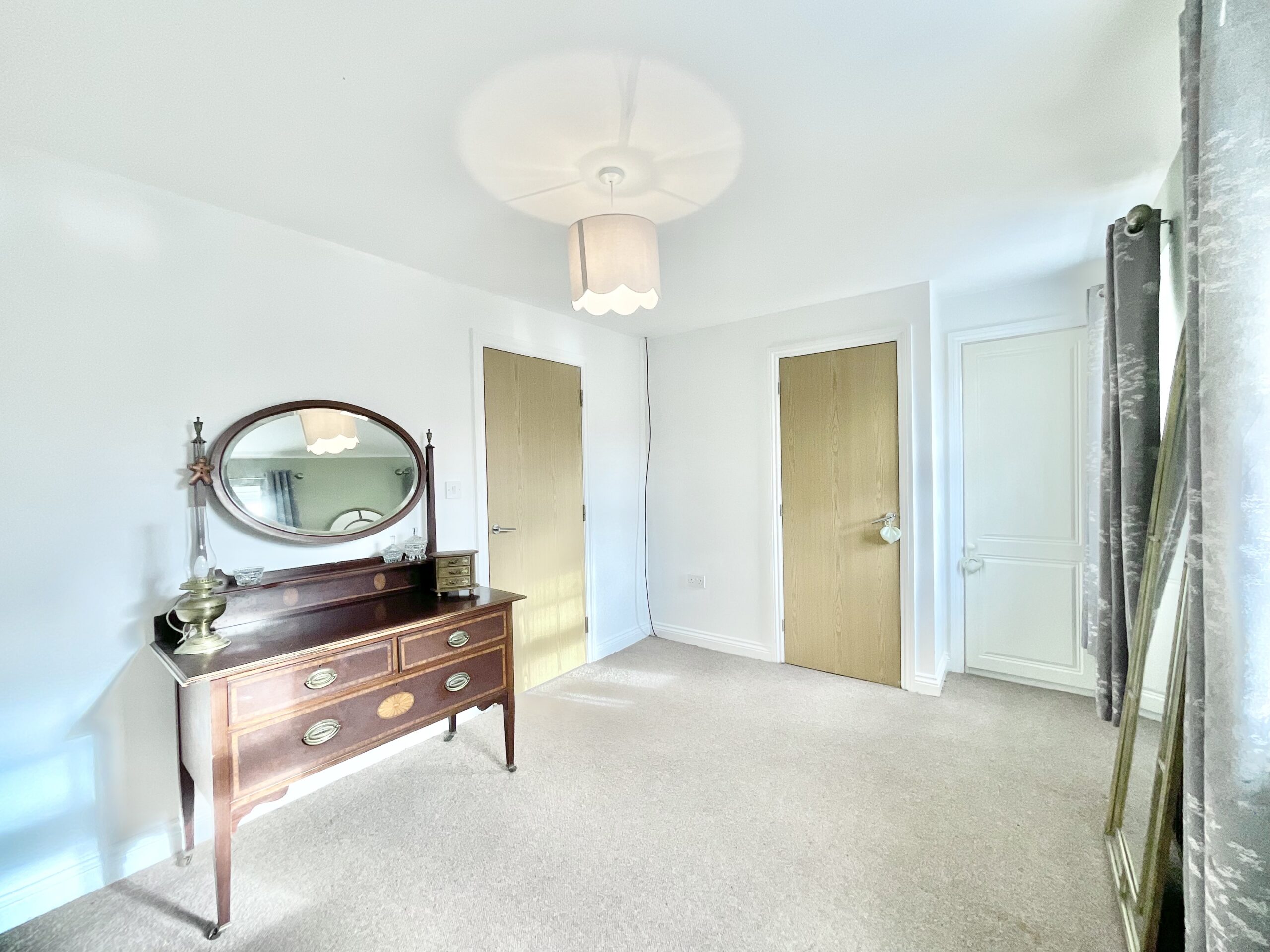 Climbing to the top of the bridge, the final chapter unfolds. The second floor offers space devoted to comfort and calm. The family bathroom features a sleek panel bath with shower combination, W/C, and pedestal wash hand basin, a bright and functional space for easy mornings. Two double bedrooms complete this level, each with built-in storage to keep everything neatly in place. One benefits from an ensuite shower room with W/C and pedestal wash hand basin, forming a peaceful haven tucked away above it all.