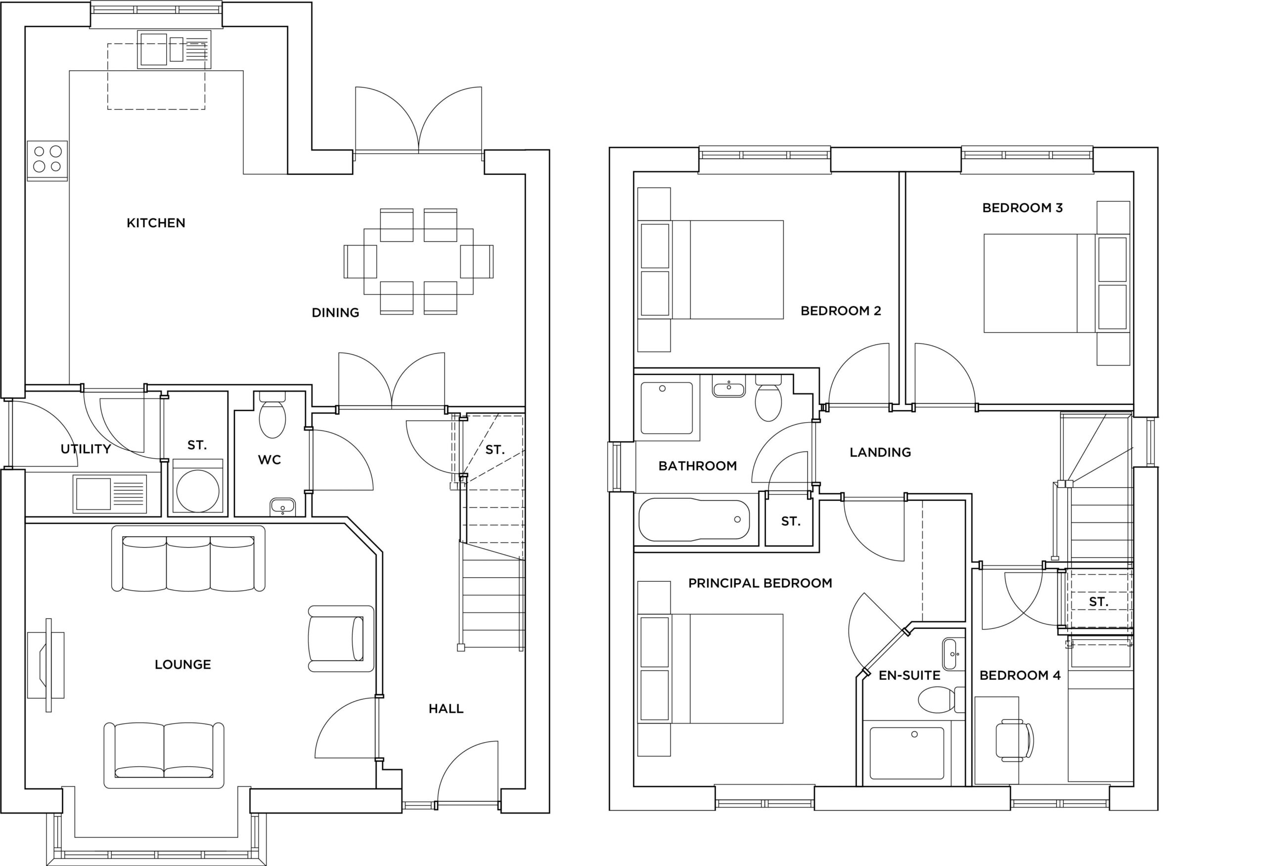 - Four bedrooms with en-suite to the principle bedroom with fabulous kitchen diner to the rear and large lounge to the front with utility room and guest WC nestled in between.