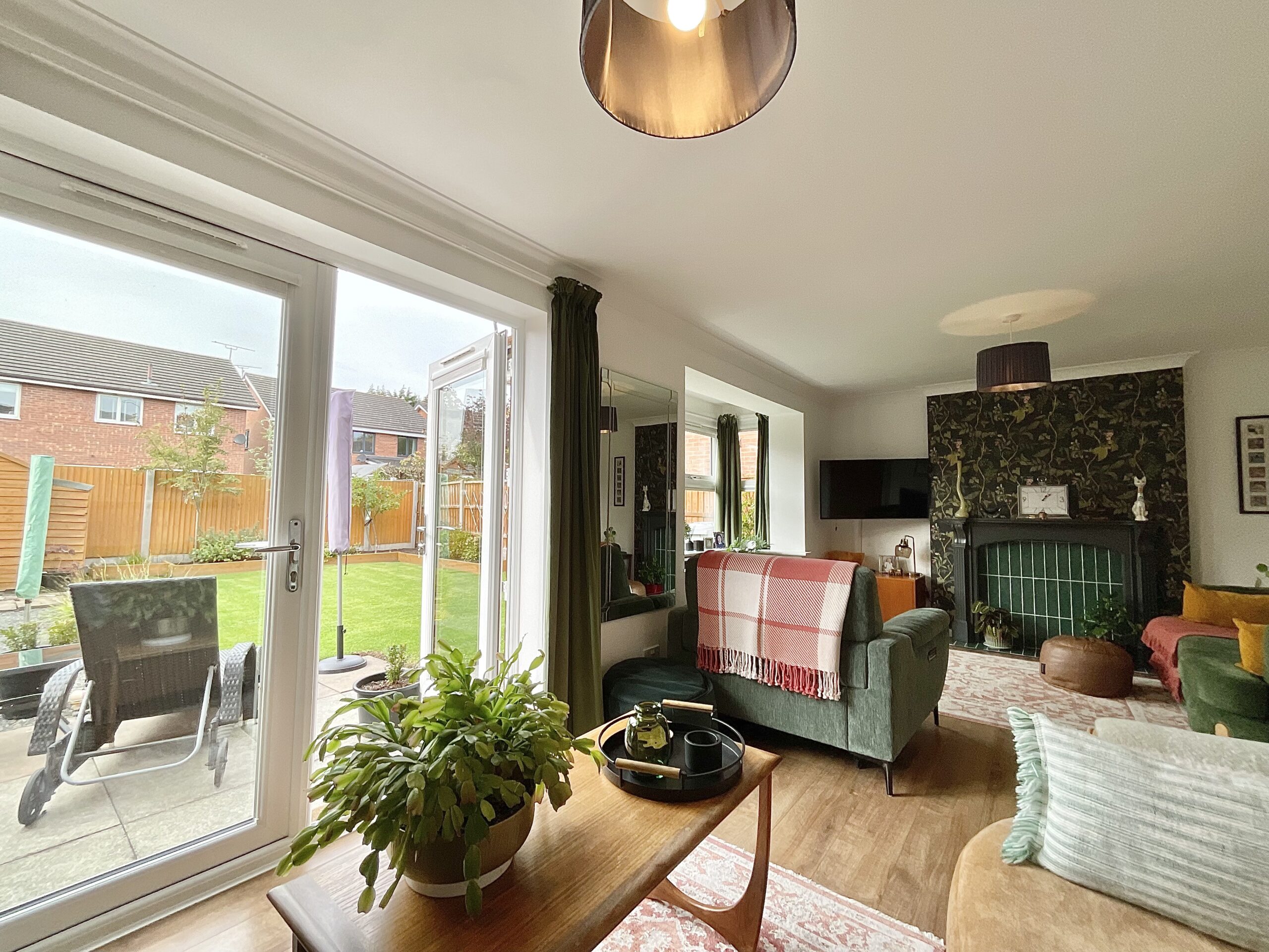The living room is a standout feature — a spacious and inviting area bathed in natural light from a beautiful bay window at the front and elegant French double doors at the rear. This dual-aspect room provides a warm and welcoming atmosphere, with plenty of room to accommodate both a cosy lounge and a generous dining area. Whether you’re hosting dinner parties or simply enjoying a quiet evening in, this space adapts to suit every occasion.
