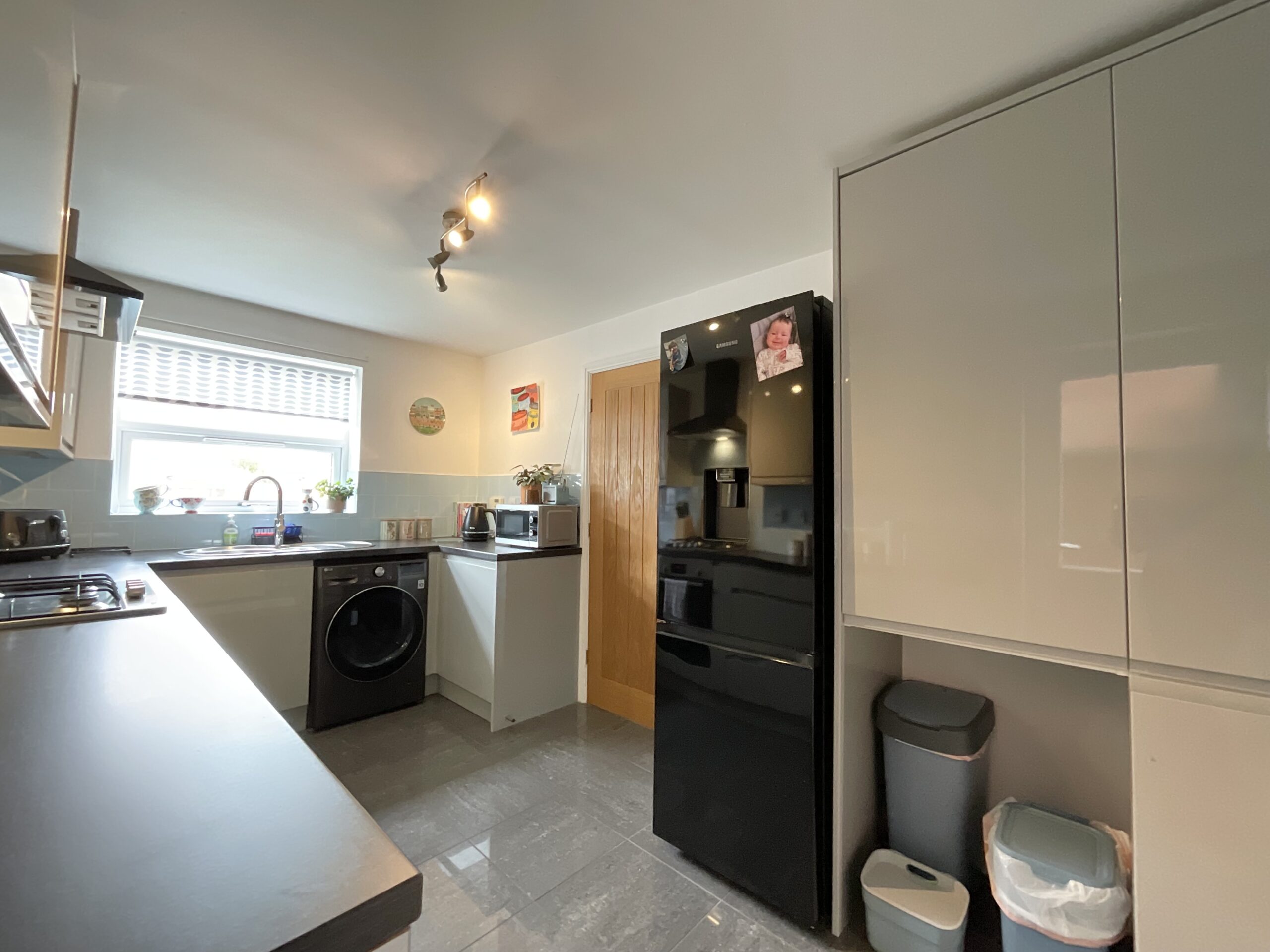 - Contemporary kitchen – Modern design with integrated oven and dishwasher, plus space for washing machine and fridge/freezer.