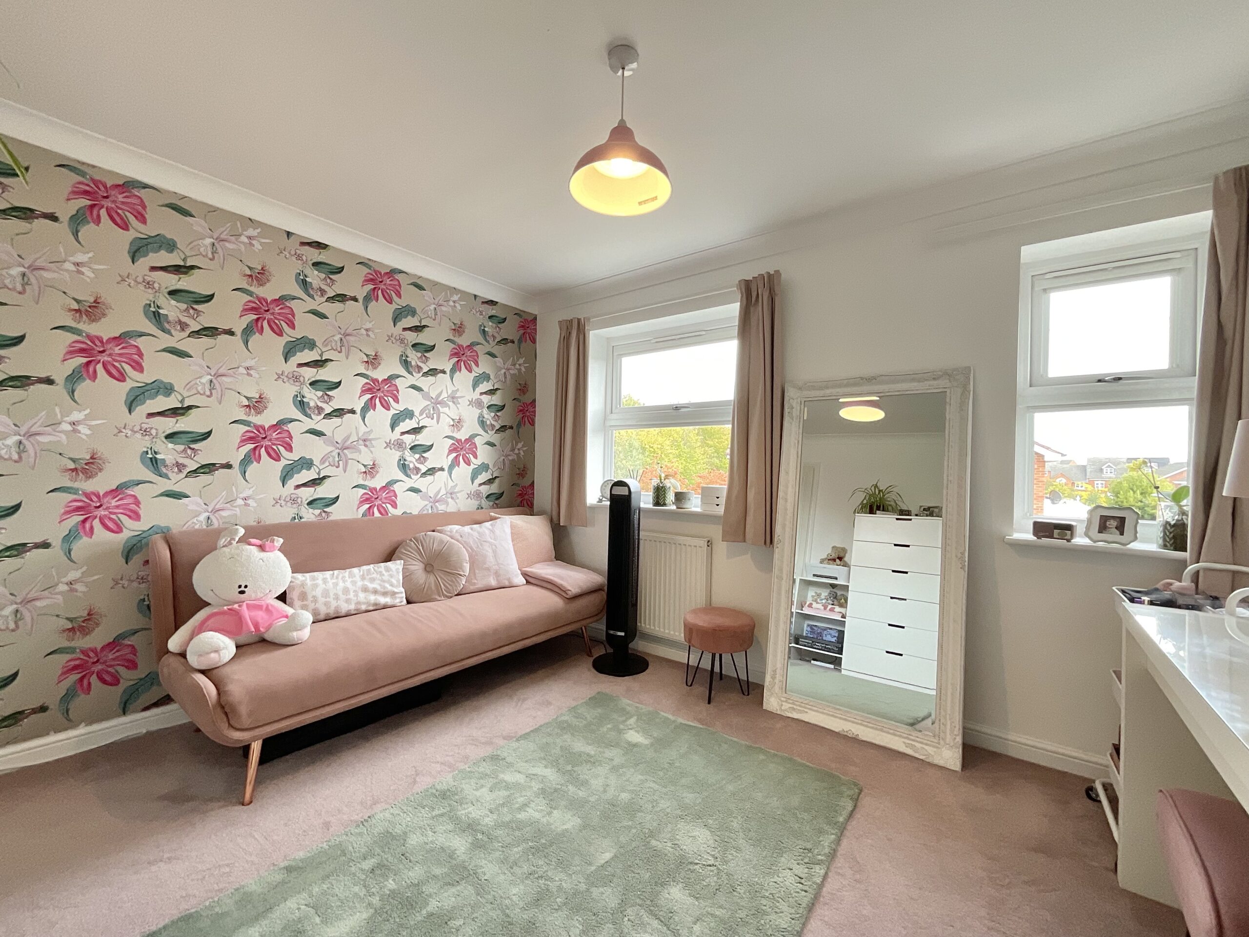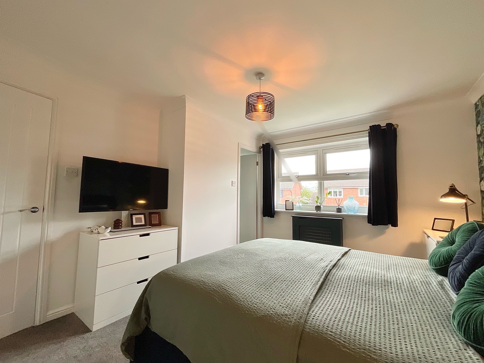 Bedroom two is another generously sized double, enhanced by two large windows overlooking the front of the property, filling the room with natural light. It also benefits from a built-in wardrobe, adding to the practicality and storage solutions this home offers.
