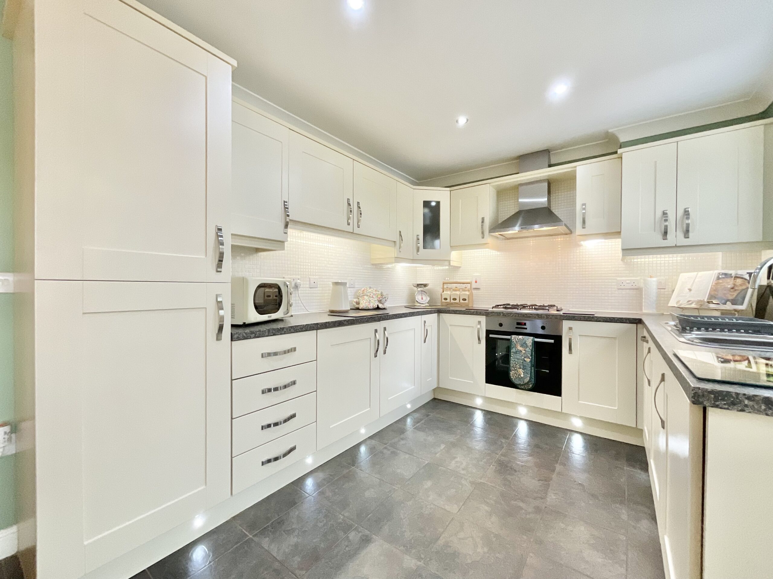 2. Well-Equipped Kitchen/Diner – Includes ample cabinet space, integrated appliances, and room for a dining table, flowing seamlessly into the conservatory.
