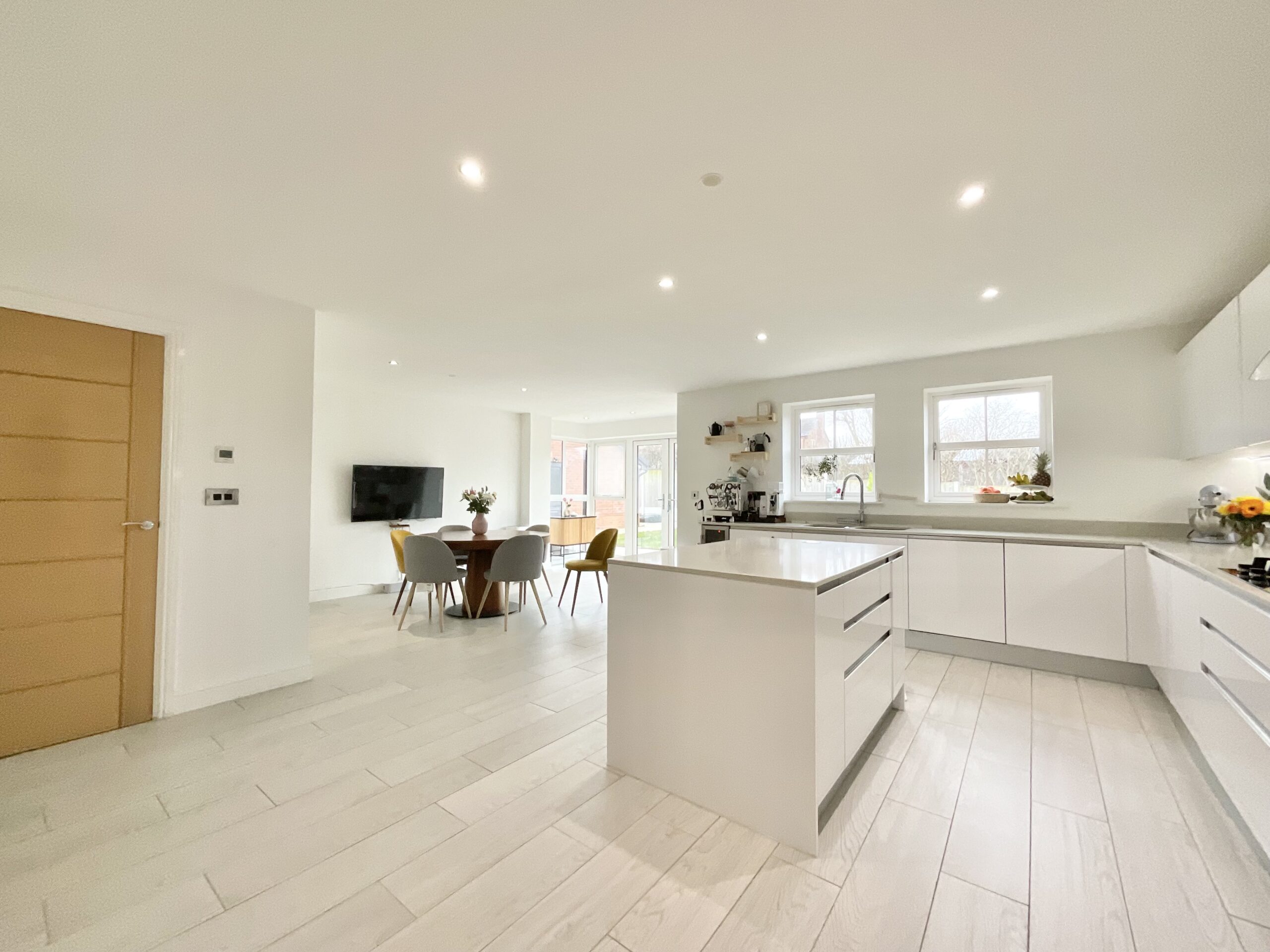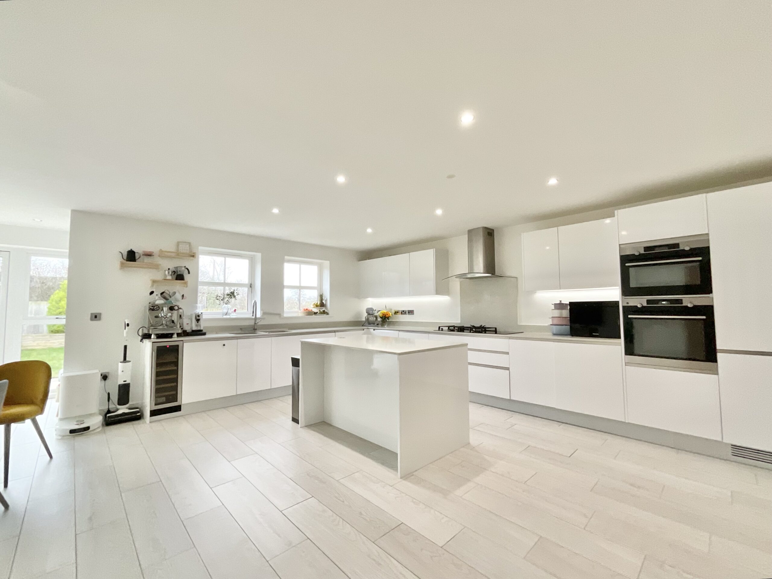 - Spacious open-plan kitchen/breakfast room, quartz worktops, drinks fridge, integrated appliances, induction & gas hob, and built-in Bluetooth speakers