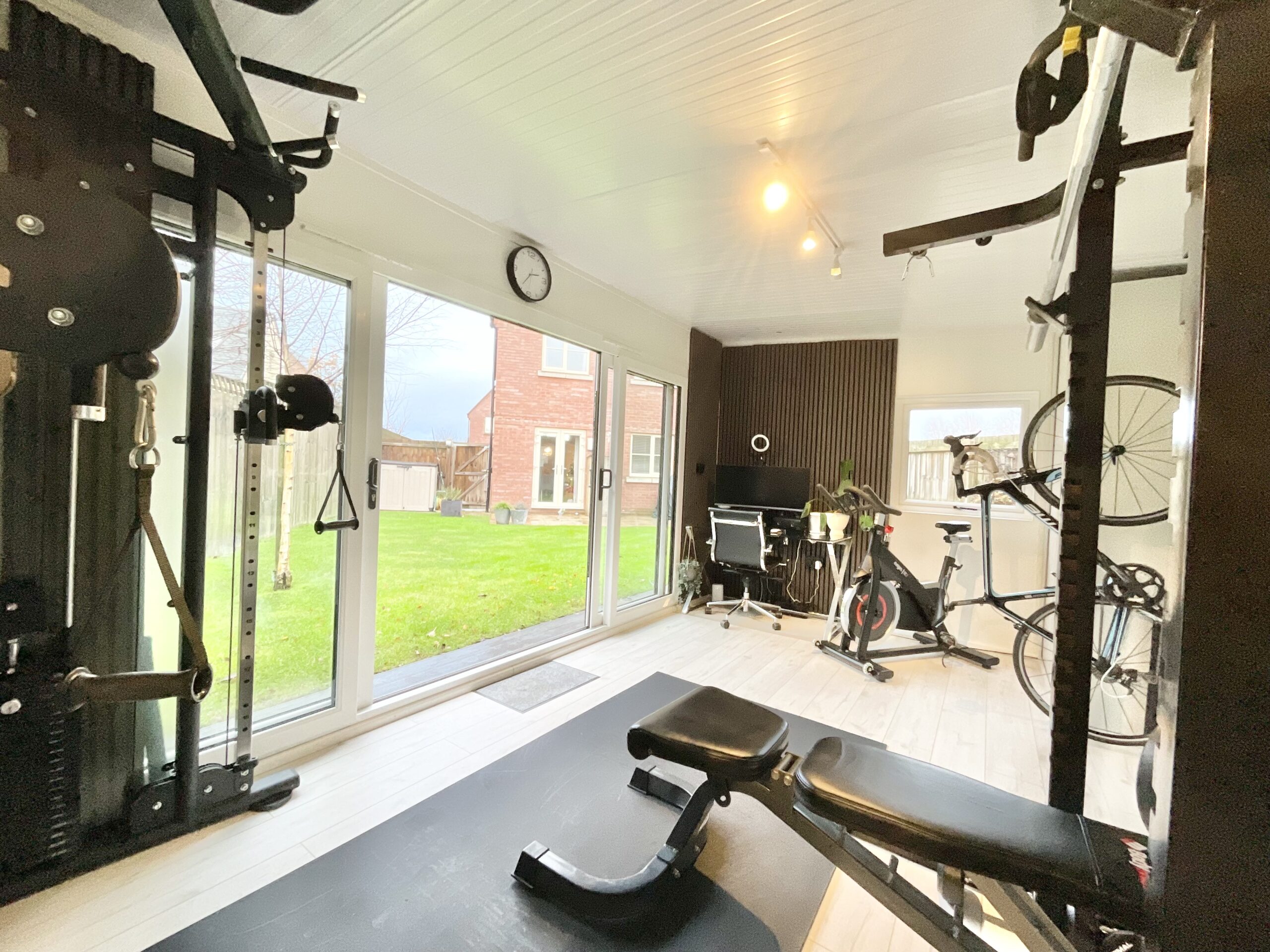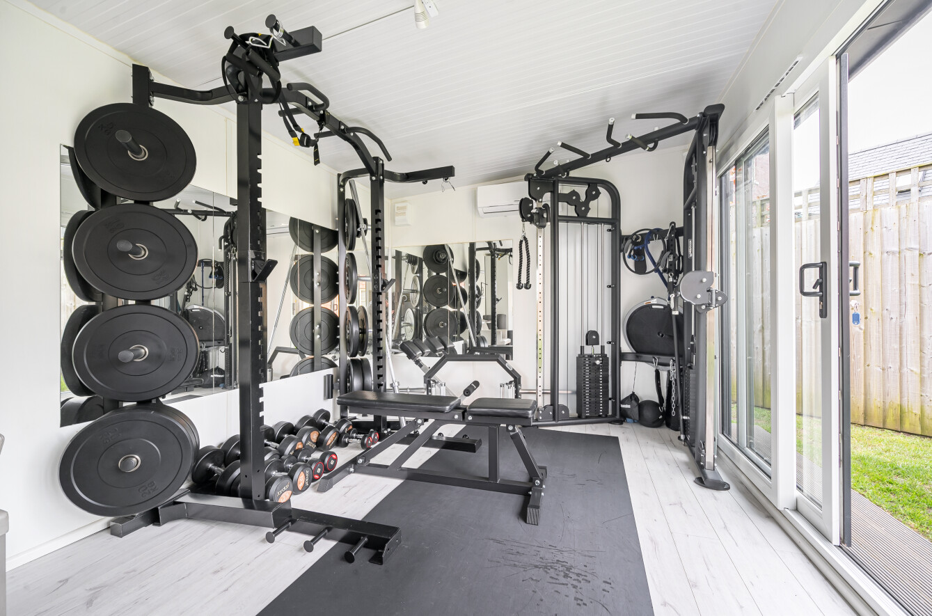 - Versatile insulated Gym Office with heating and air conditioning, ideal for a home office, gym or studio