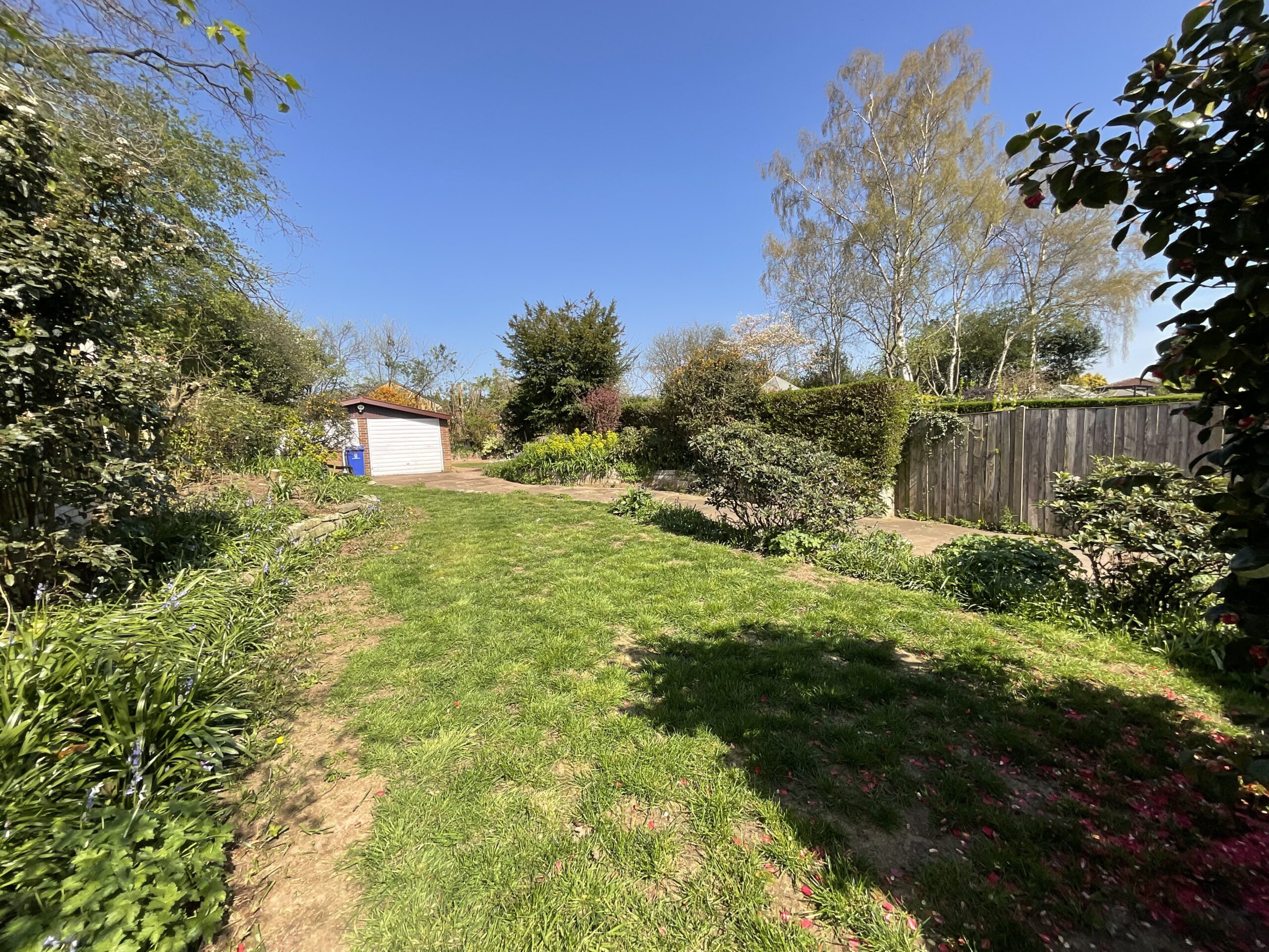 And now, the moment we’ve all been waiting for… the garden. Expansive and impressive in size, it’s an amazing spot bursting with potential. Laid mainly to lawn with a generous patio area, it’s perfect for summer barbecues, outdoor games, or simply unwinding with a morning coffee while soaking up the fresh air. There’s plenty of room for planting, creating zones for play, or even a home office pod if you fancy working al fresco. Adding to the practicality, there’s a double garage, ideal for storing all your needs, and with so much space there’s even the potential to extend or build, subject to planning permission (STPP). At the front, a neat lawn and paved driveway complete the picture, providing plenty of parking and a welcoming approach to this delightful home.