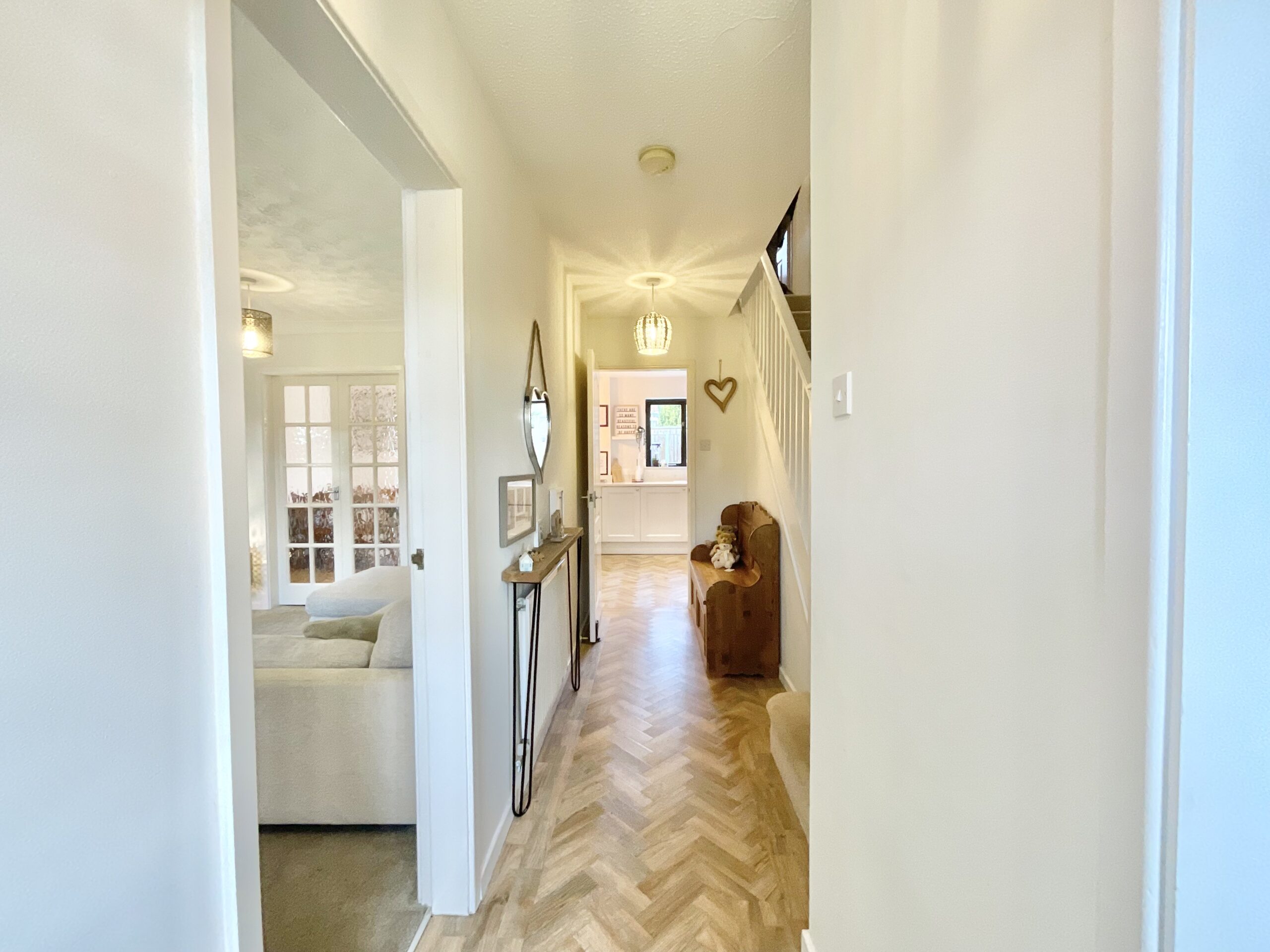 Internally the hall greets you, lined with beautiful parquet herringbone flooring that continues onwards to the heart of the home. A welcoming open-plan kitchen/dining room. The kitchen has been thoughtfully designed to offer charming shaker-style cabinetry, granite worktops, a Belfast sink, plus an integrated wine cooler, dishwasher, and four-burner gas hob. With an easy flow into the dining room with plenty of space to host friends and family. Off the kitchen you’ll find a separate utility room with additional space for appliances.