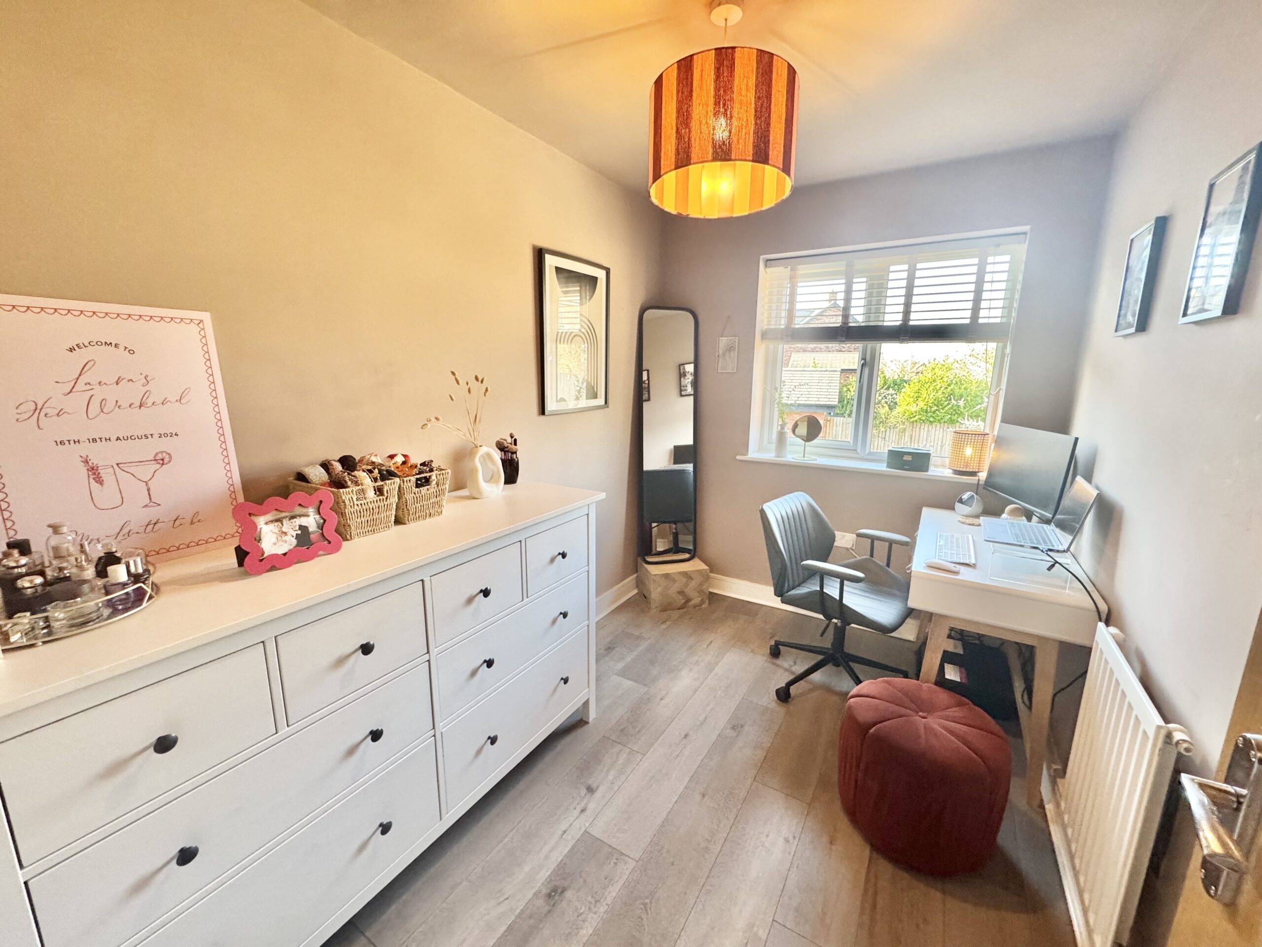 Bedroom three also enjoys views over the garden and is finished with laminate flooring. This versatile room works equally well as a single bedroom, nursery, or home office — depending on whether you’re growing a family or just trying to avoid working at the kitchen table.