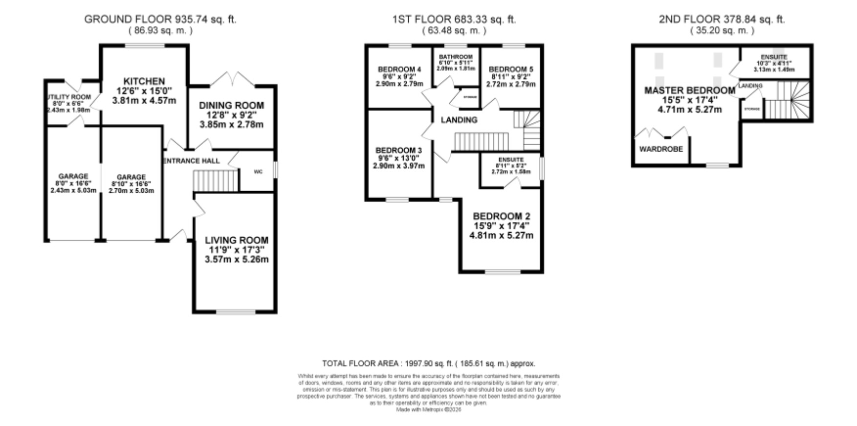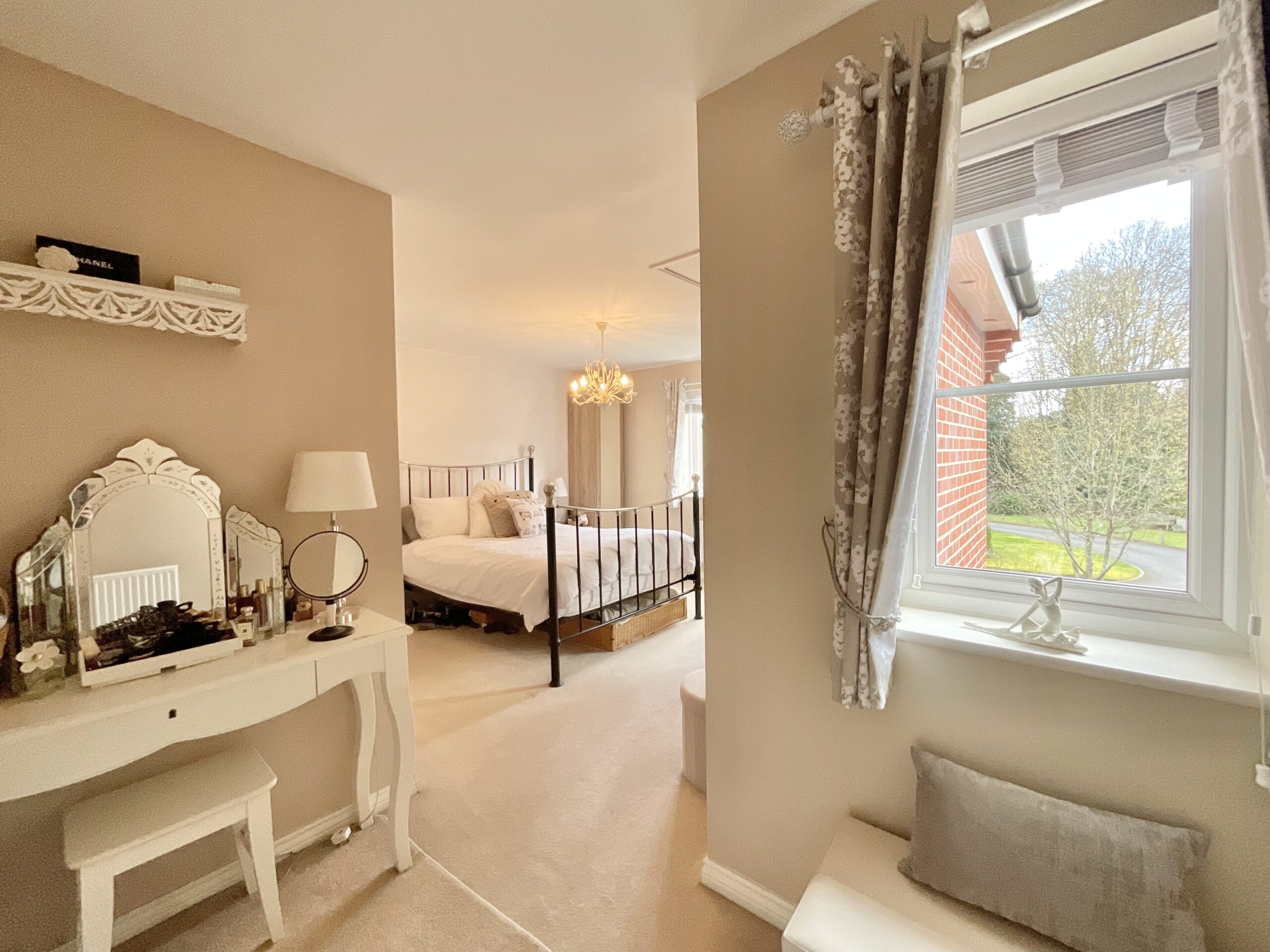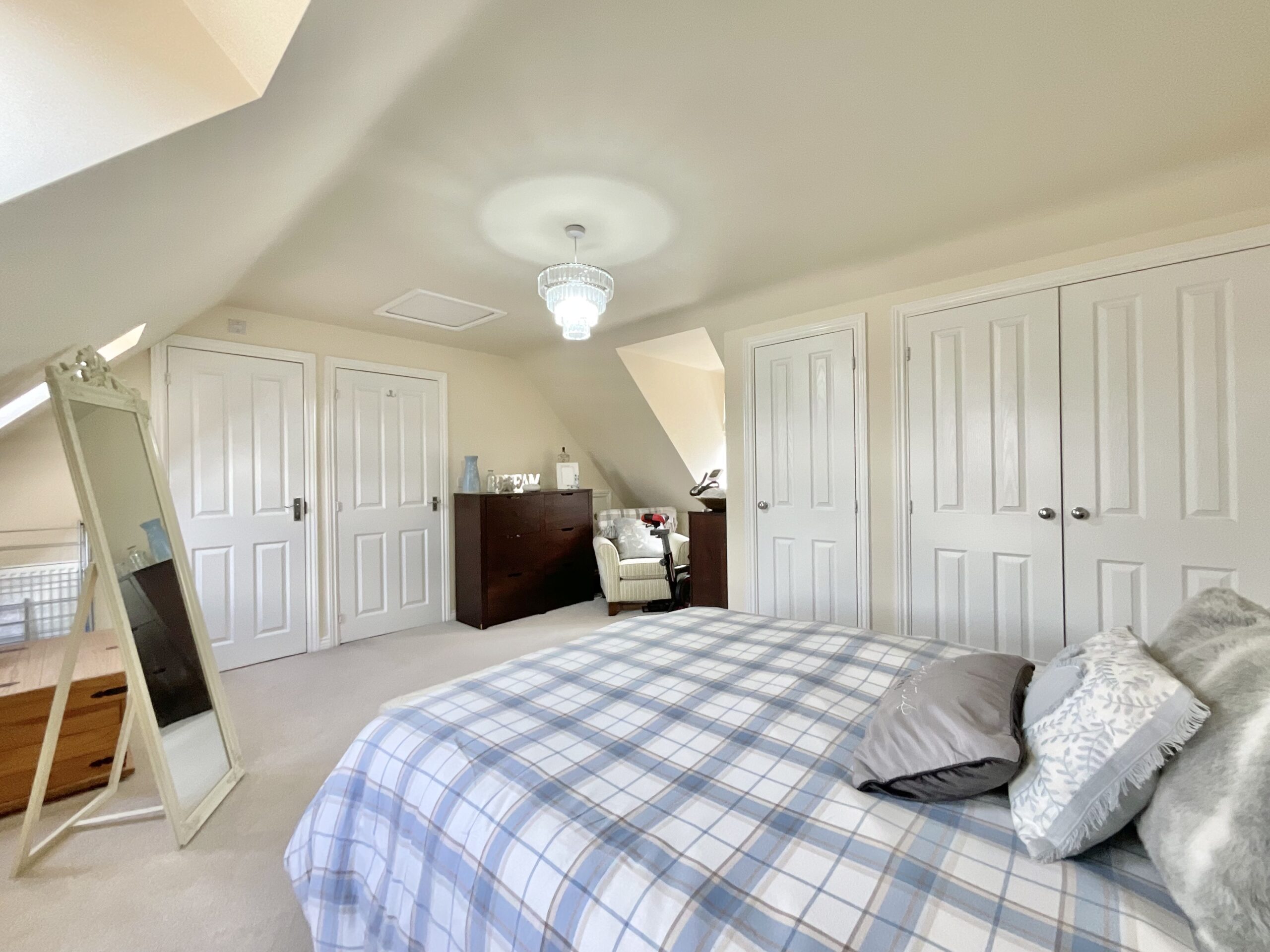 3. Five double bedrooms including luxurious master with dressing area and en suite, plus top-floor suite with fitted wardrobes and en suite shower room.