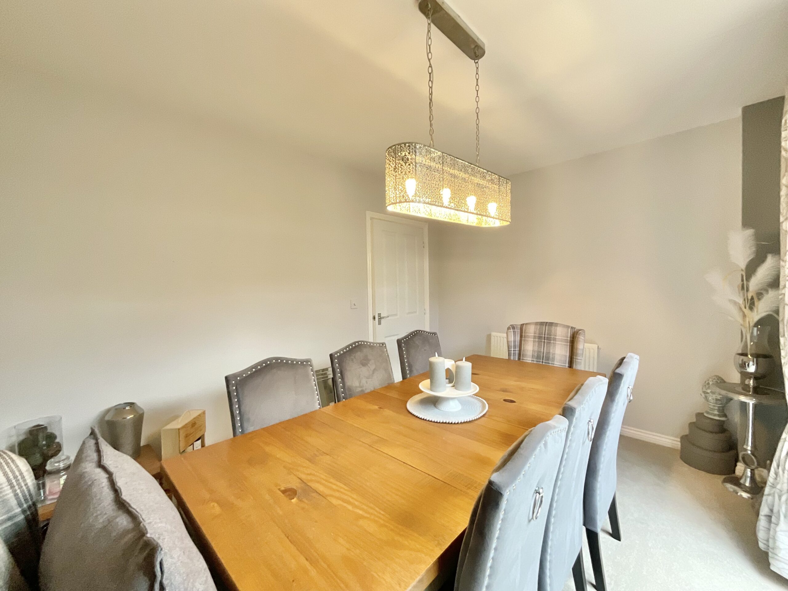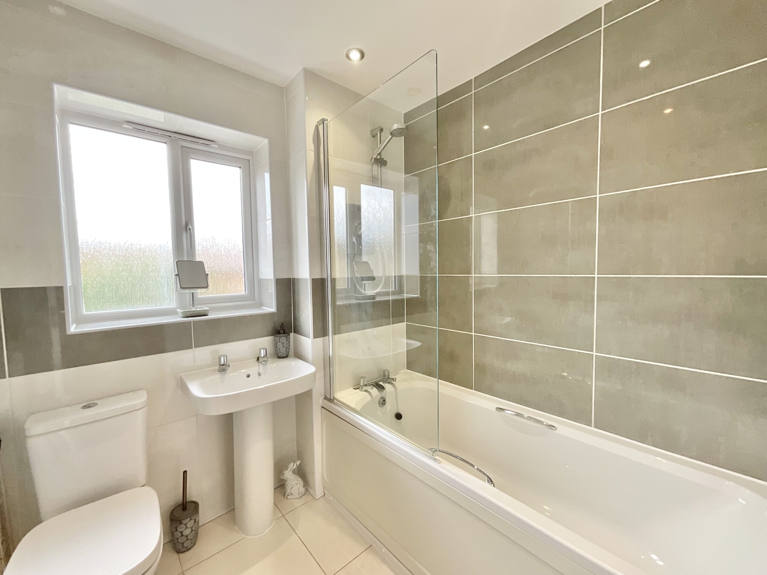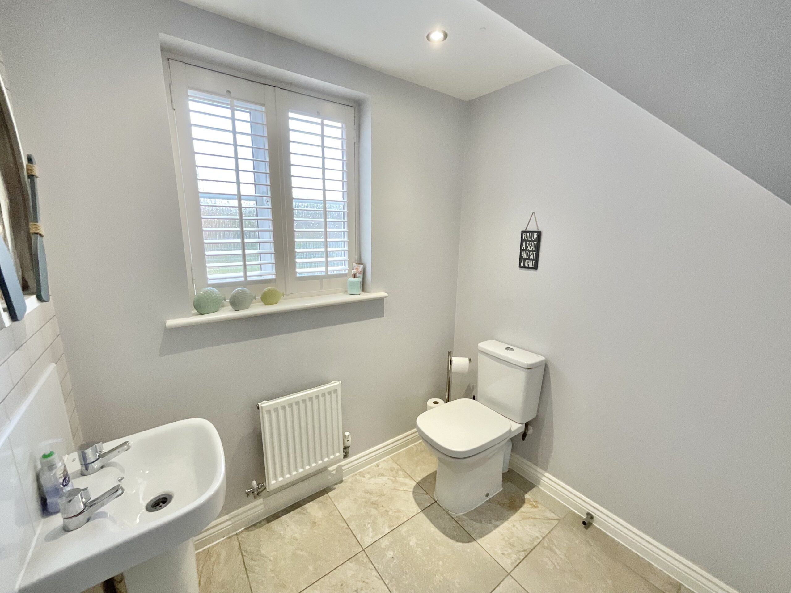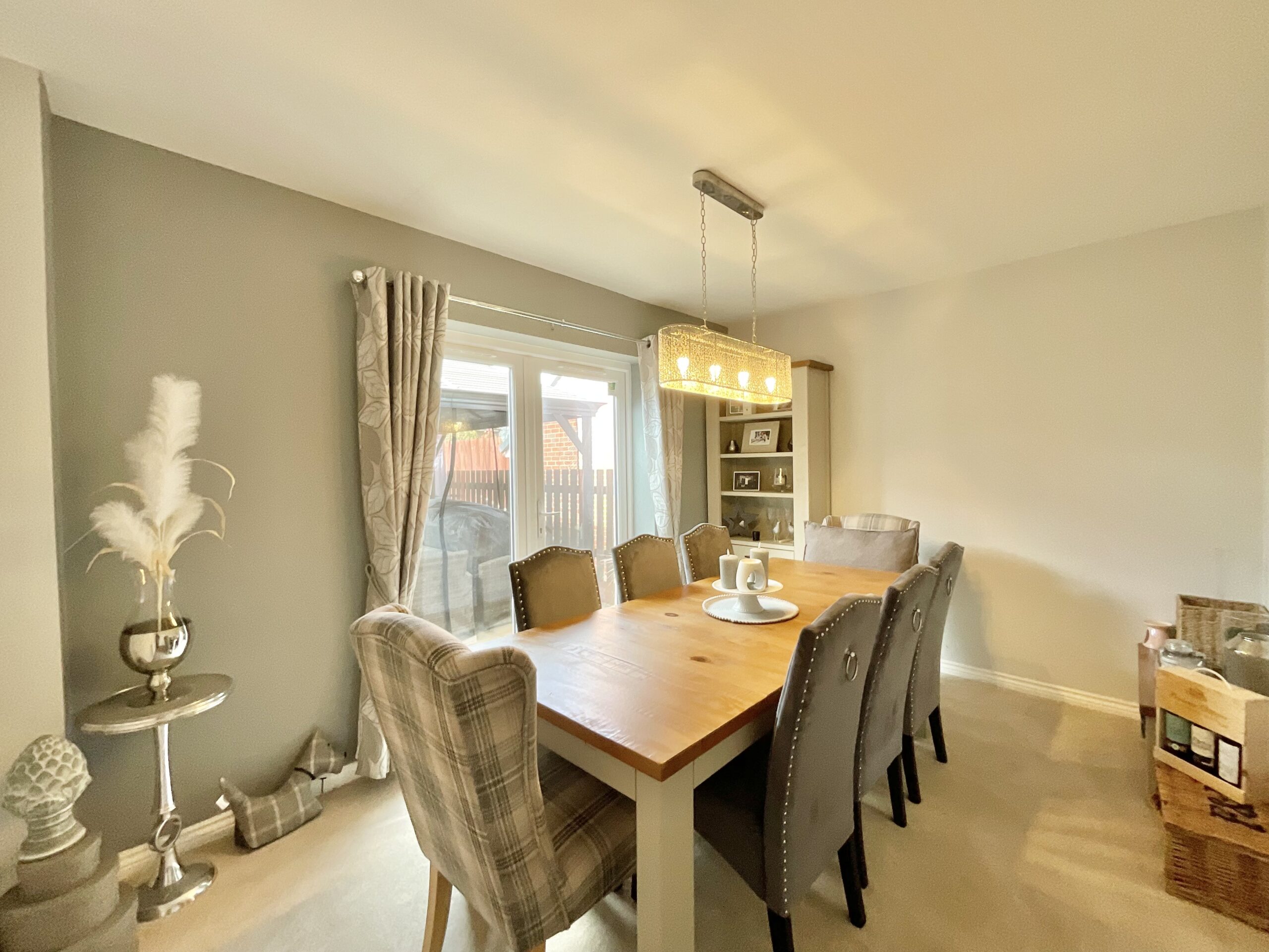 Step inside to a generous entrance hall that welcomes you to explore further. The living room is a warm and spacious area for the whole family to enjoy, while the dining room with glazed French doors offers a space for entertaining friends and family. The kitchen is set in a practical L-shape with neutral shaker-style cabinetry, integrated appliances, and room for breakfast in the morning. Downstairs in this home there is also a separate utility room with a beautiful stable door leading to the garden and a handy W/C.