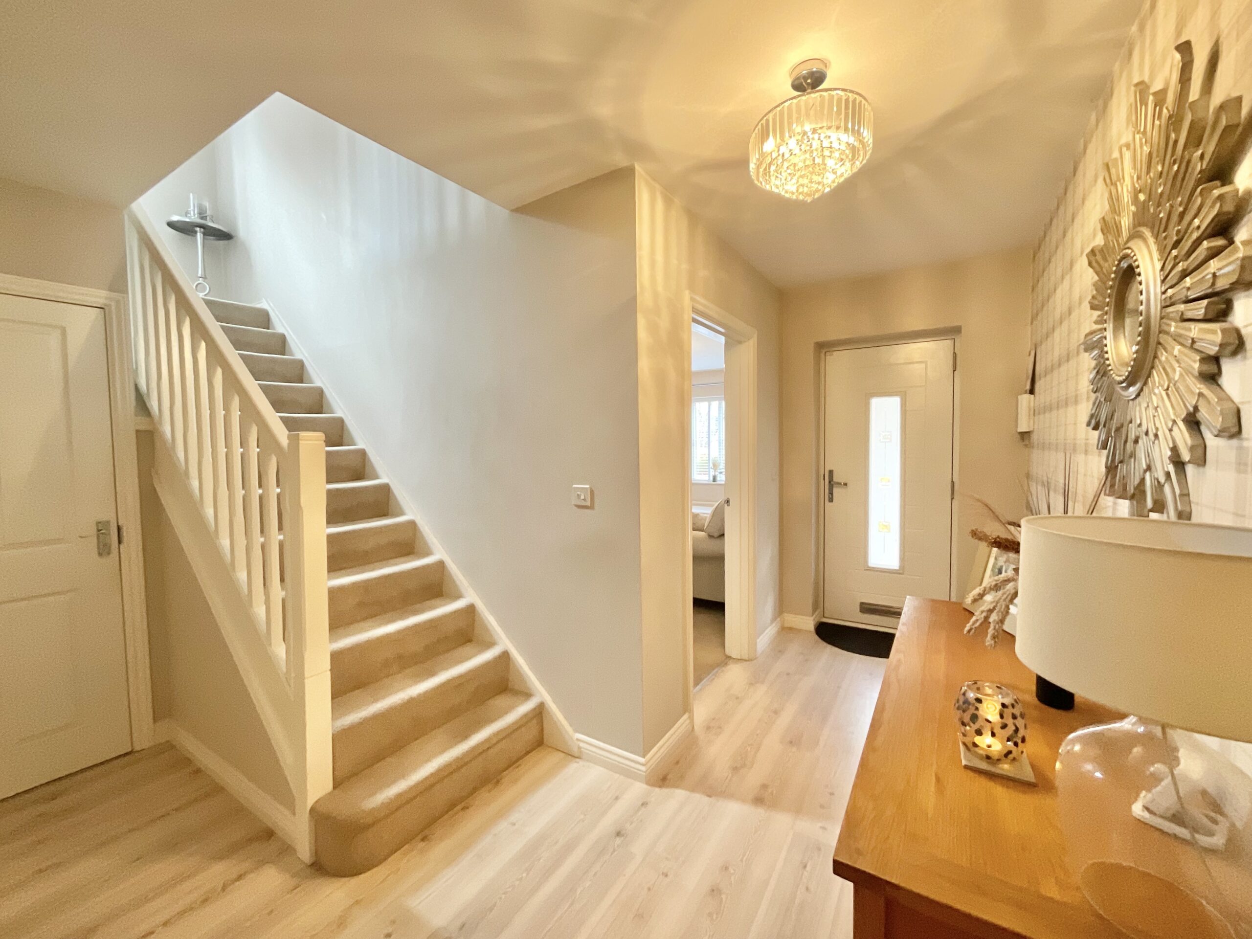 Spacious five-bed home in exclusive Rowley Park. Landscaped garden with outdoor bar, three bathrooms, modern kitchen, living room and dining room, and excellent transport links. Close to Stafford town centre and top schools.