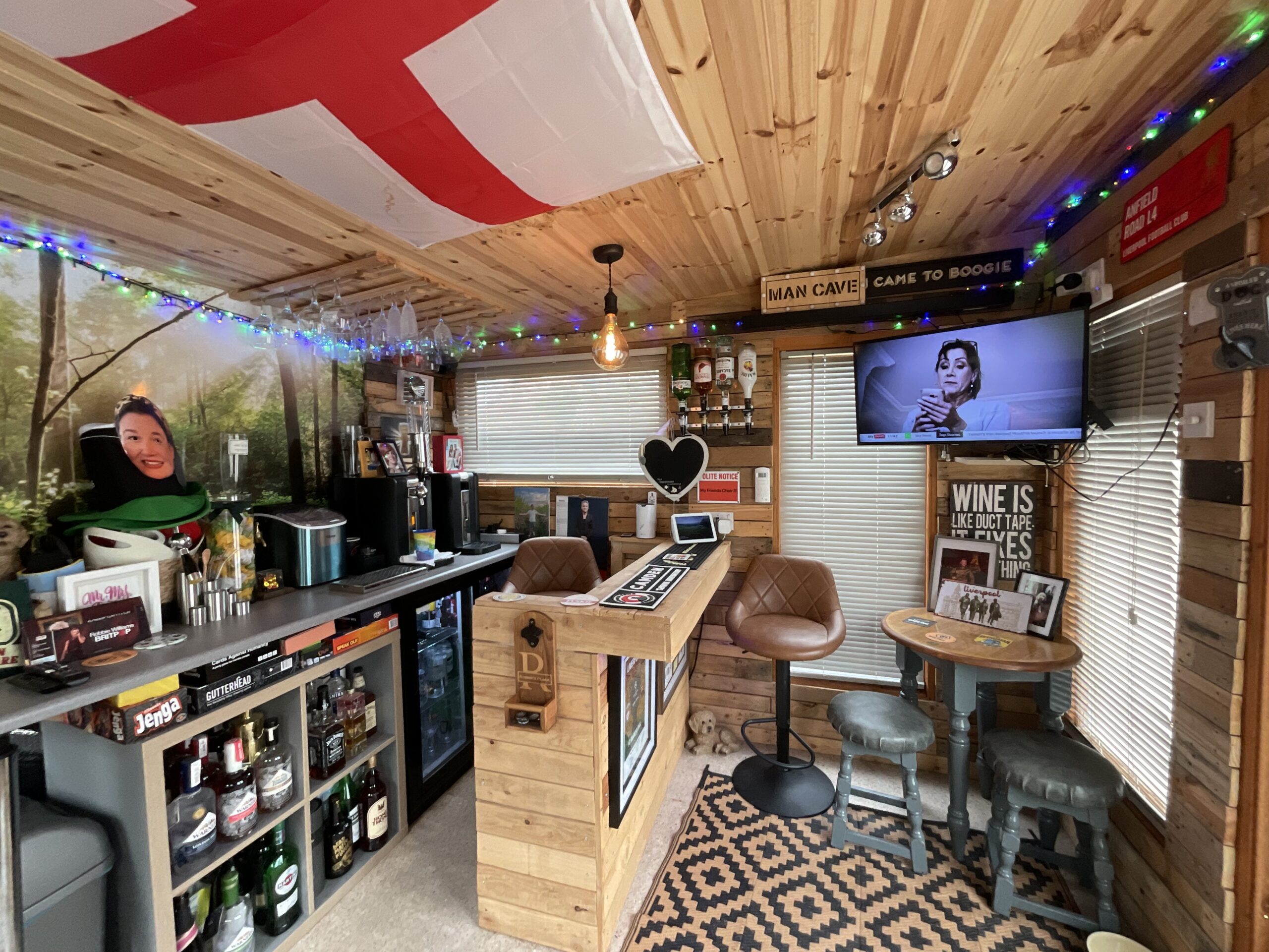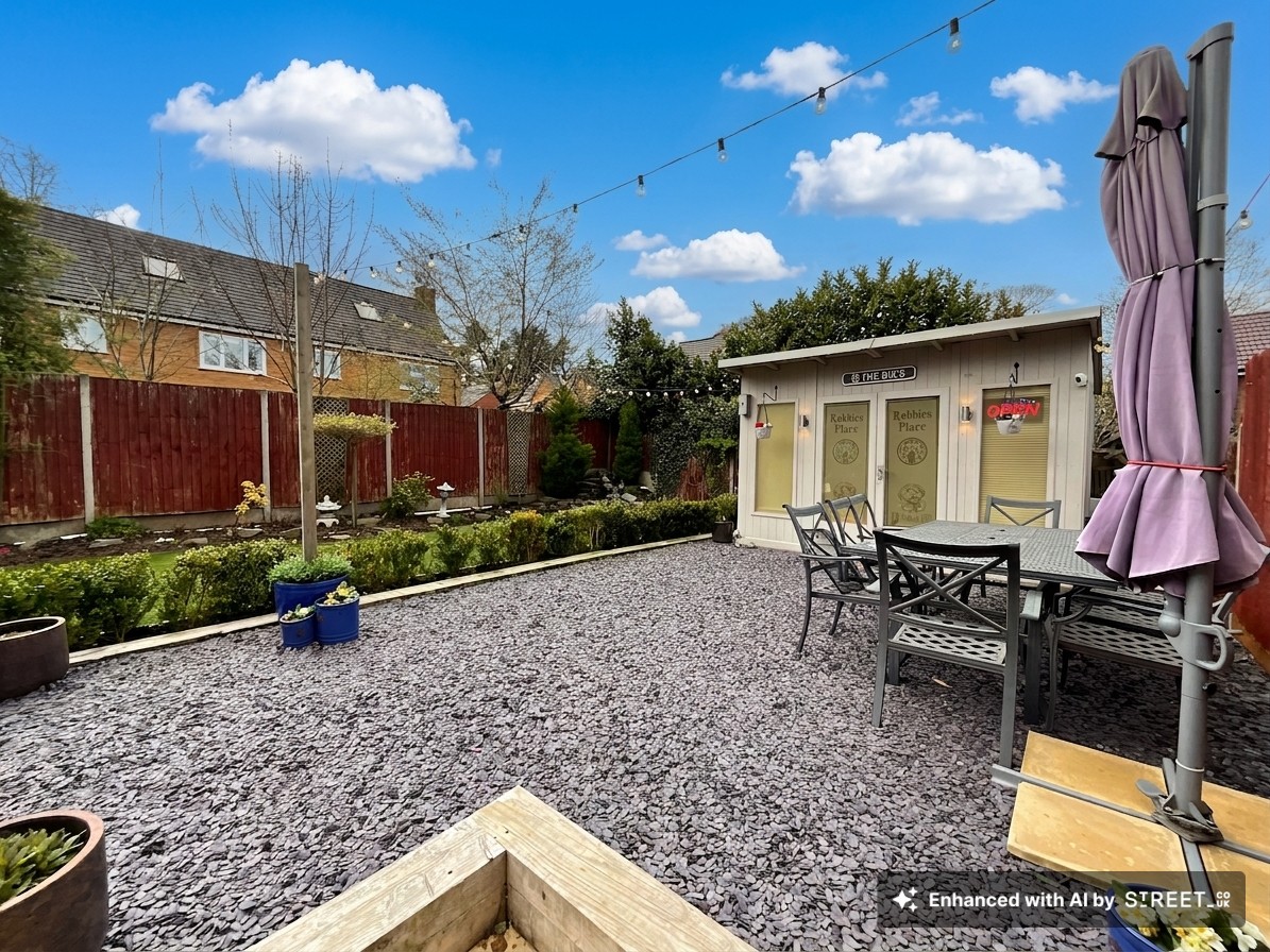 Outside boasts a beautifully landscaped West-facing rear garden, complete with a patio and slate seating spaces, an artificial grass lawn, lovely shrubbery, a waterfall, garden lighting and the star of the show, a fully fitted outdoor bar that is perfect for entertaining friends and family for all occasions.