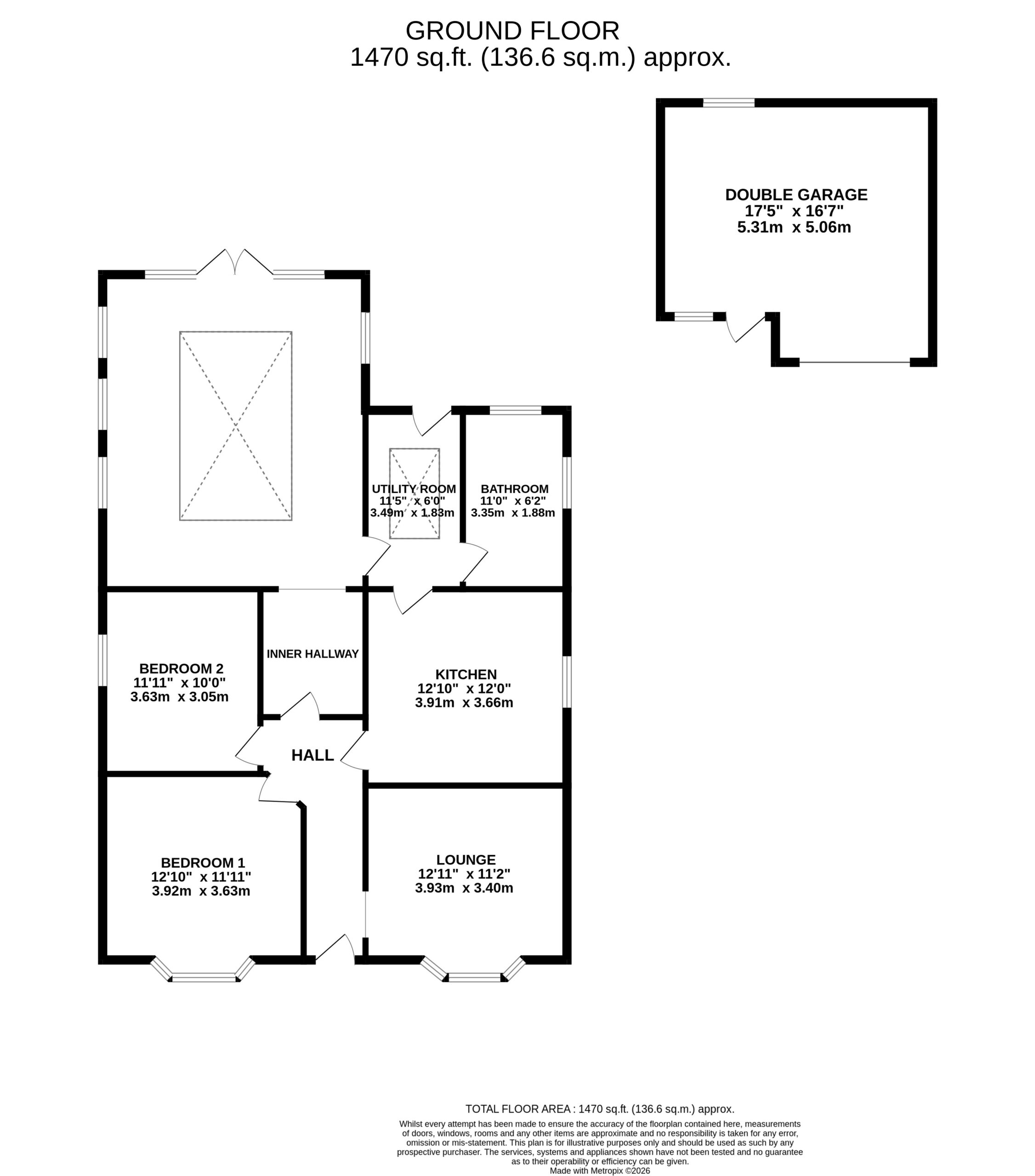 A charming entrance hallway welcomes you into the property, showcasing original feature beams dating back approximately 100 years, offering a wonderful sense of history and character. The bungalow offers two spacious double bedrooms, each enhanced by attractive feature fireplaces.