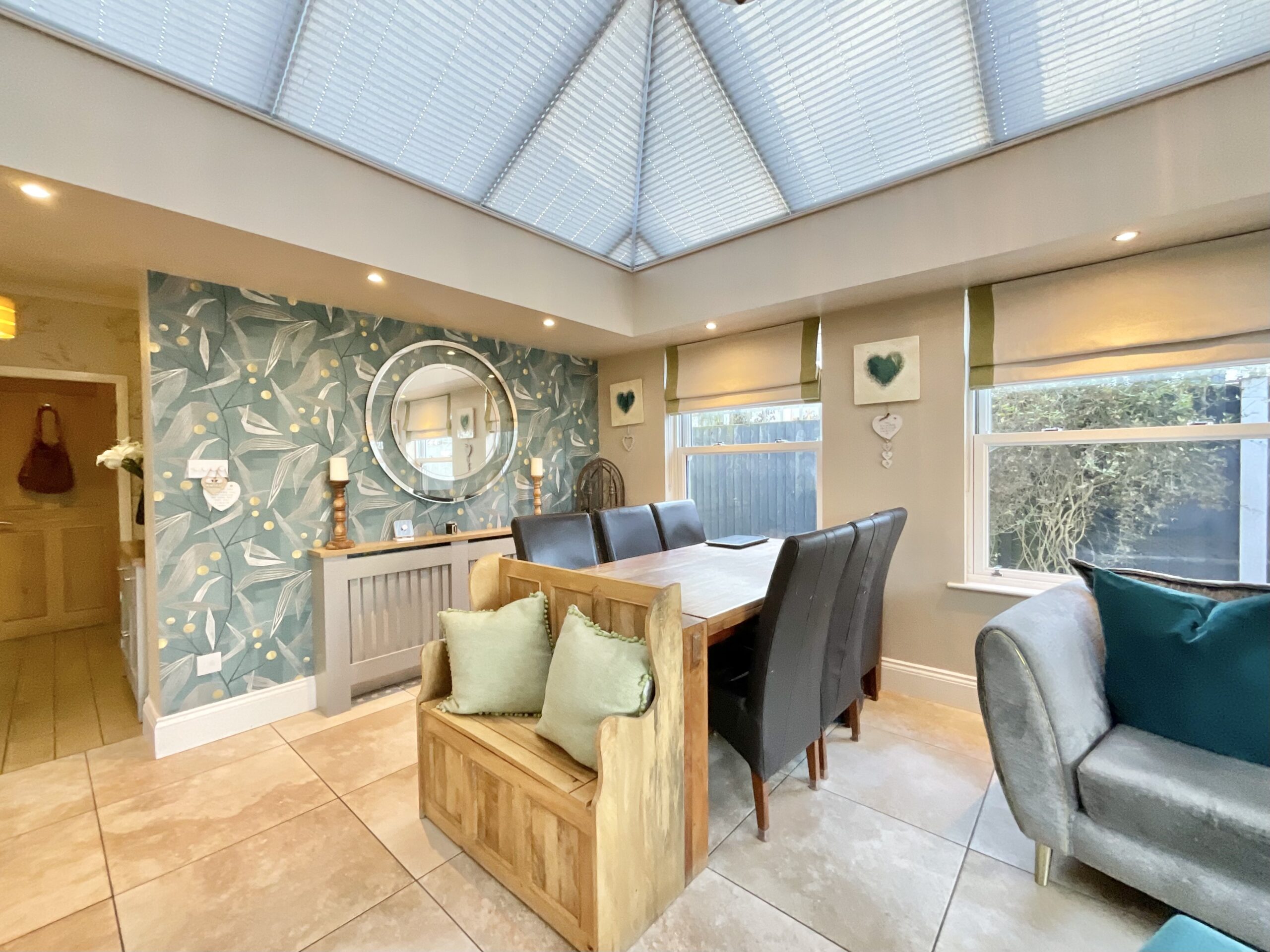 Thoughtfully extended by the current owners, the home’s standout feature is the impressive orangery, a stunning addition with a large skylight that floods the space with natural light. Overlooking the garden, this elegant and versatile room has become the heart of the home, ideal for both relaxed family living and entertaining.