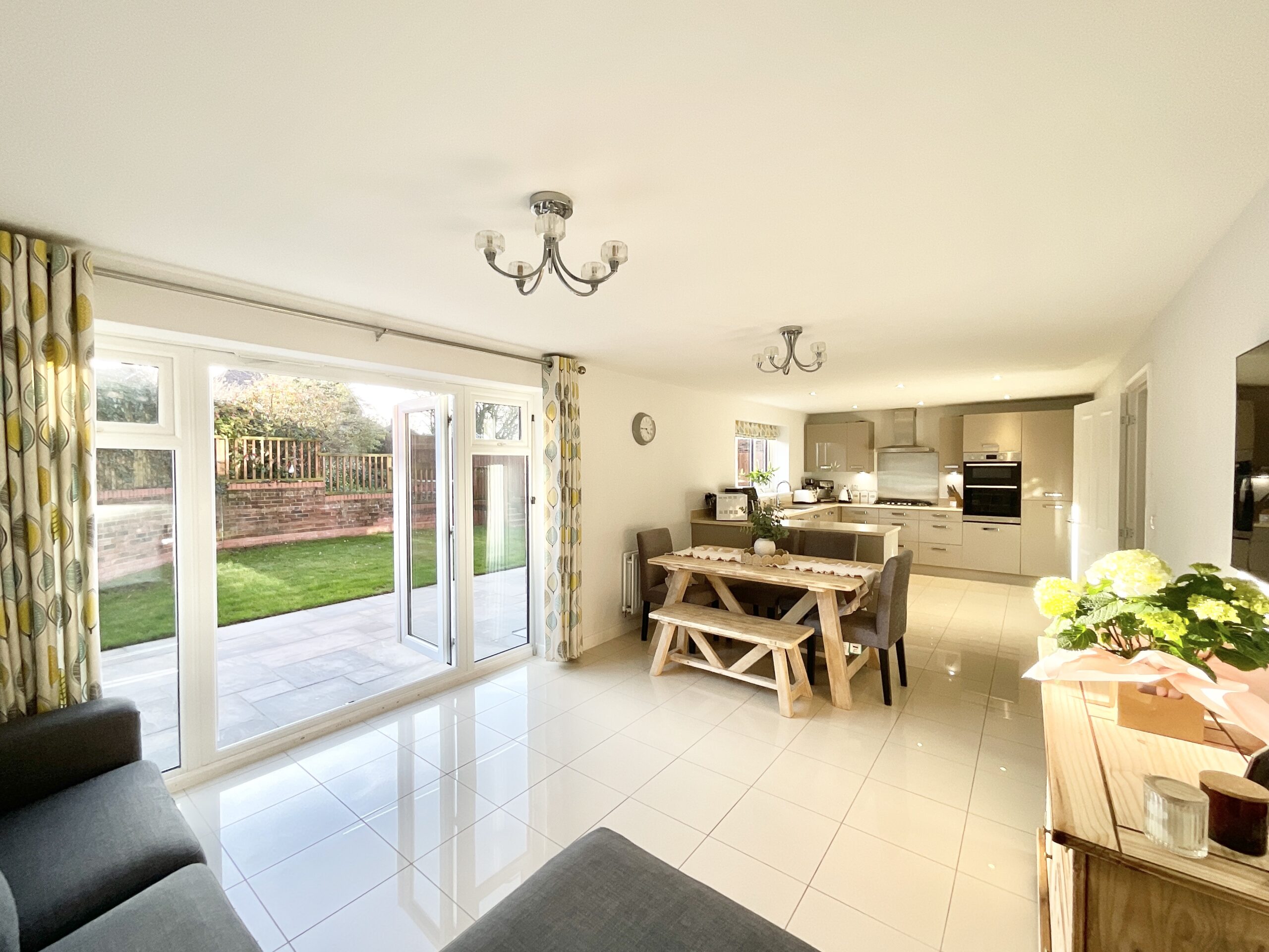 Modern five bedroom detached home with bright living spaces, luxury kitchen, private garden, two en-suites and family bathroom, home office, and excellent location near schools and amenities.