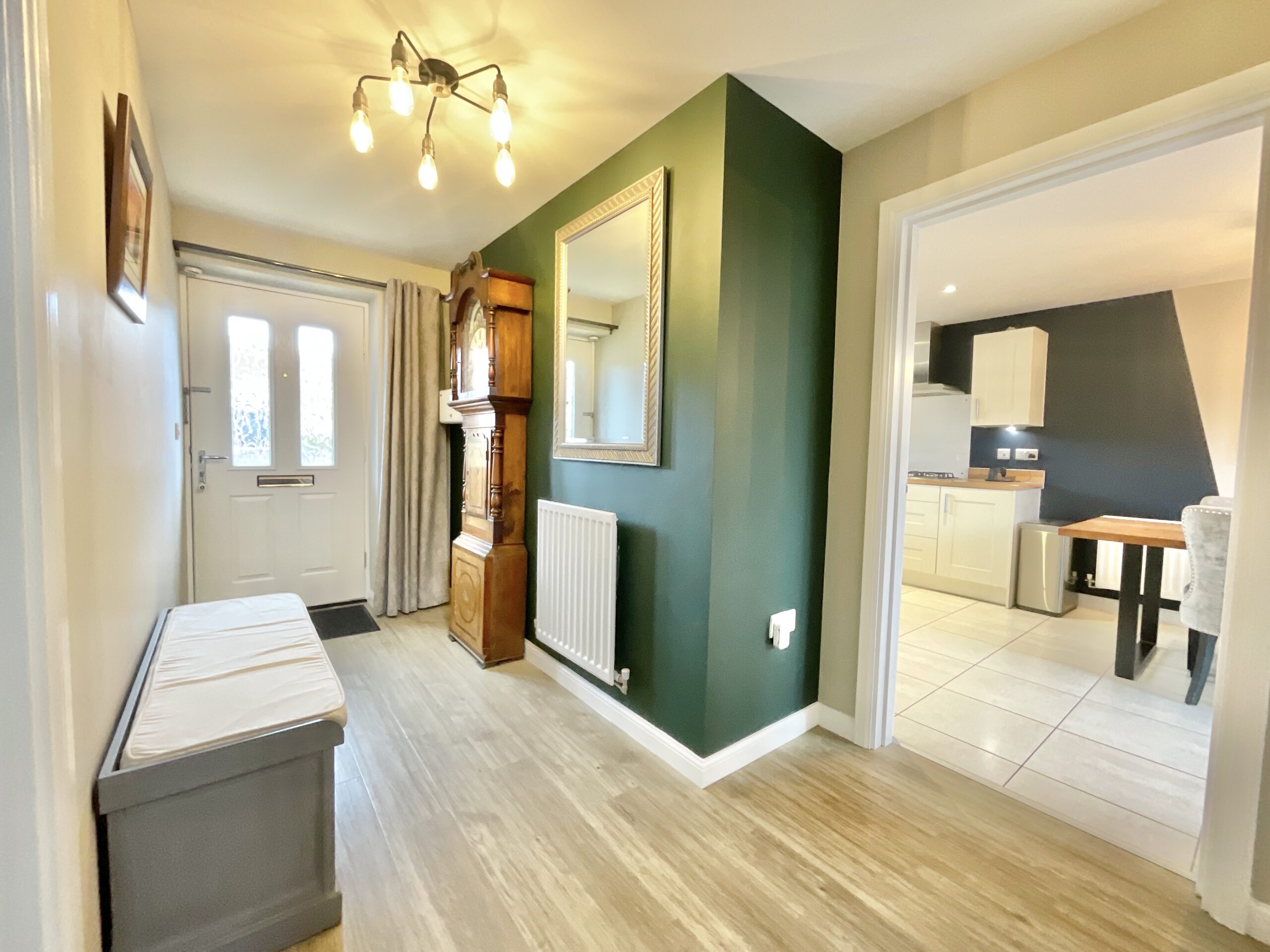 The entrance hallway greets you with the first impression, a generous space to hang your coats up and remove muddy shoes and directly in front of you you'll find the guest W.C. From this central point of the house, you have two doors either side, the one on the left takes you through to the kitchen/diner which is an impressive space that provides the perfect flow from cooking, entertaining and enjoying the private rear garden. The kitchen is fitted with matching wall and base units and integrated appliances which include dishwasher, double ovens, hob, fridge and freezer and over to the right there's a large space for a dining table fit for banquet together with French doors offering you out to the beautiful, maintained garden. On the opposite side of the hallway, you enter the lounge which is once again a magnificent sized room still offering a very cosy feel with French doors leading out to the rear garden and patio.