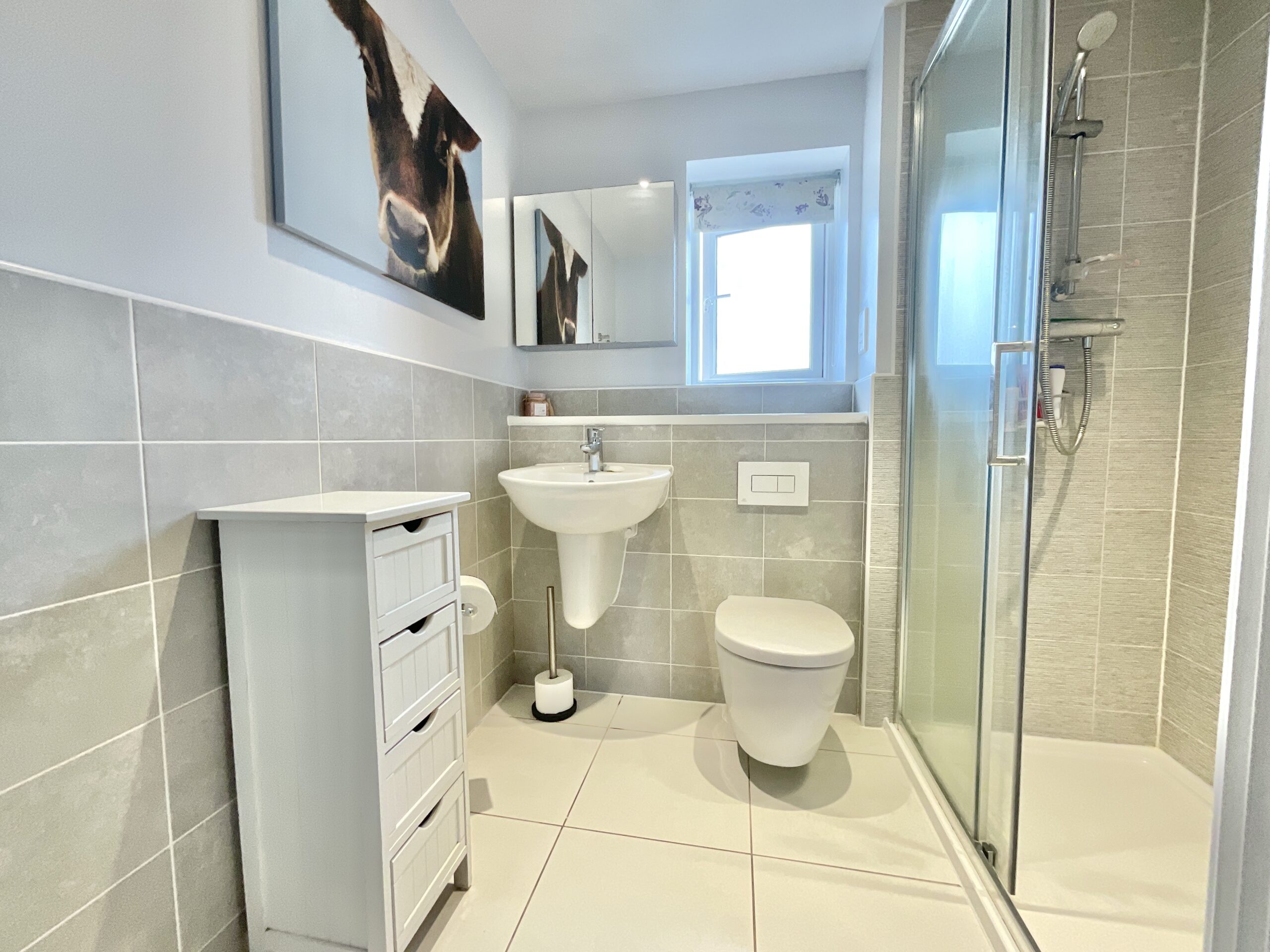Up the winding staircase leading to the landing, you'll find an airing cupboard on your right and next door the family bathroom which is beautifully appointed with bath, shower over, sink and W.C. The main bedroom is of a generous size with some fitted wardrobes and a door leading into the en-suite which comprises shower enclosure, sink, W.C and heated towel rail making this a peaceful haven to relax and unwind after a long day. There are two further double bedrooms and a good sized single too which completes the first floor, so we'll take you outside to discover what else this wonderful home has to offer.