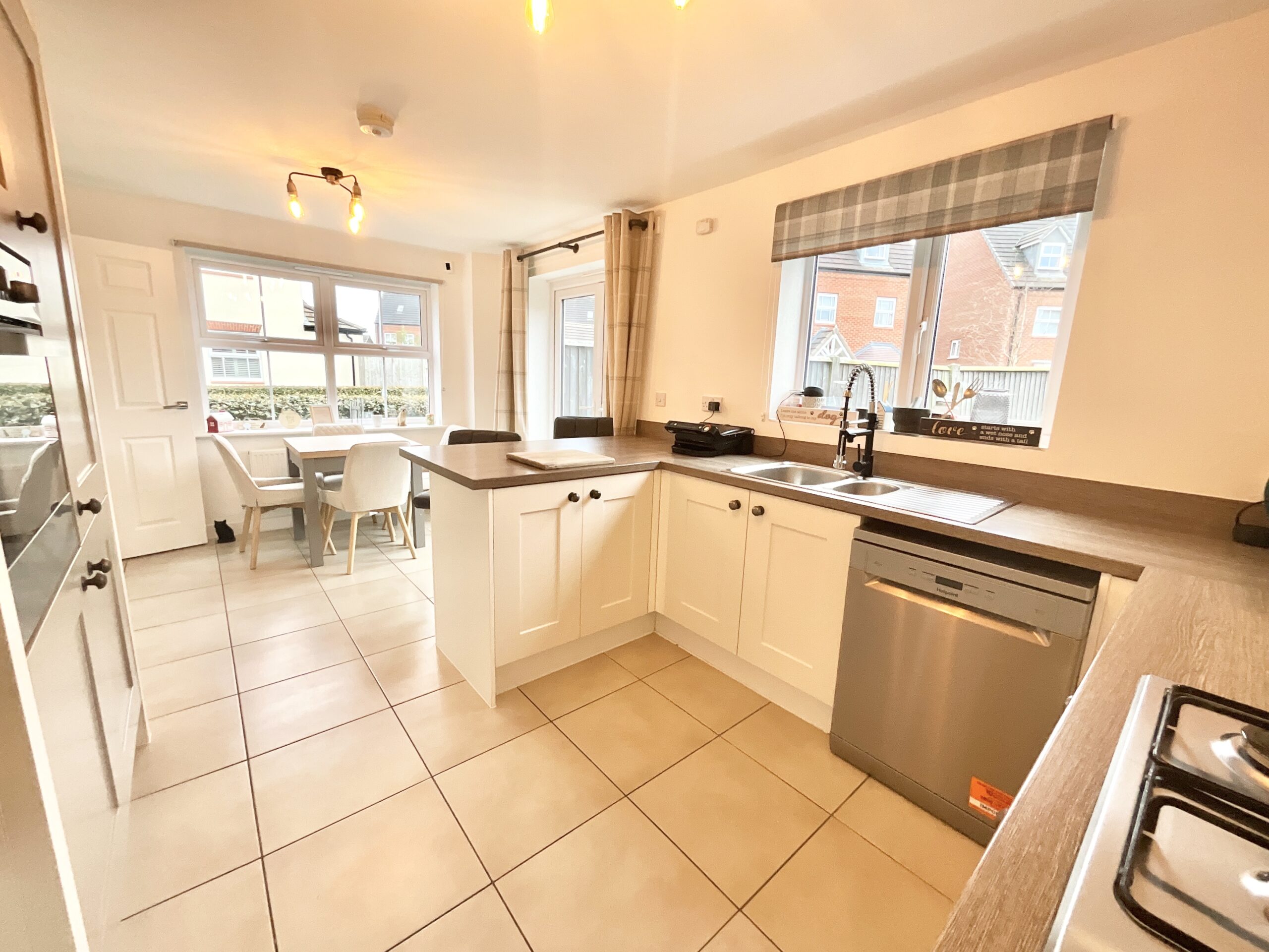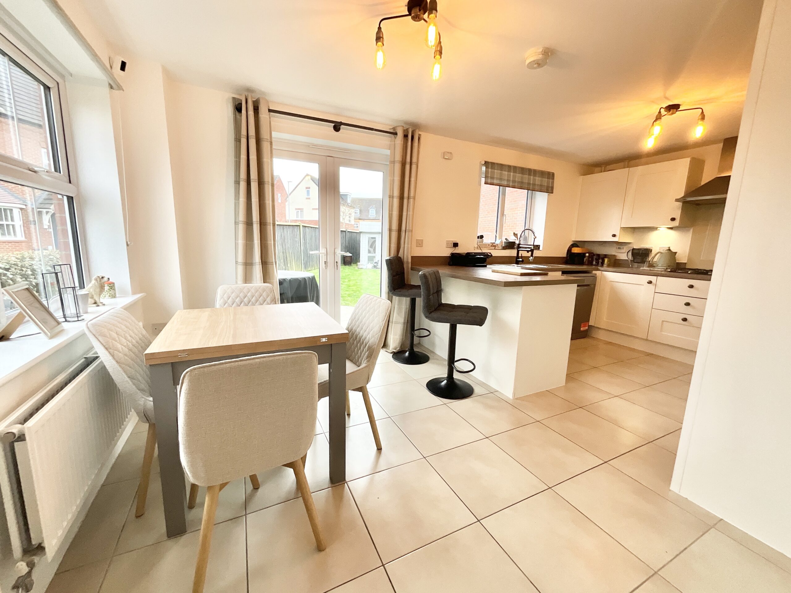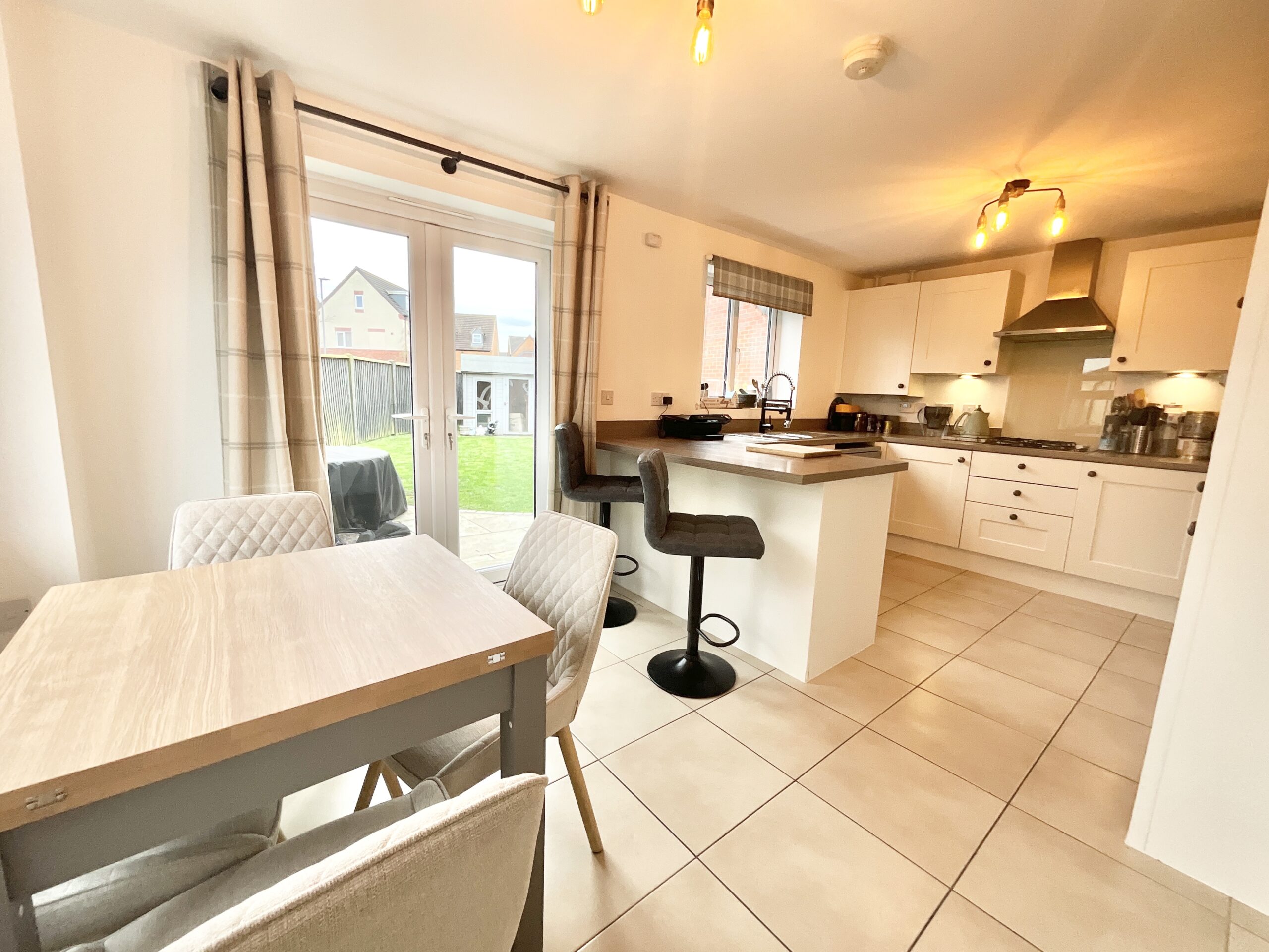 3. Modern kitchen/diner with integrated appliances, breakfast bar, and French doors to the rear garden.