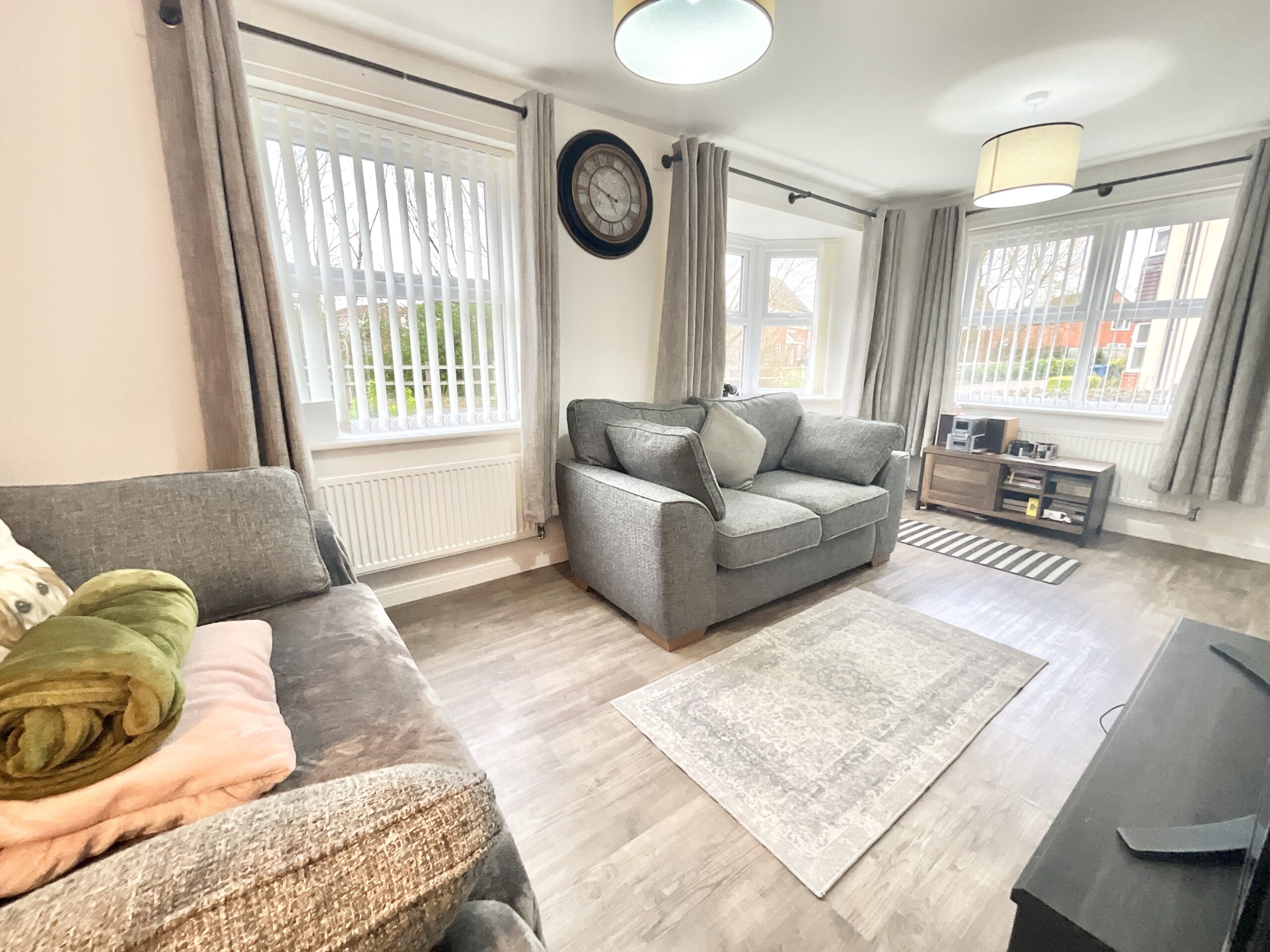 Upon entering, you are welcomed by a bright entrance hall featuring stylish Karndean flooring, leading through to a generous living room where a charming bay window allows natural light to pour in, creating a warm and inviting atmosphere. The heart of the home is the contemporary kitchen/diner, complete with tiled flooring, ample work surfaces, a breakfast bar, integrated appliances, and a four-ring gas hob with extractor fan above, alongside plentiful storage to keep everything neatly organised.