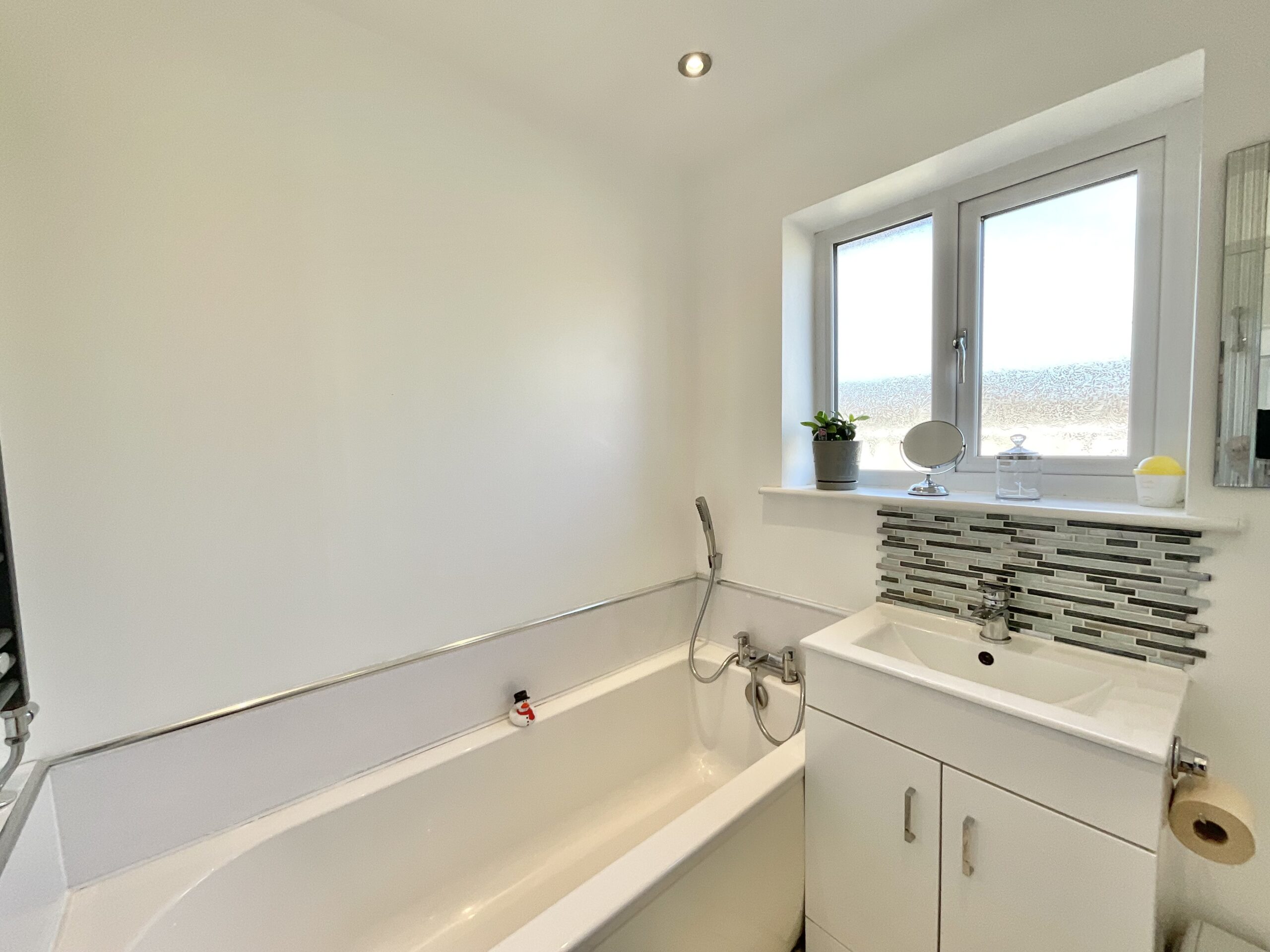 Step into a bright and welcoming entrance hall, guiding you directly into a spacious kitchen/diner complete with white shaker-style cabinetry, plenty of room for appliances and large glazed French doors leading to the garden. The living room offers a further set of glazed French doors to the garden, along with a warm feature fire surround and a bay window. Across the hall, you’ll discover a versatile family room/fourth bedroom, ready to adapt for whatever your needs may be.
